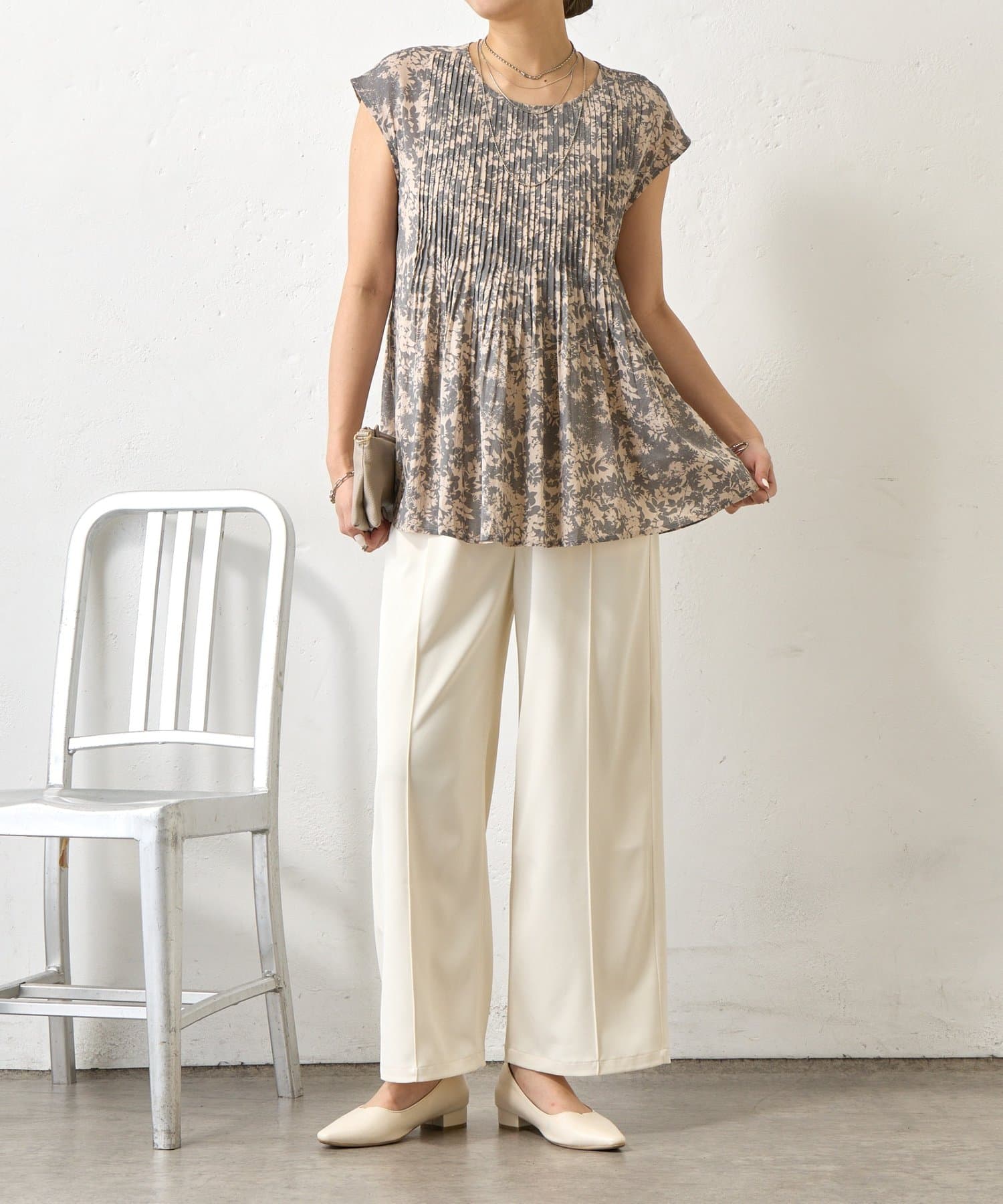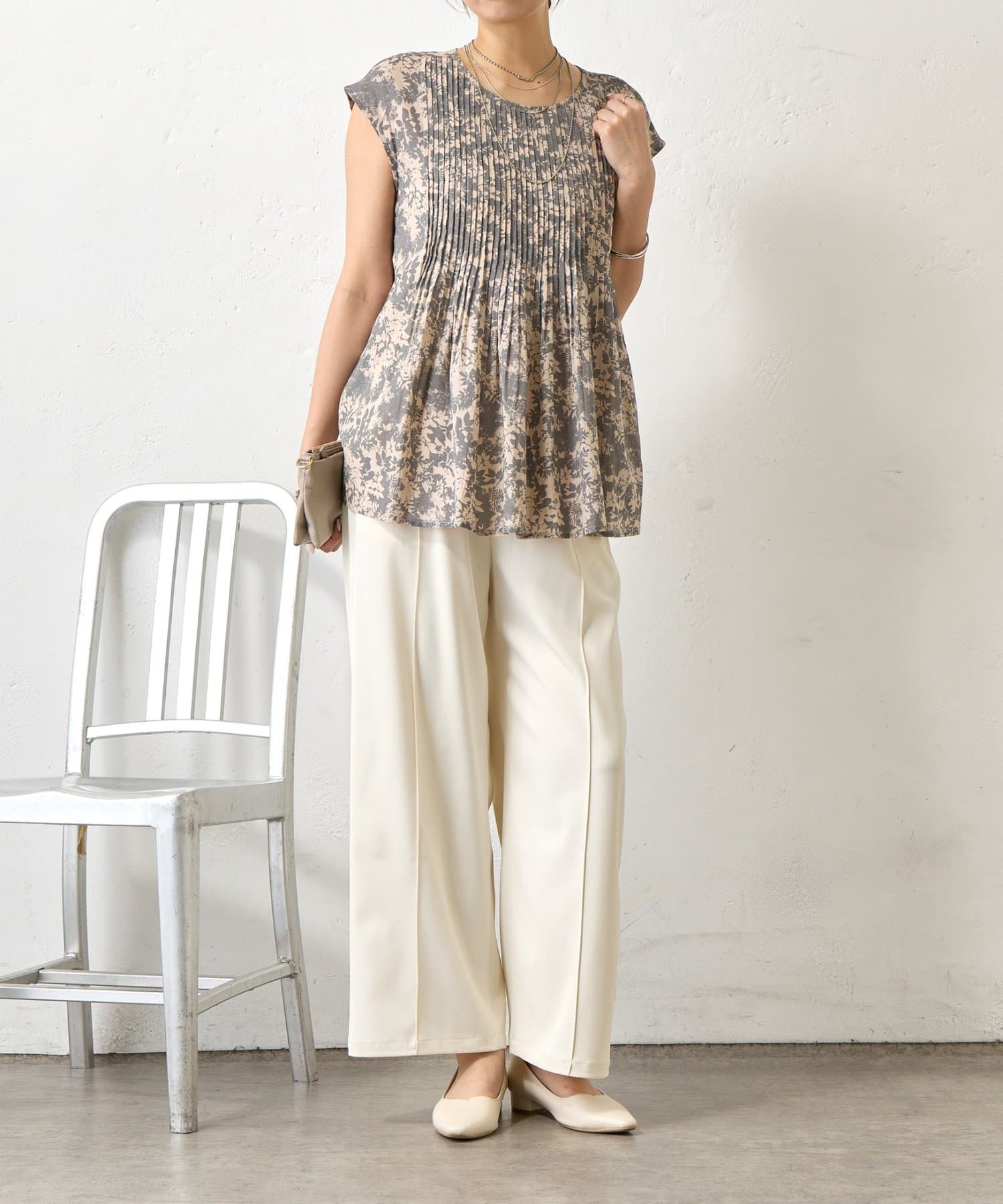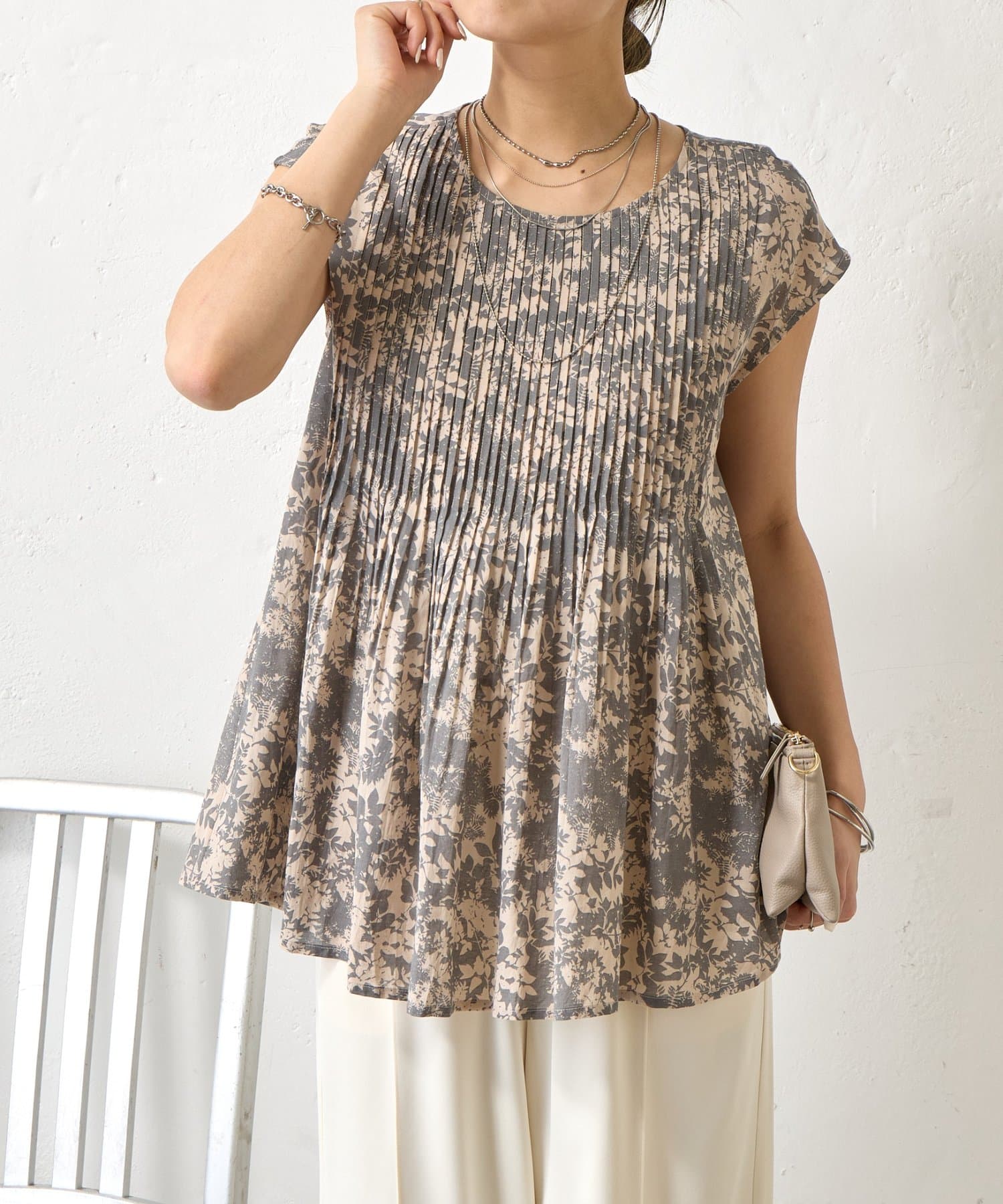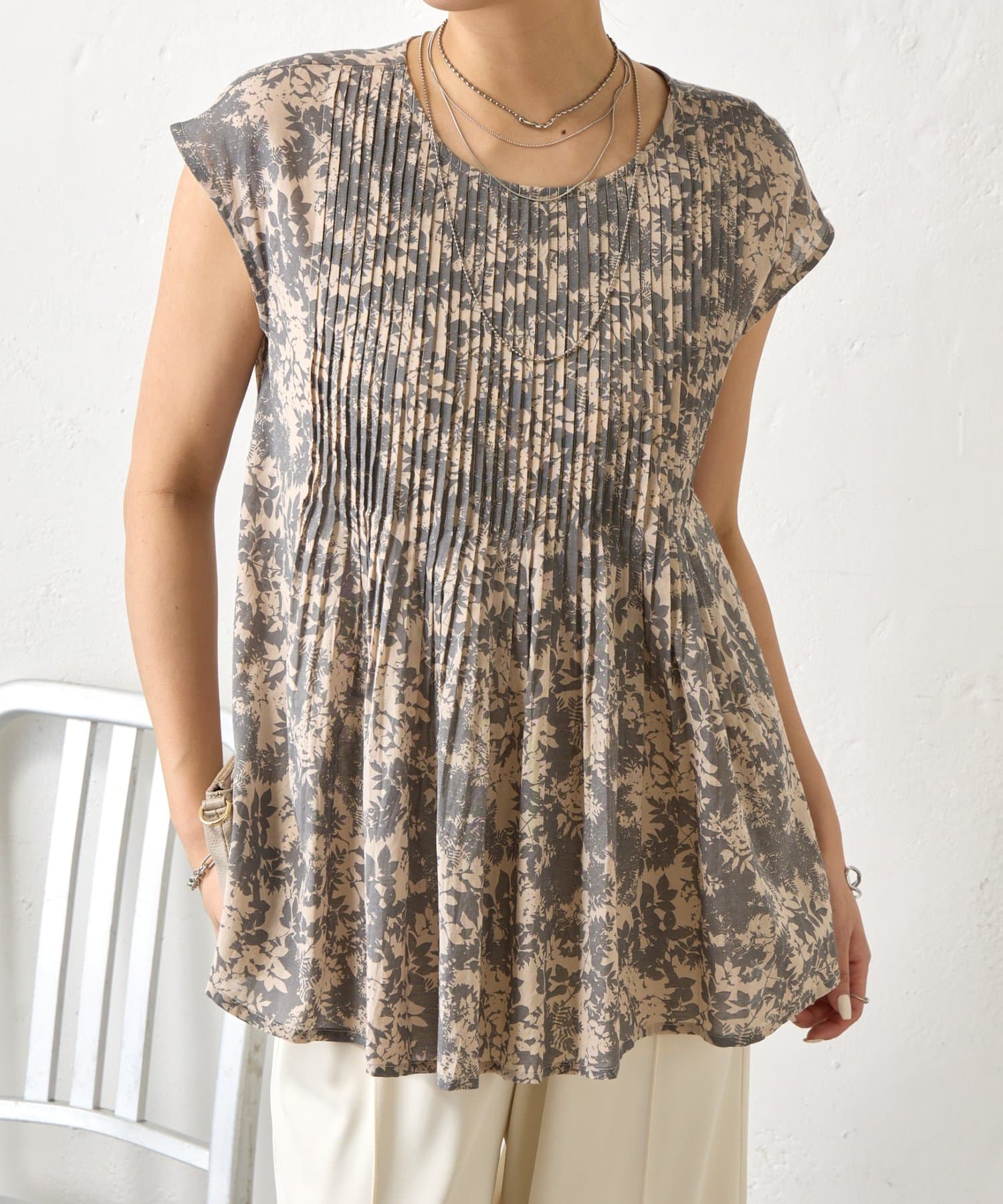 ピンタックノースリブラウス
