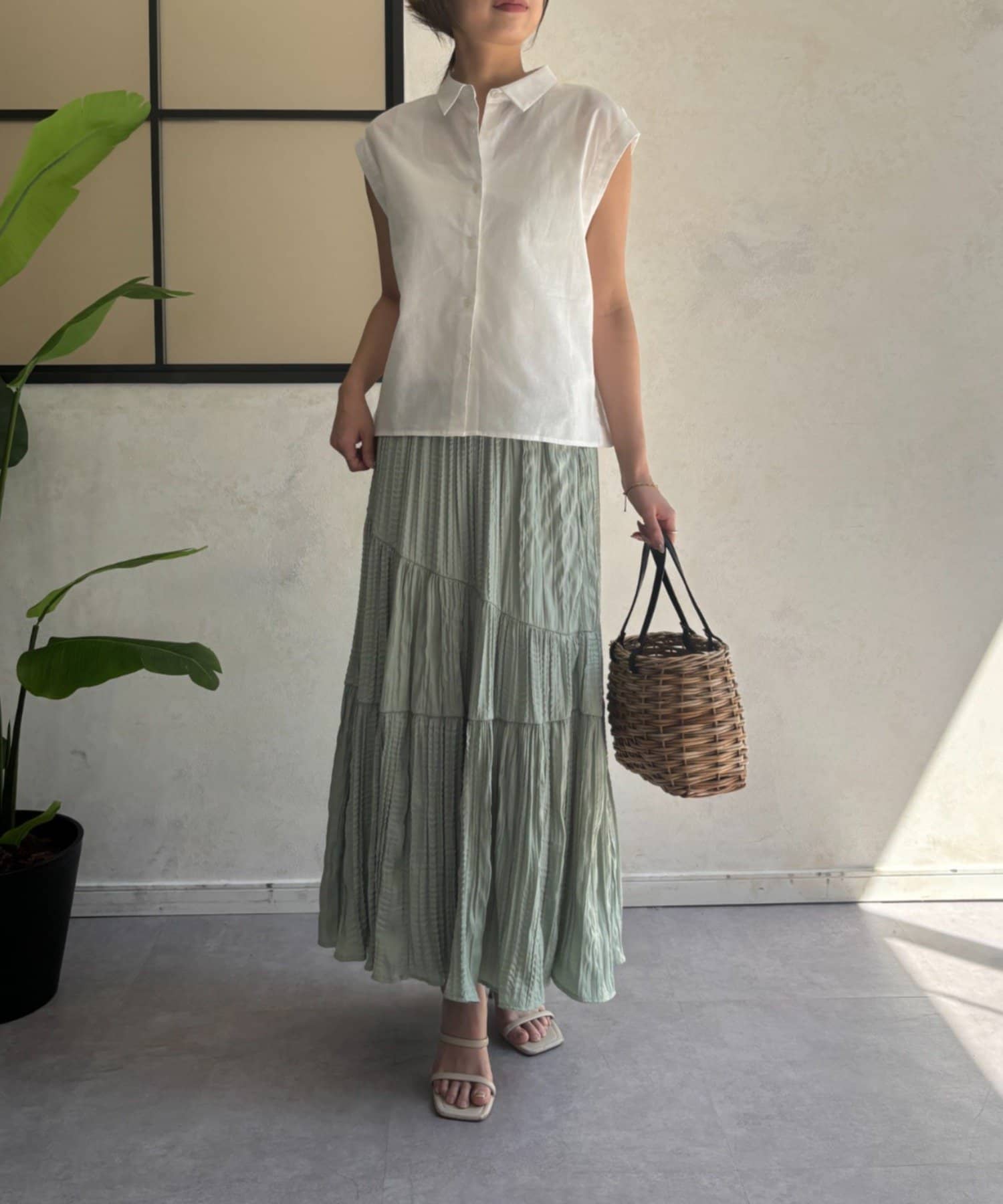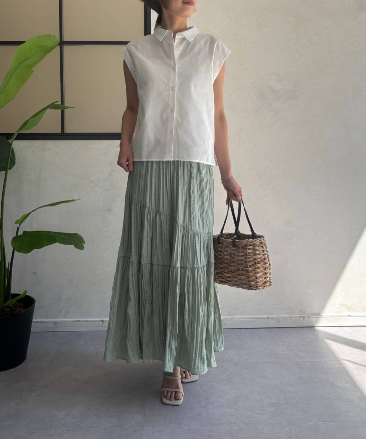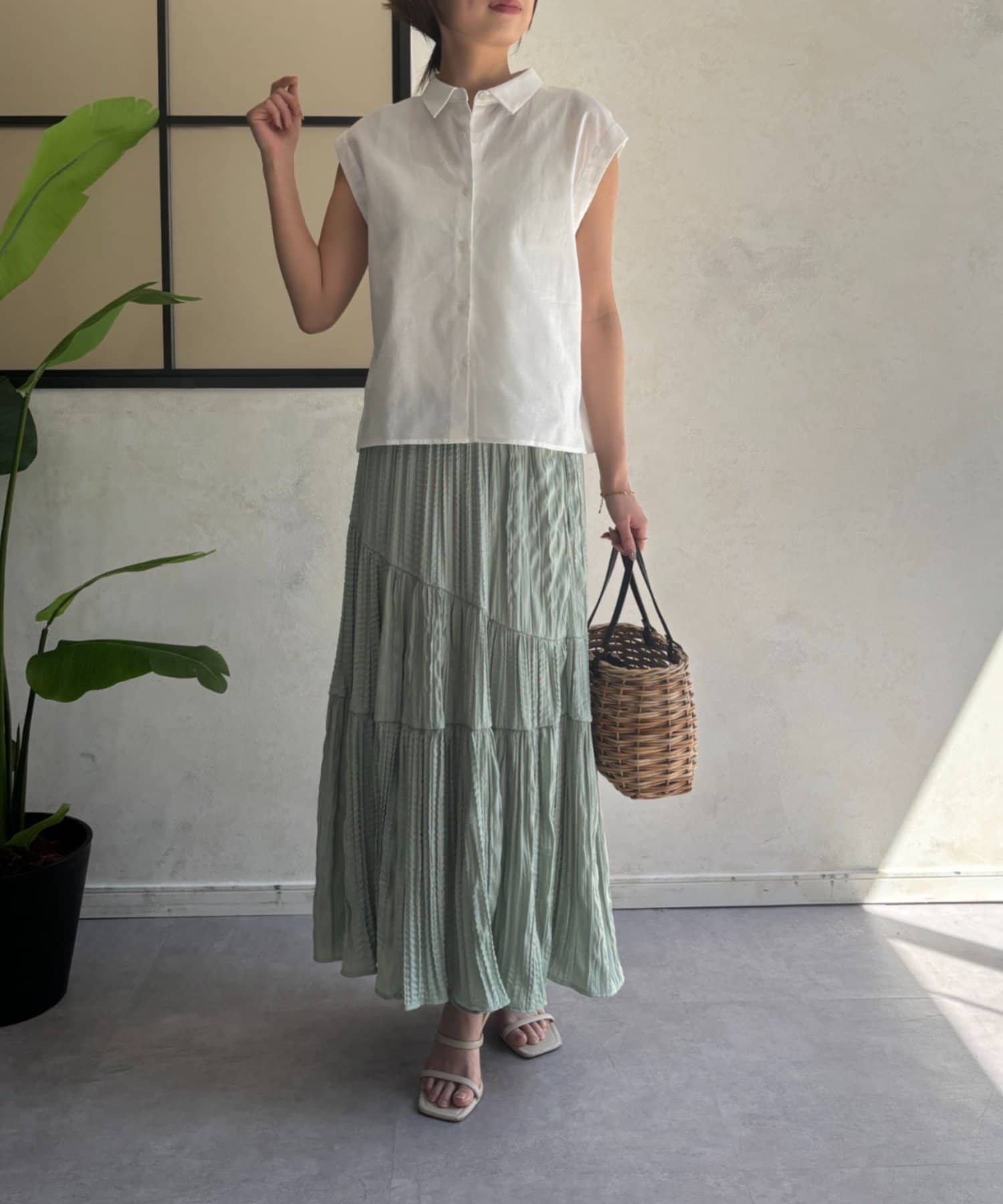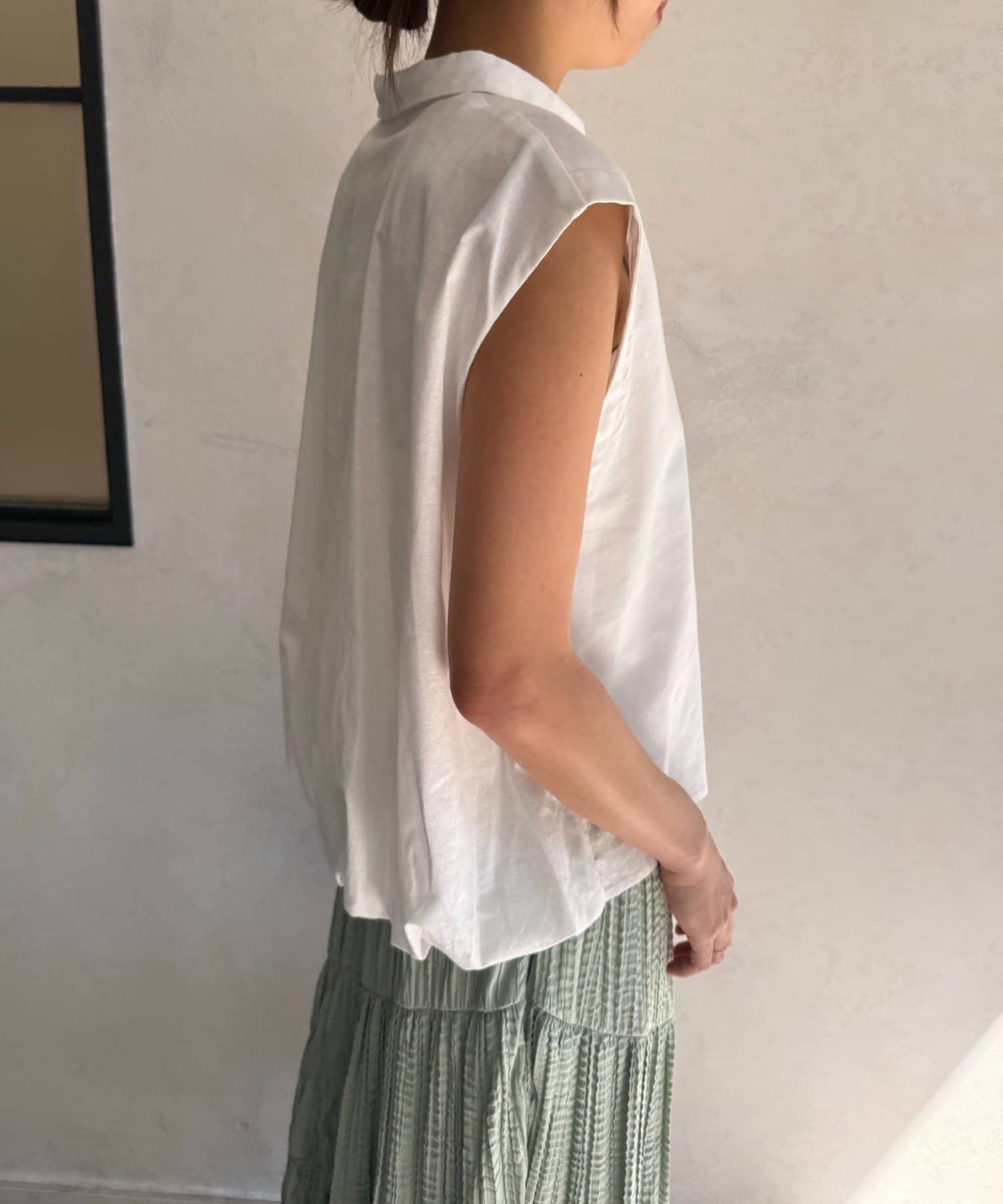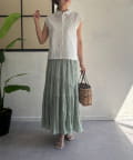 ・フレンチスリーブが気になる二の腕をさりげなくカバーし、涼しげな印象を与えます。