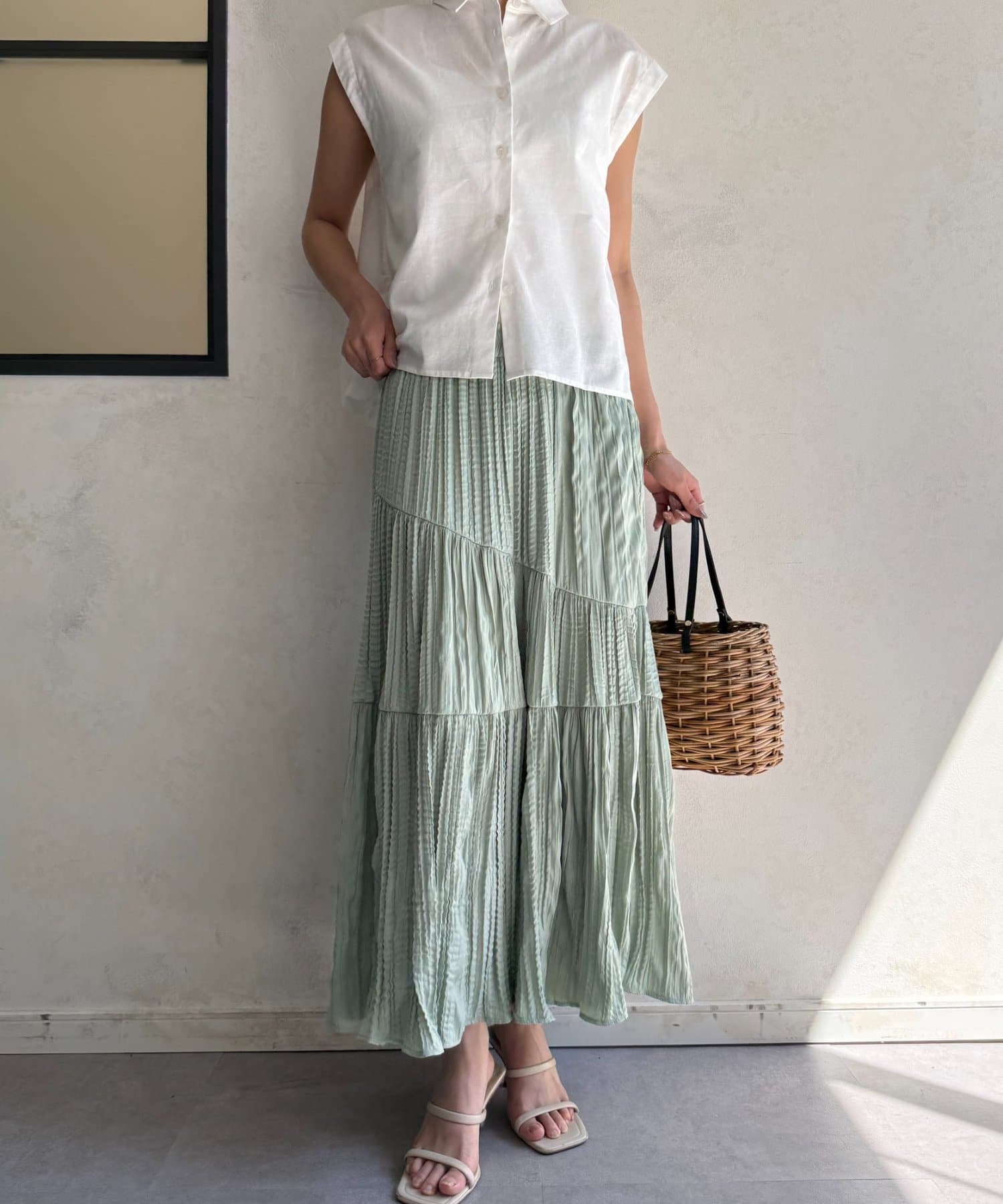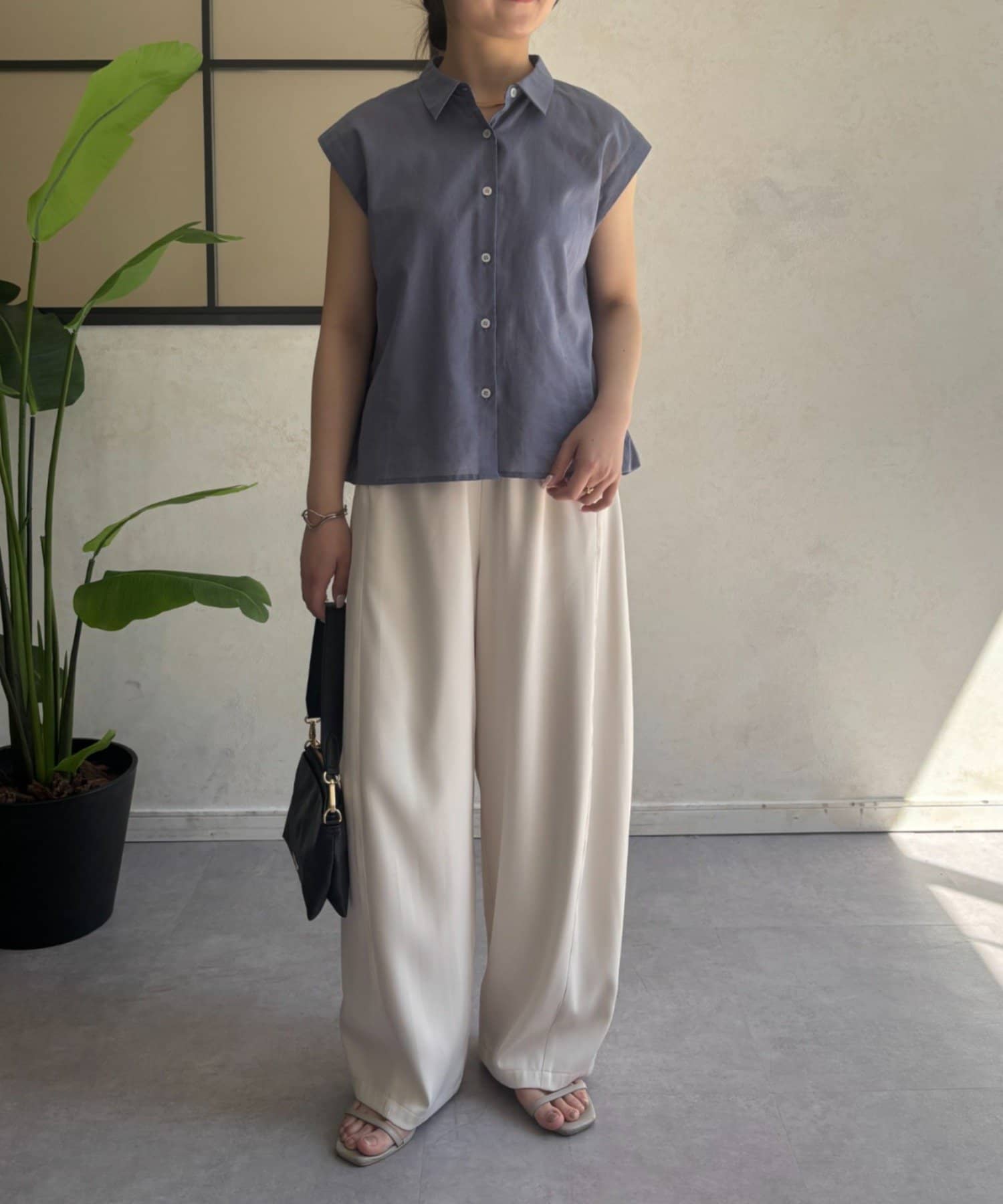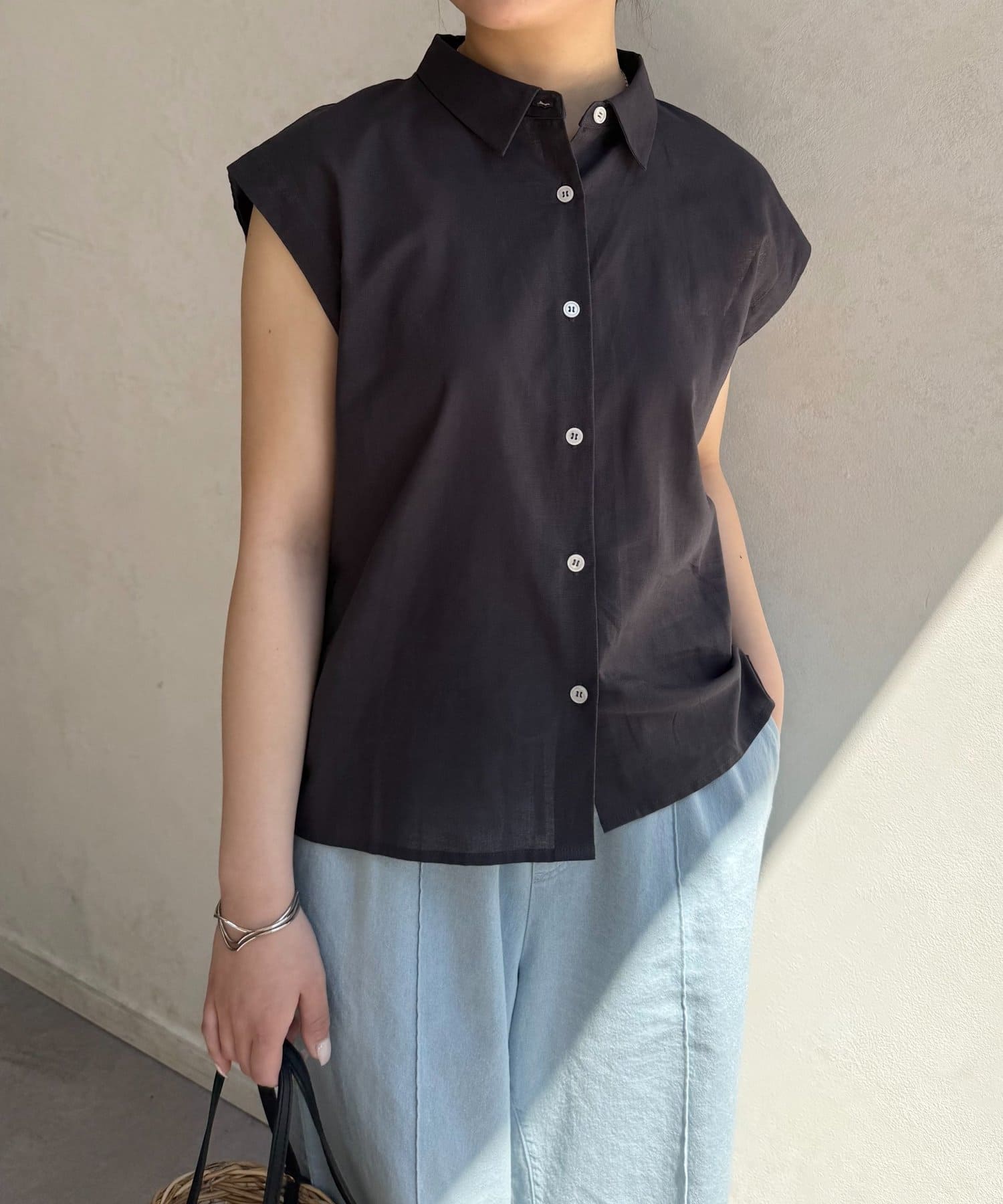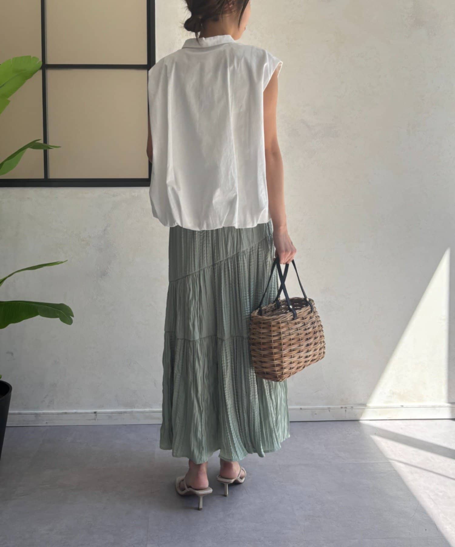 ・フレンチスリーブが気になる二の腕をさりげなくカバーし、涼しげな印象を与えます。