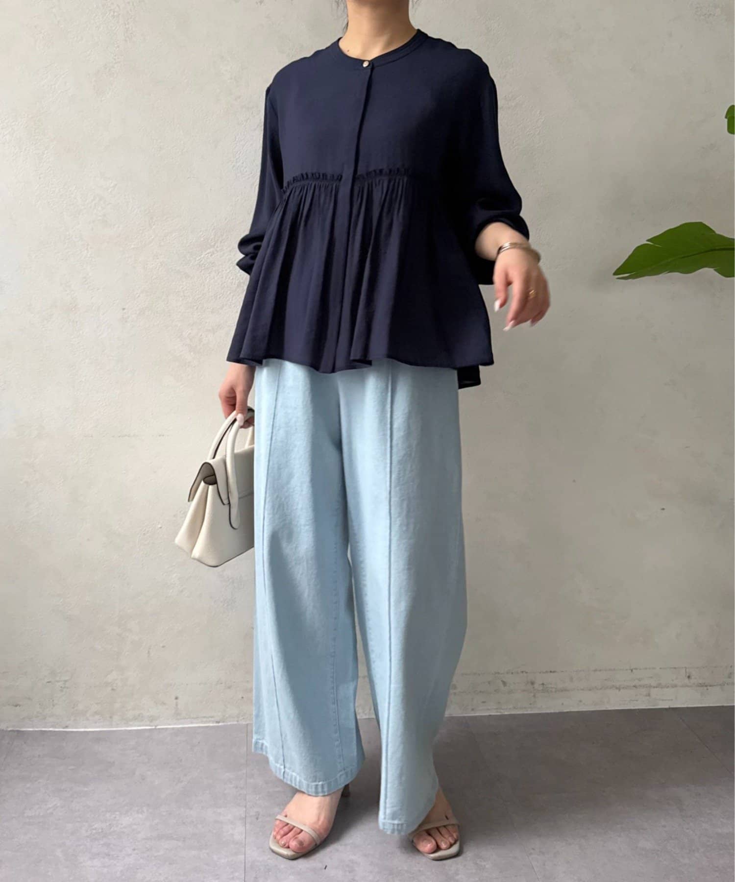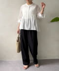 ・ふんわりと広がるペプラムシルエットが、女性らしさを引き立てるブラウス。