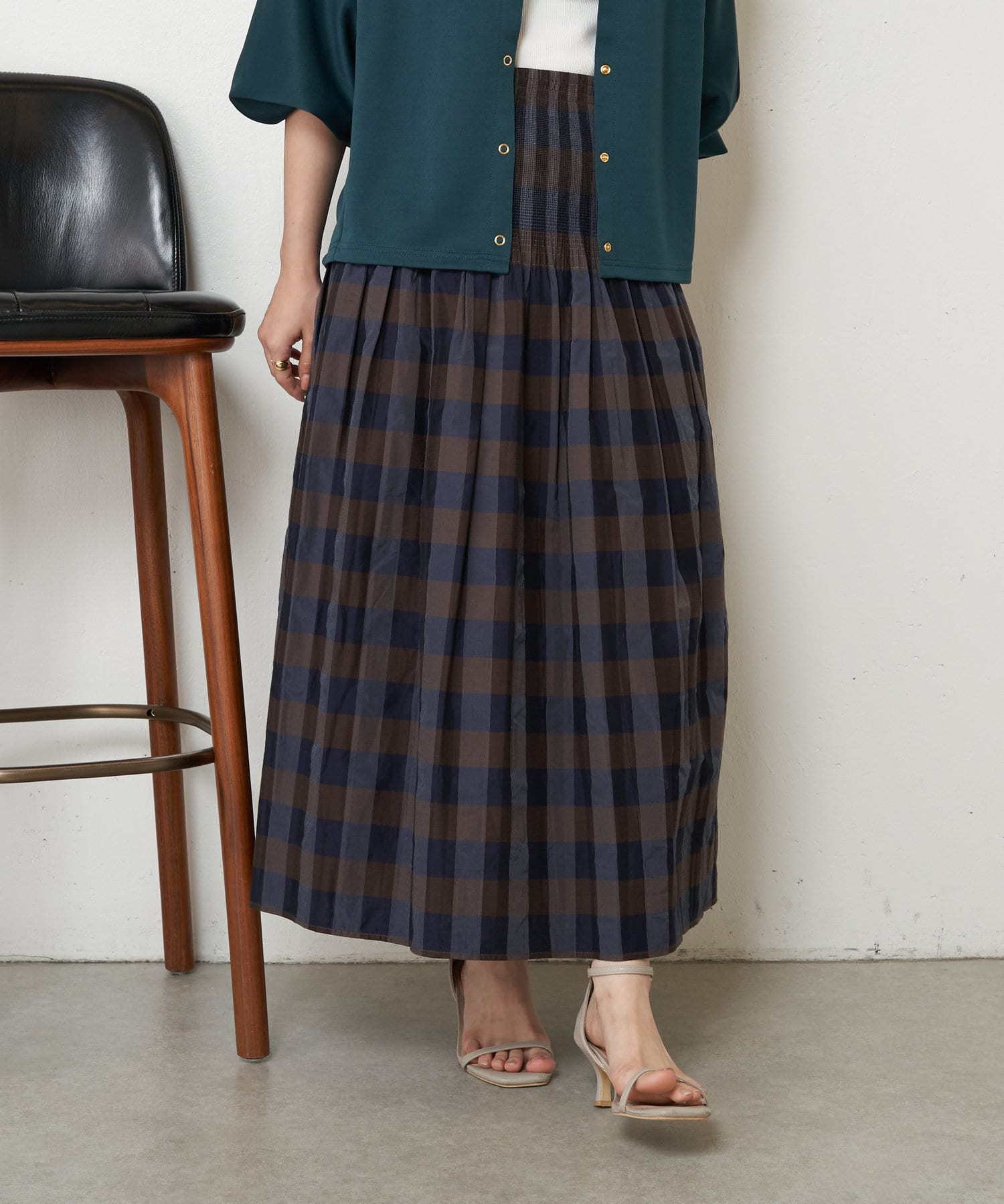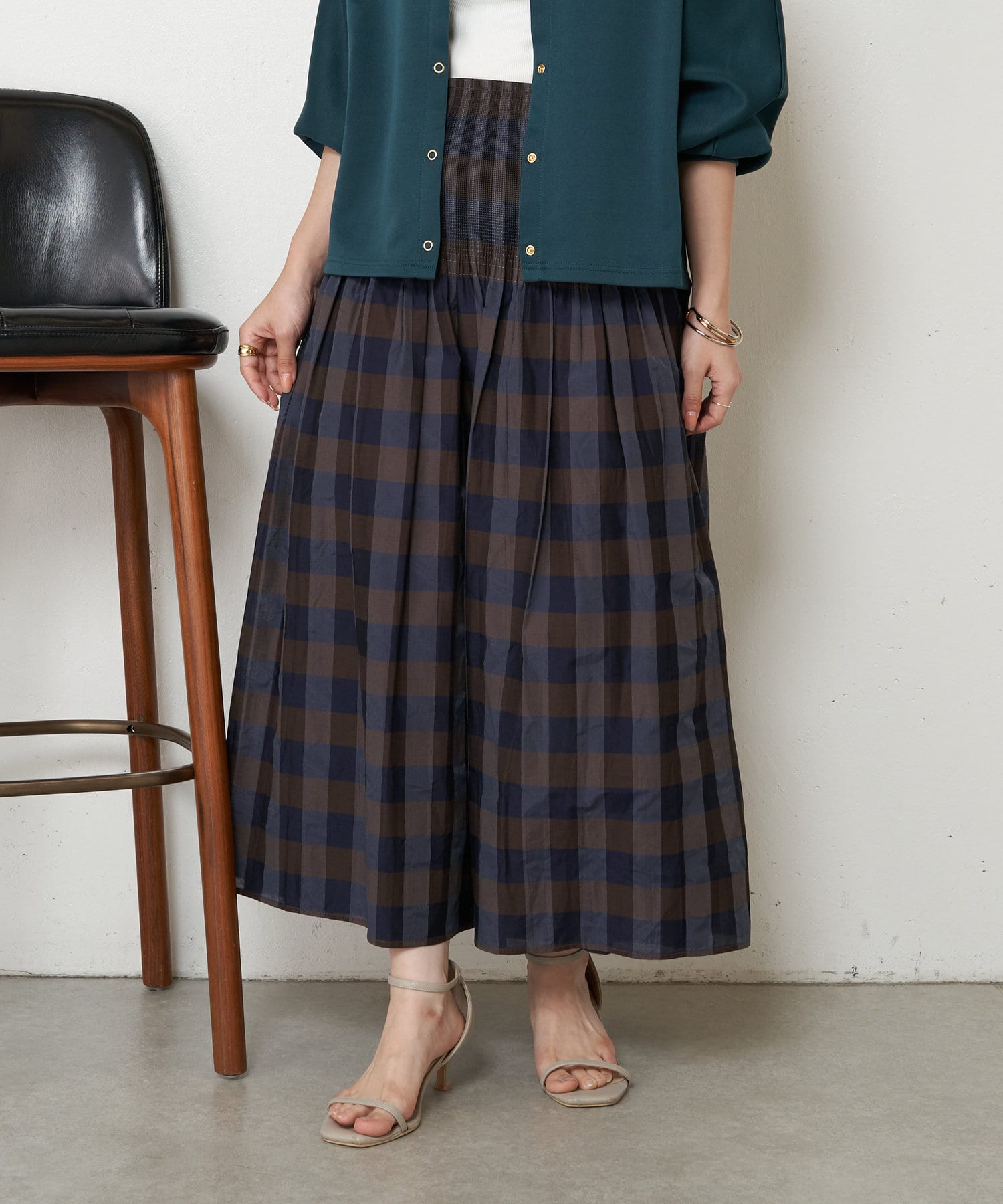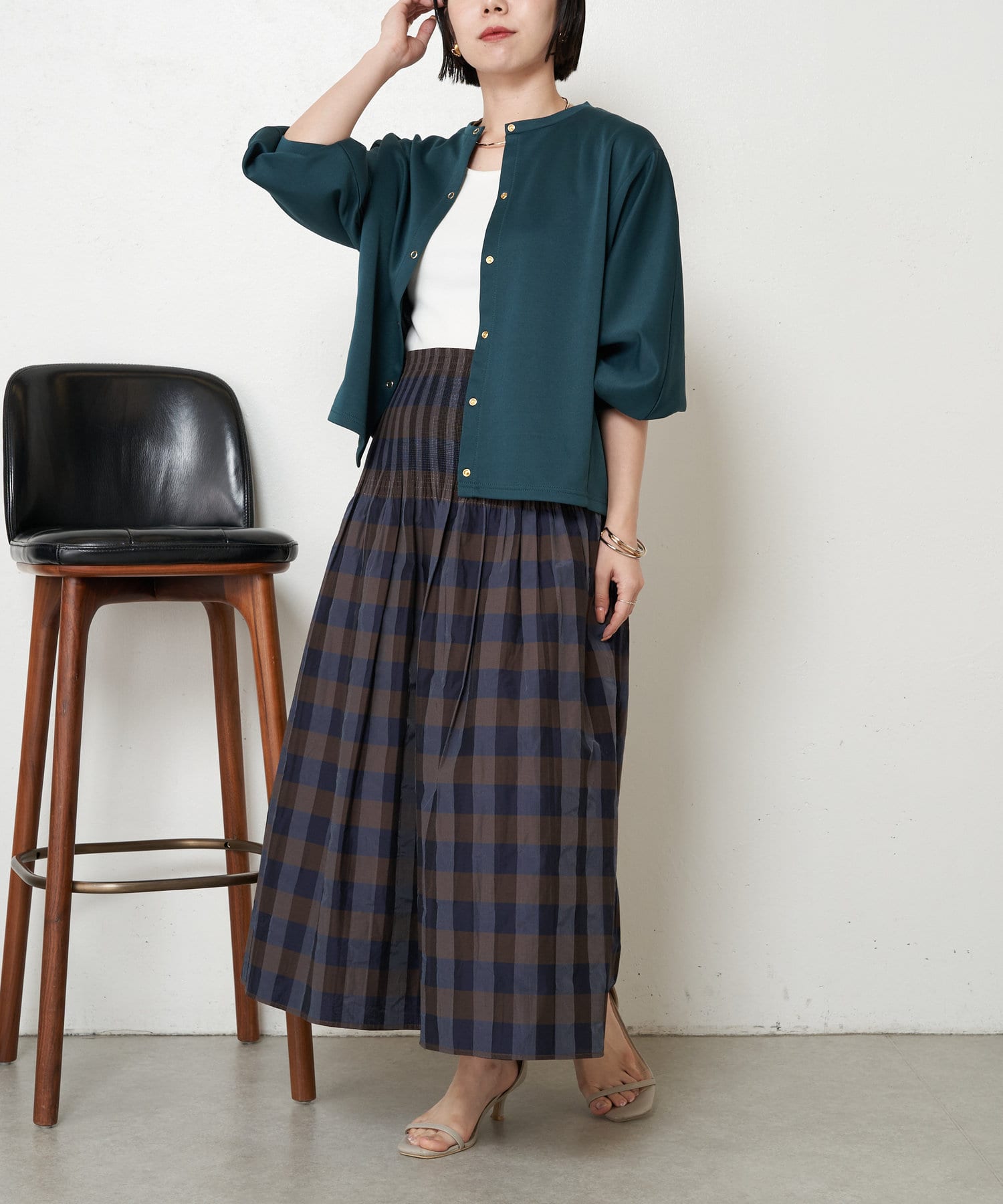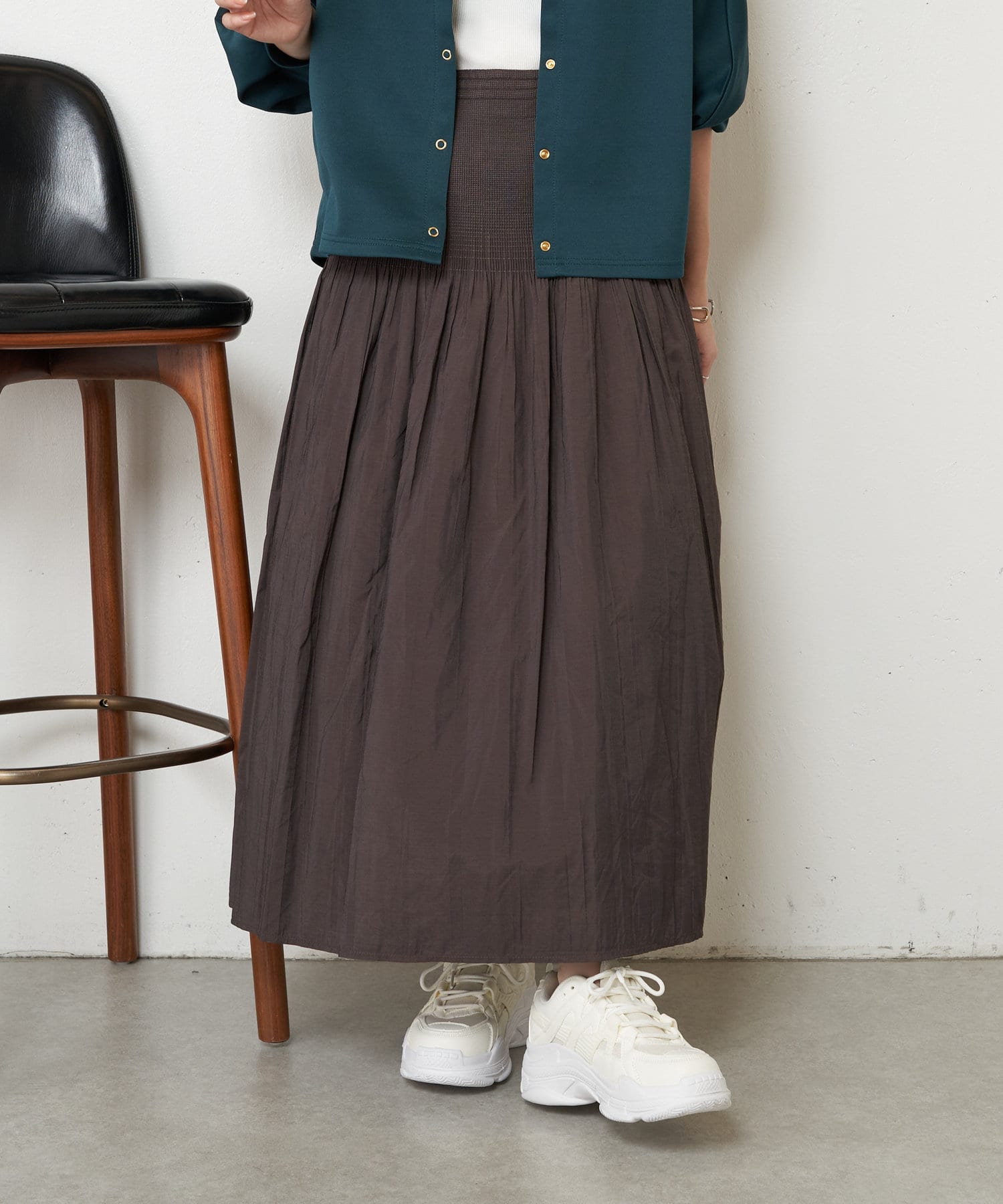 ・ウエストをシャーリング風のデザインにし、ラフな着心地を叶えてくれるリバーシブルのスカート。