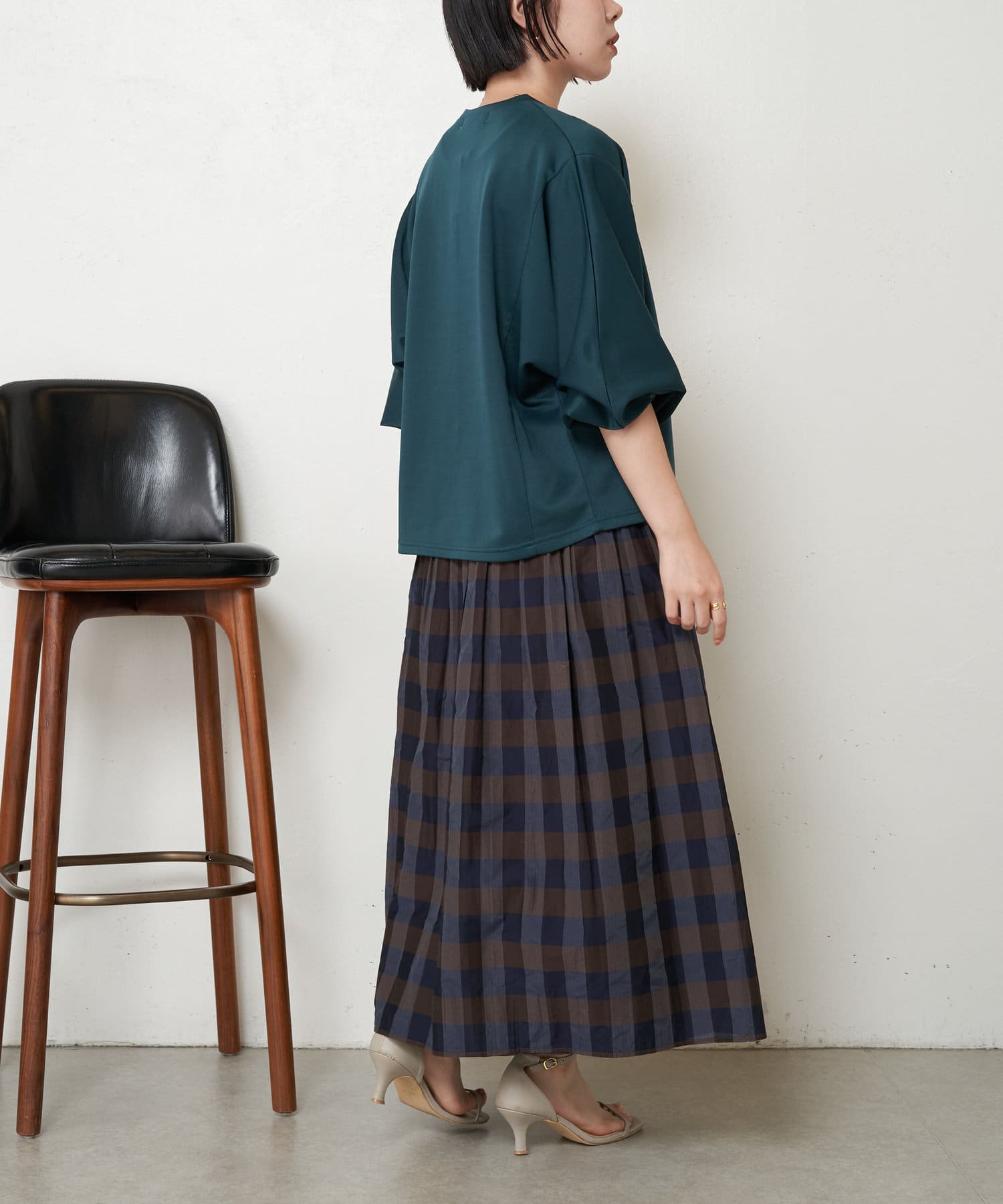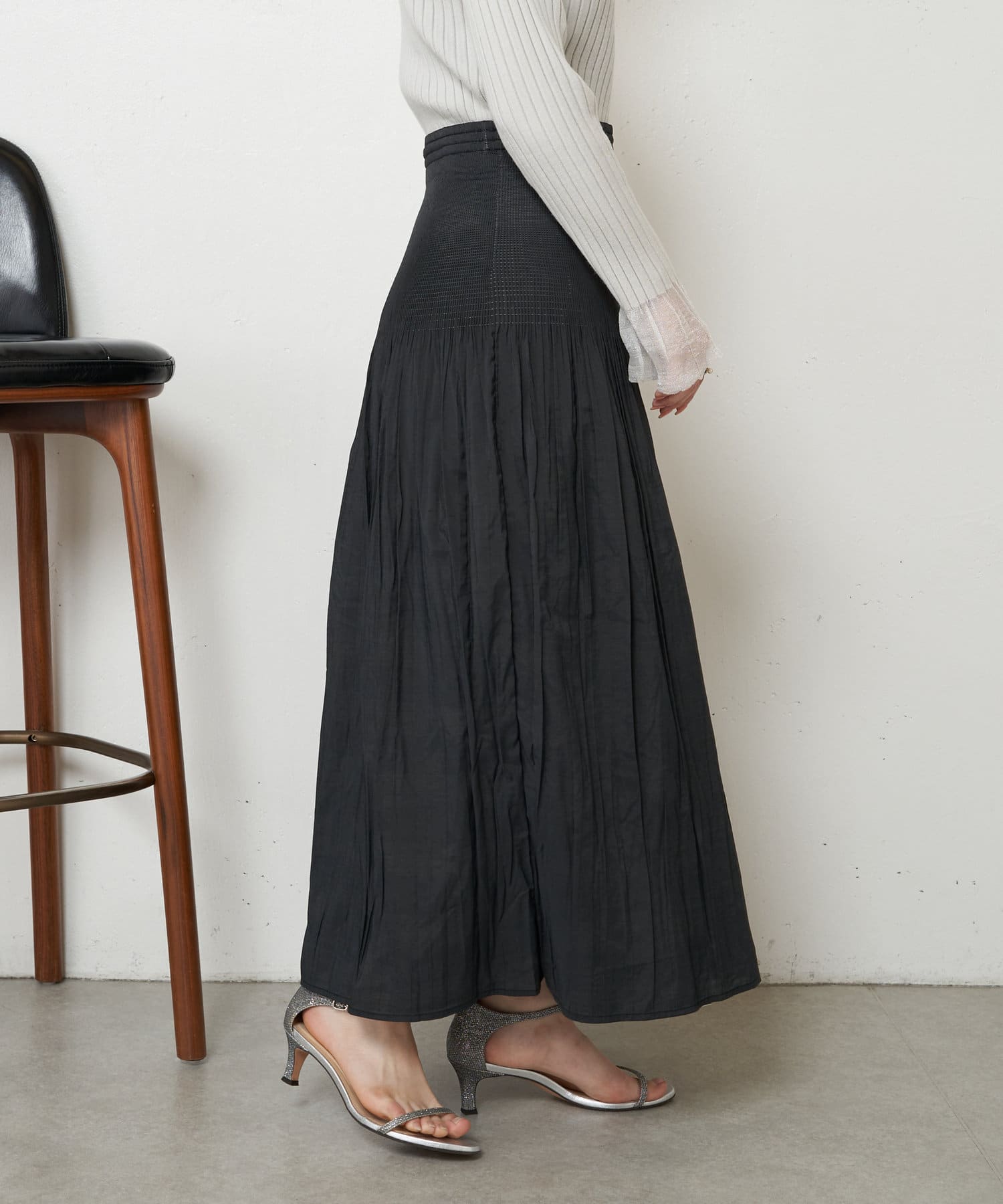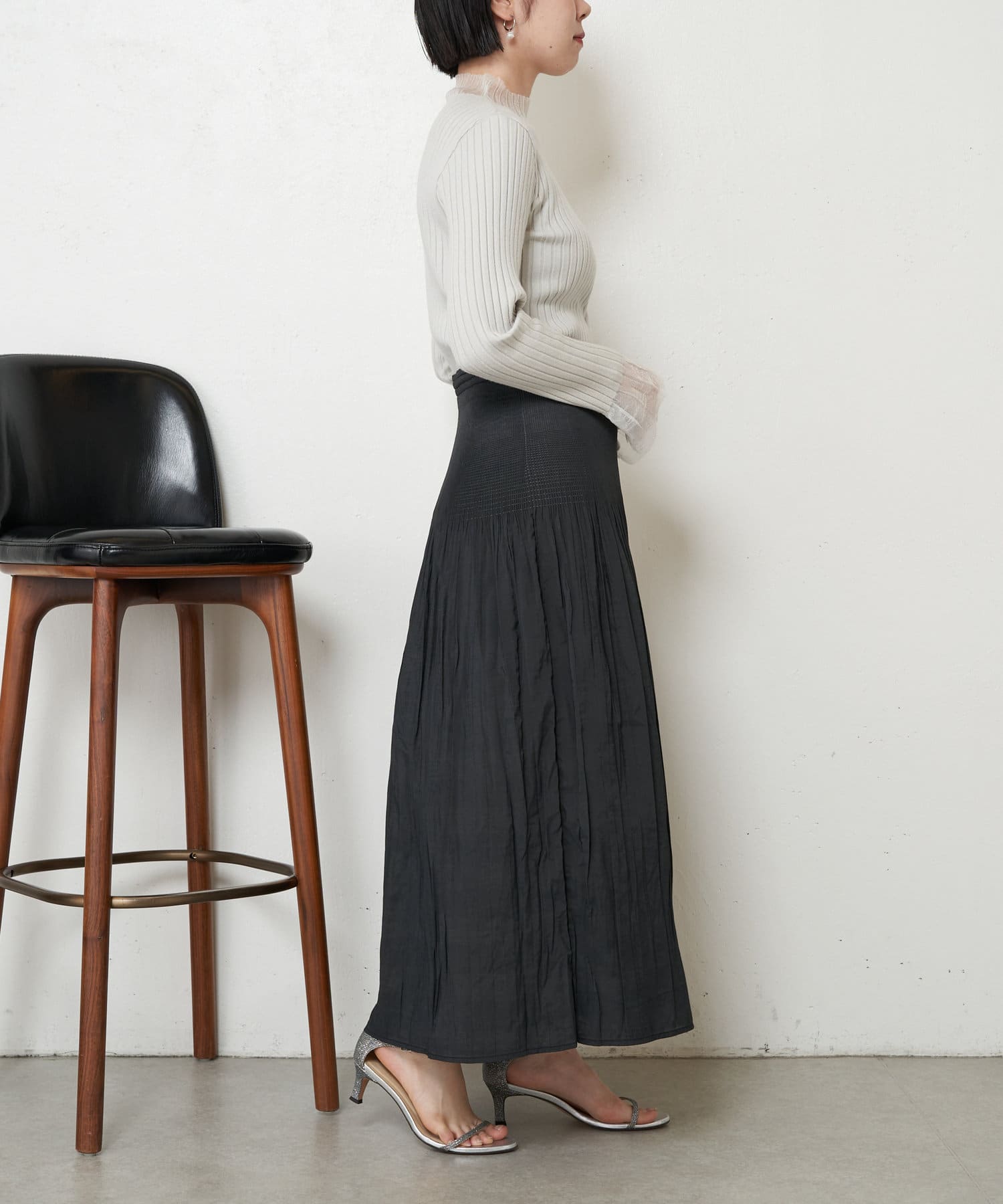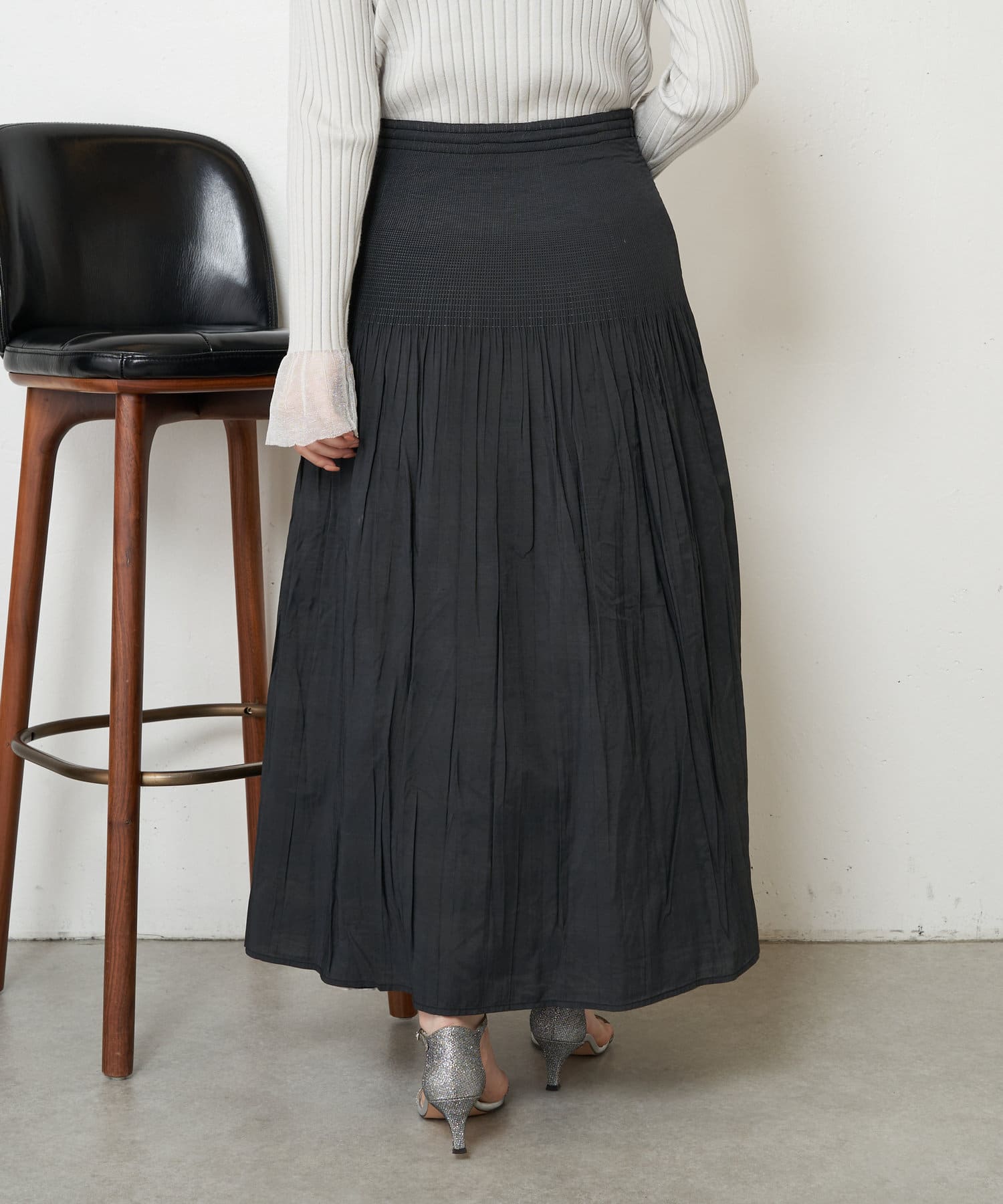 ・ウエストをシャーリング風のデザインにし、ラフな着心地を叶えてくれるリバーシブルのスカート。