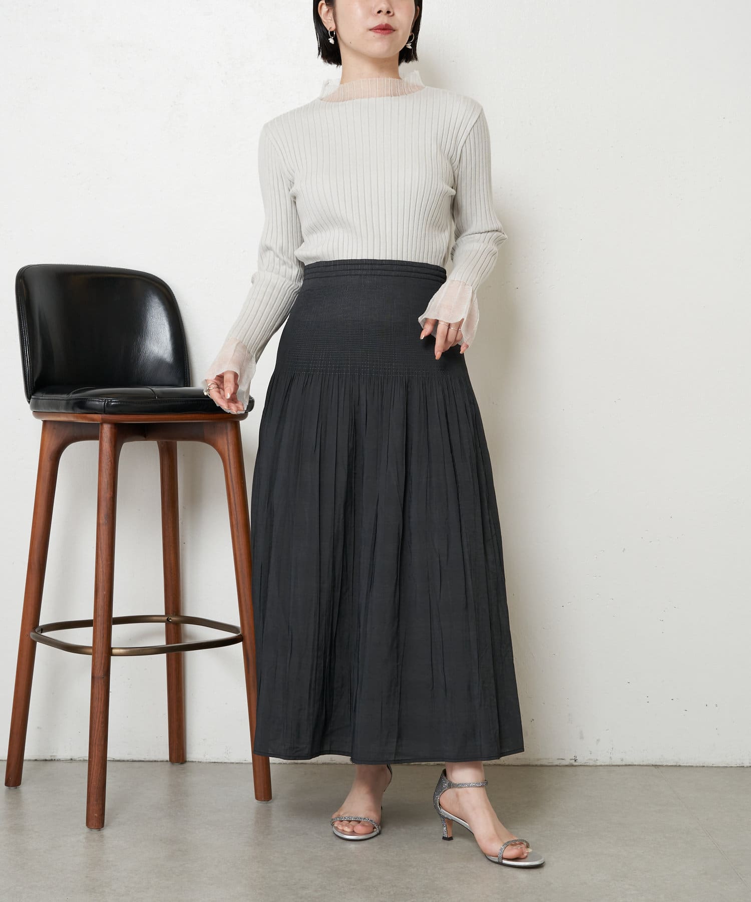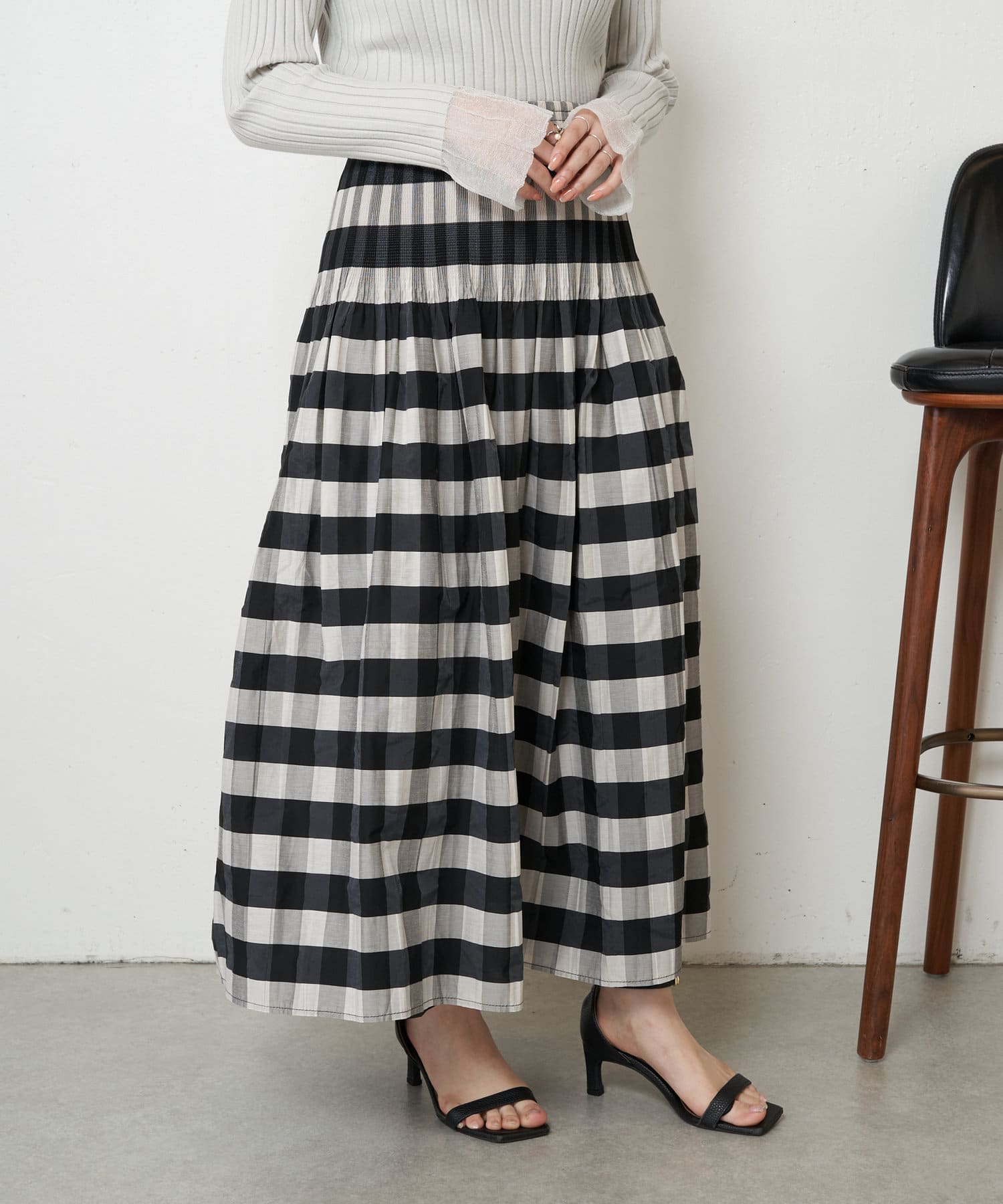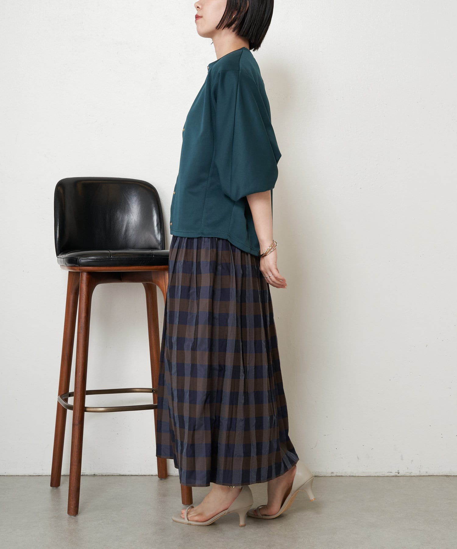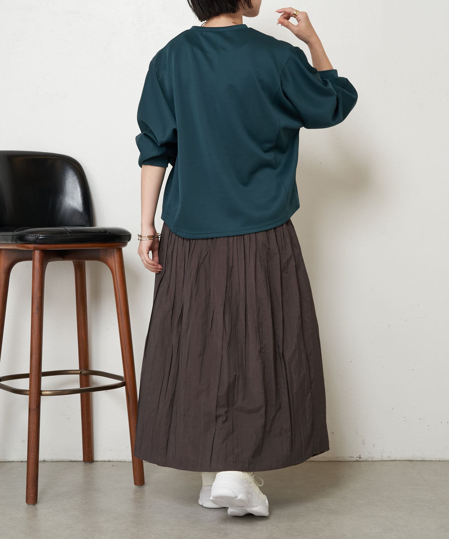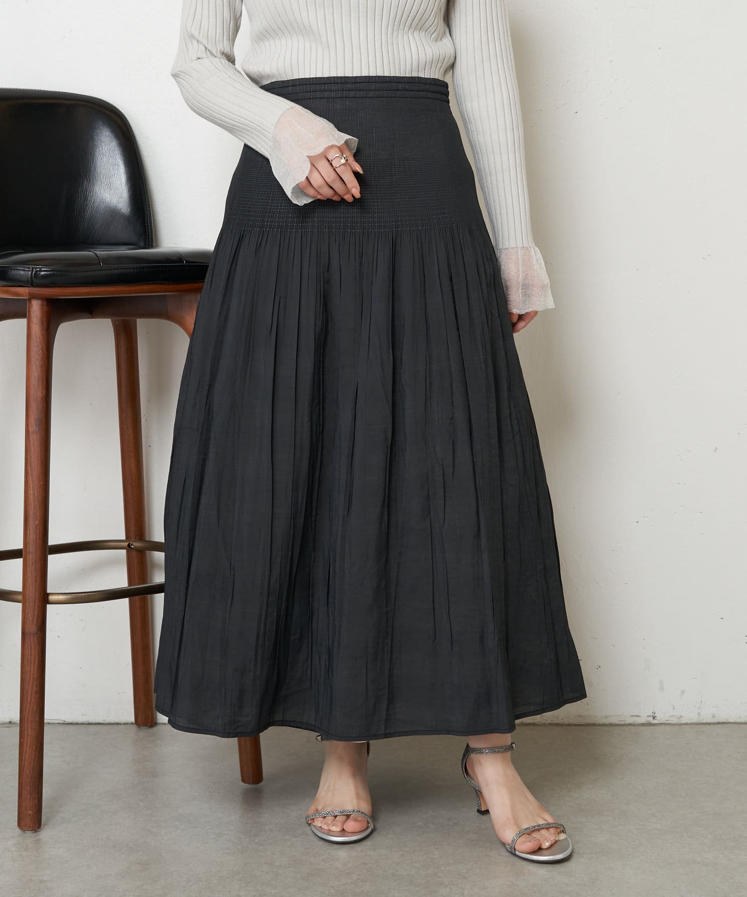 ・ウエストをシャーリング風のデザインにし、ラフな着心地を叶えてくれるリバーシブルのスカート。