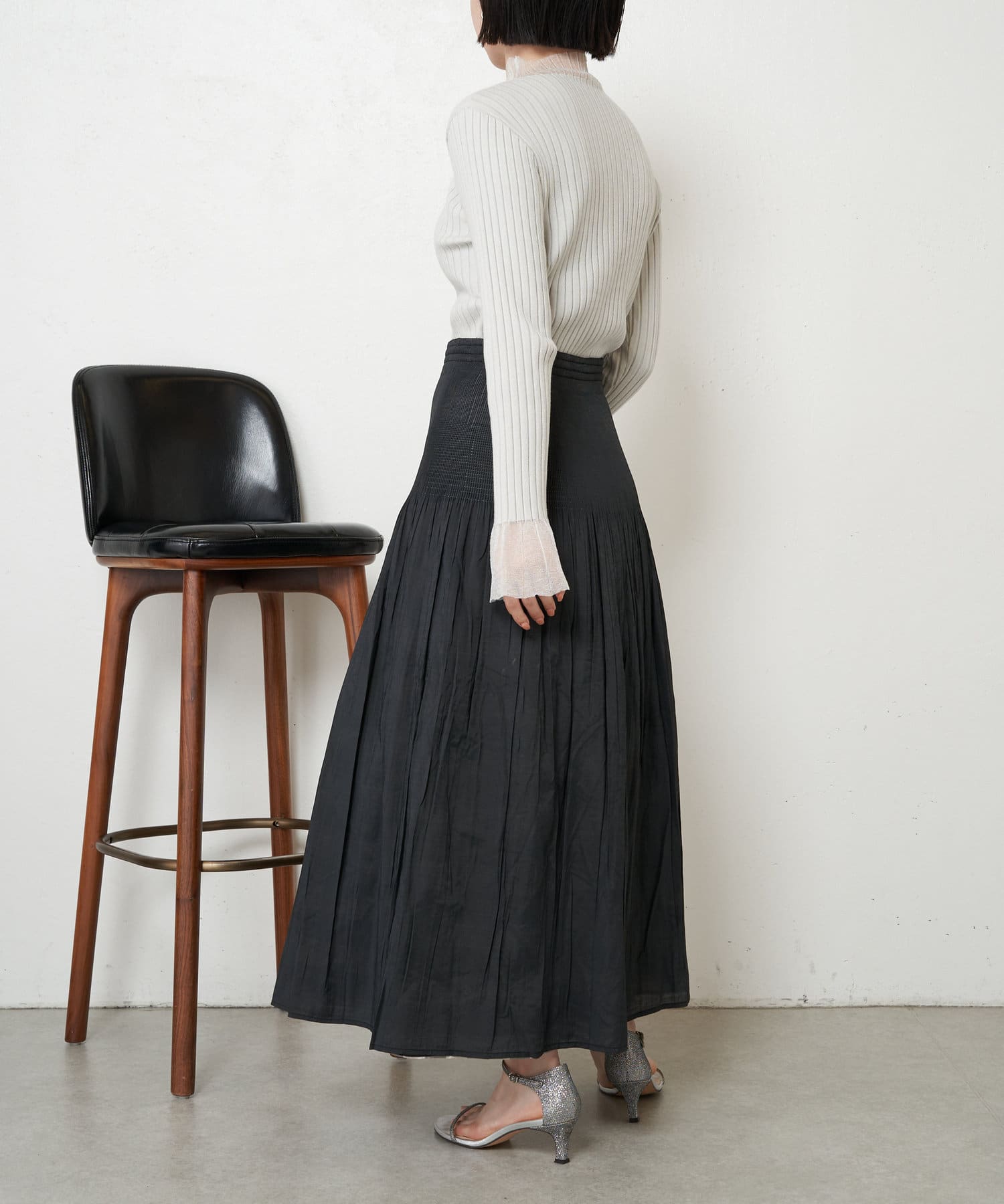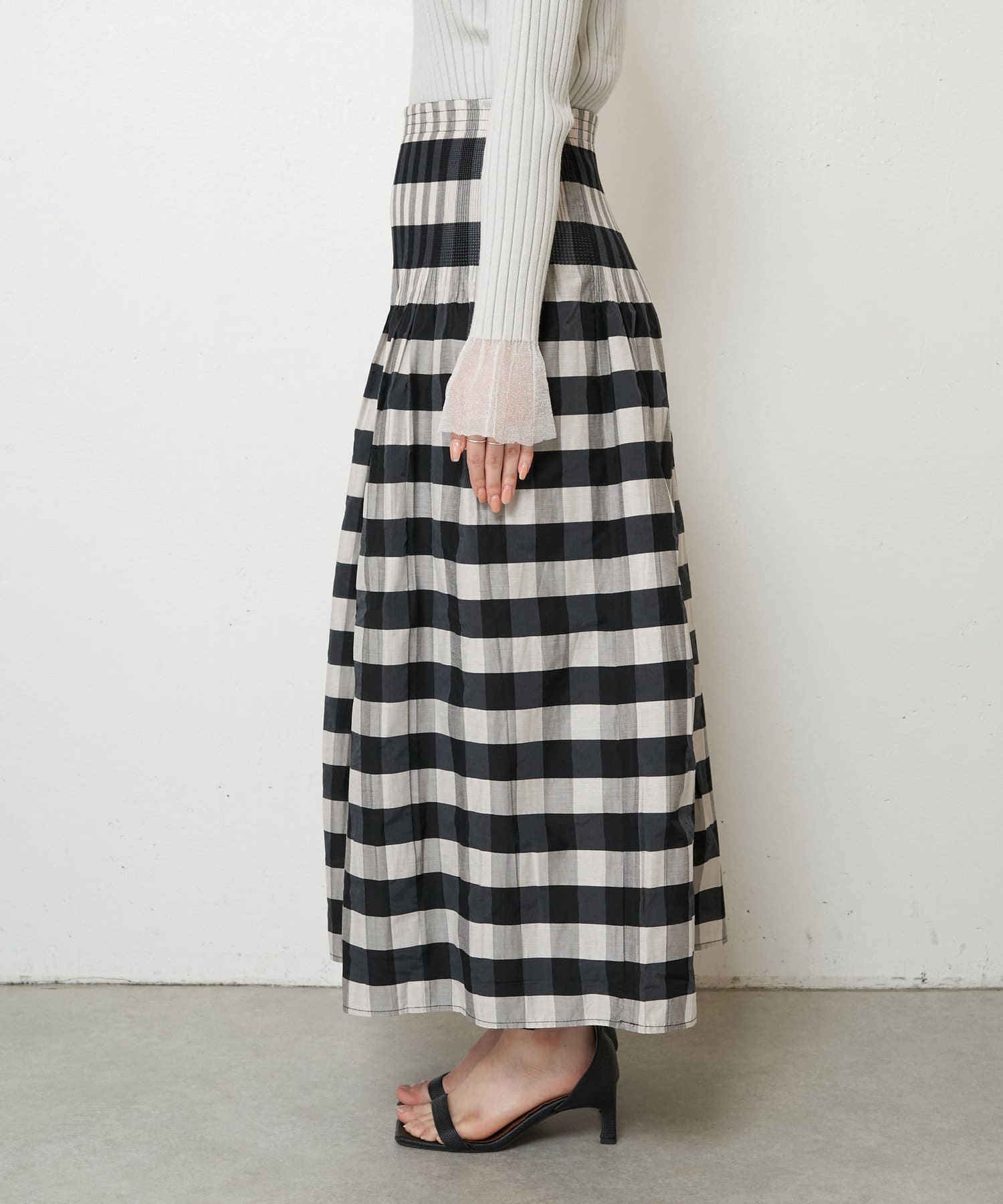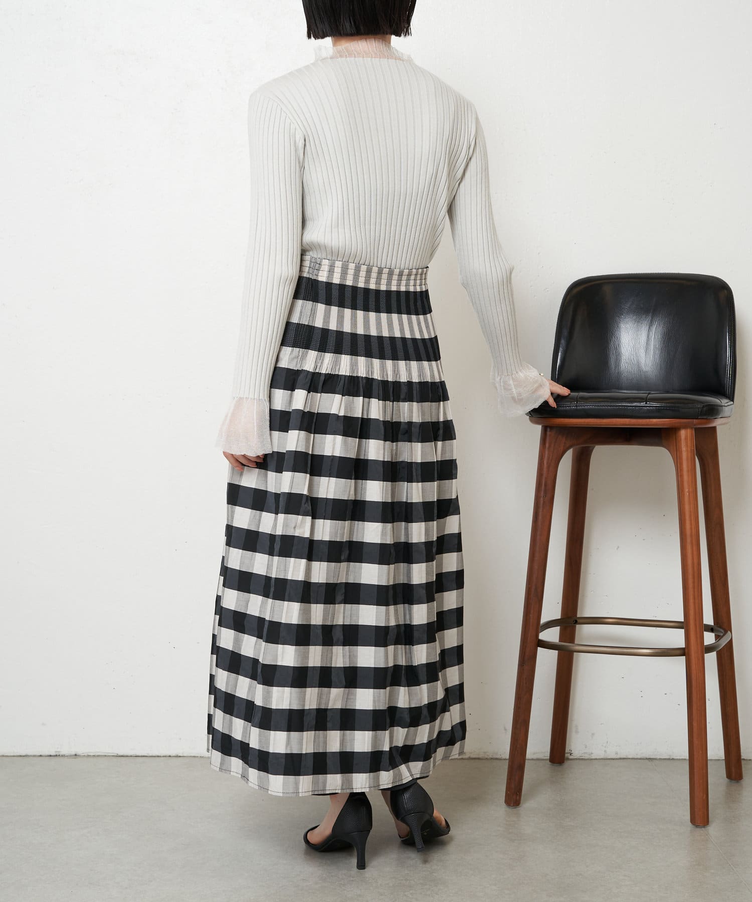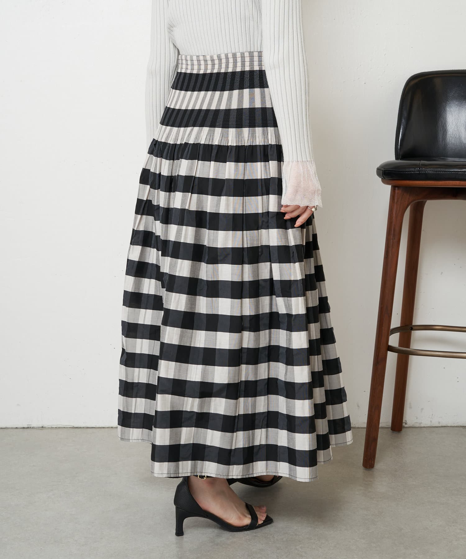 ・ウエストをシャーリング風のデザインにし、ラフな着心地を叶えてくれるリバーシブルのスカート。