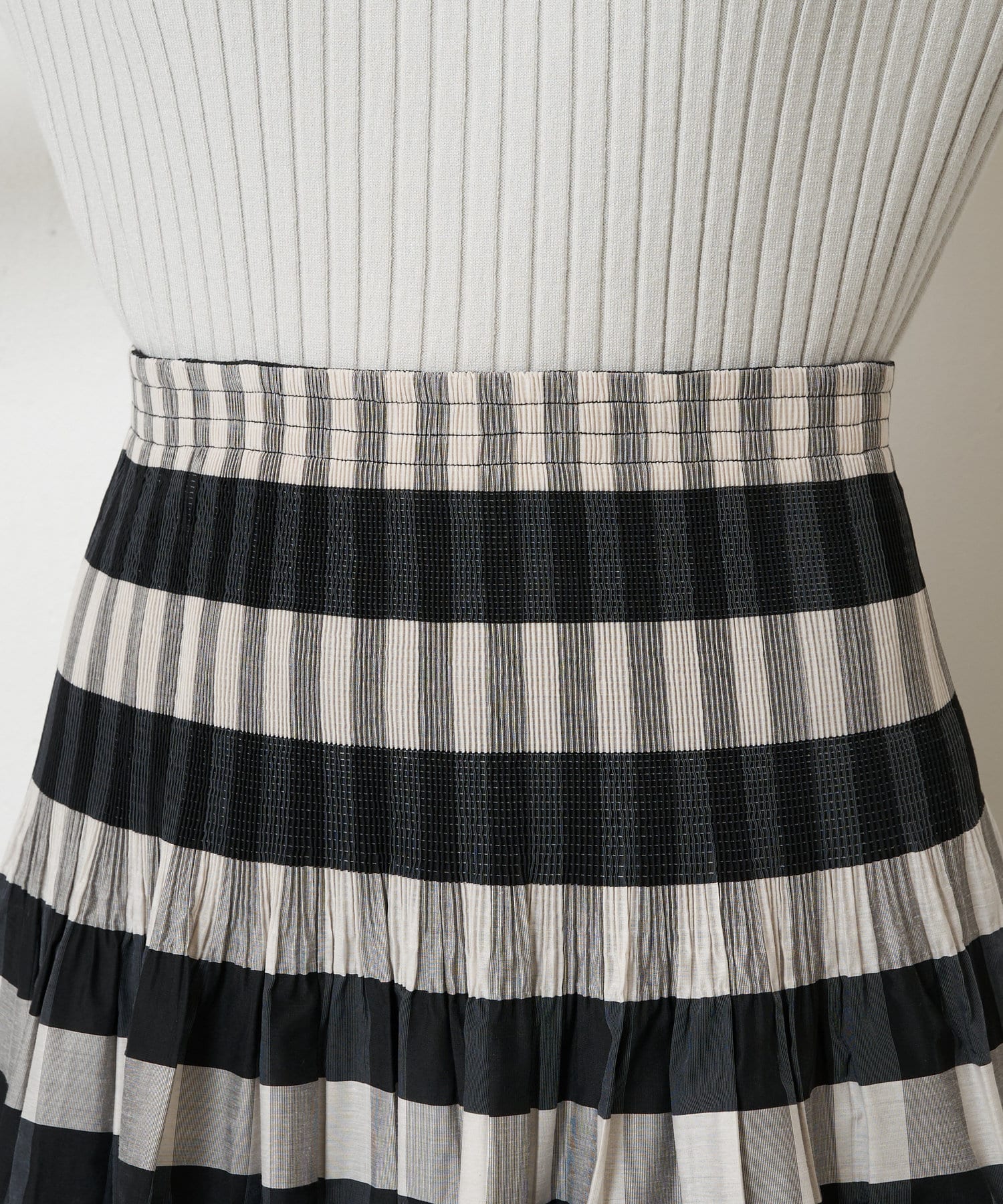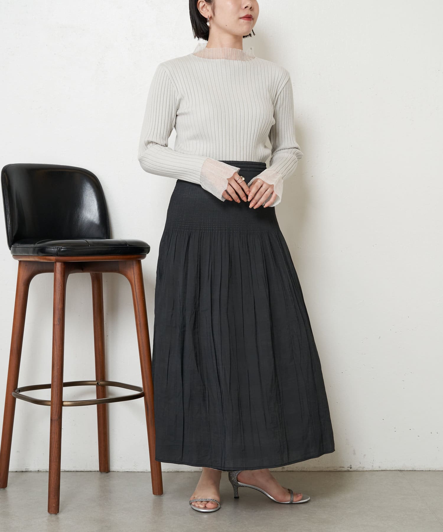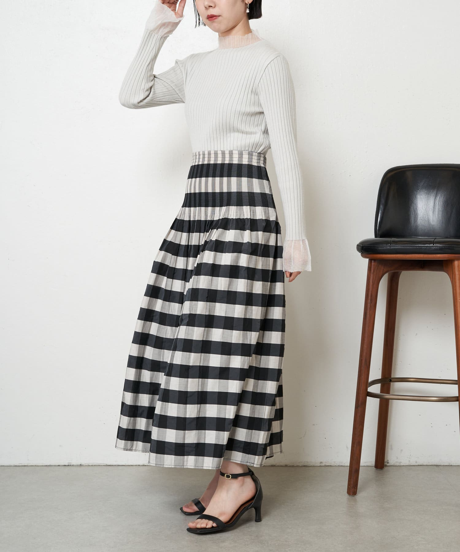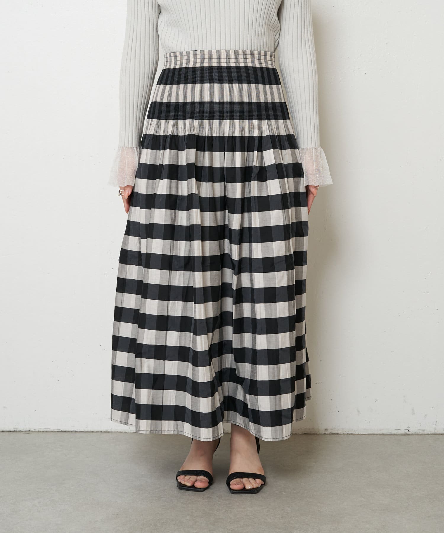 ・ウエストをシャーリング風のデザインにし、ラフな着心地を叶えてくれるリバーシブルのスカート。