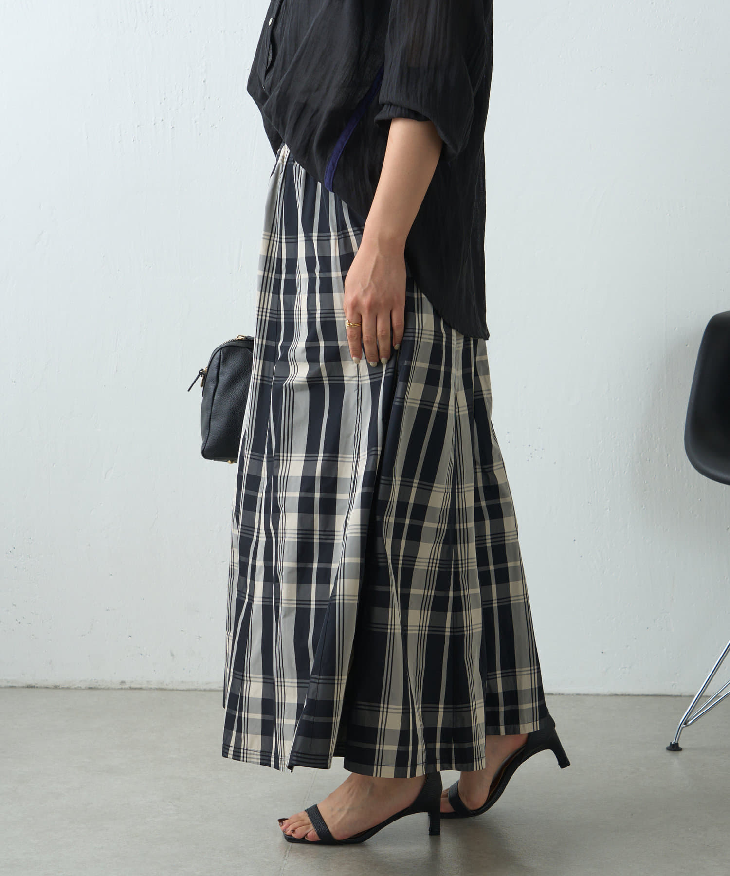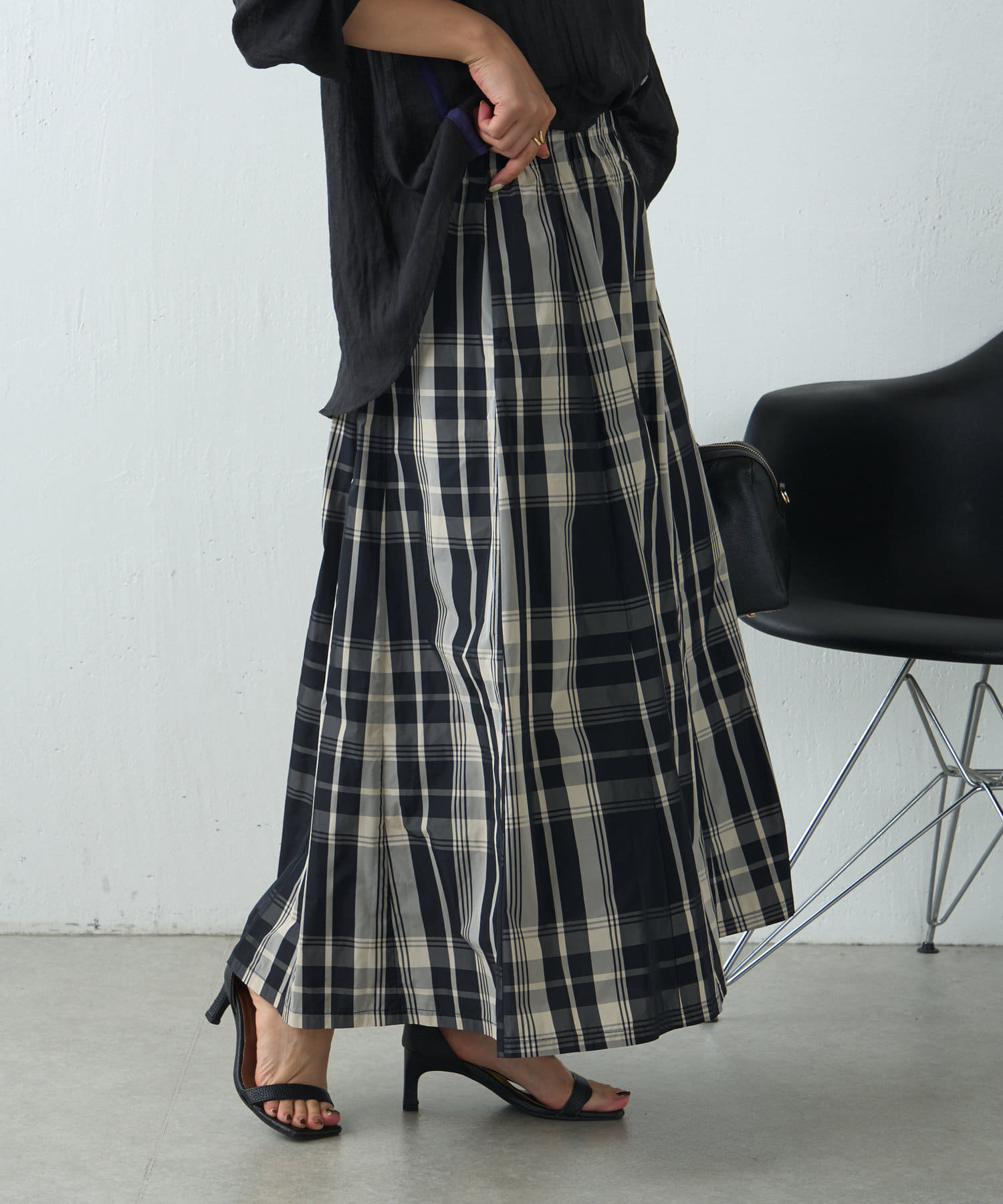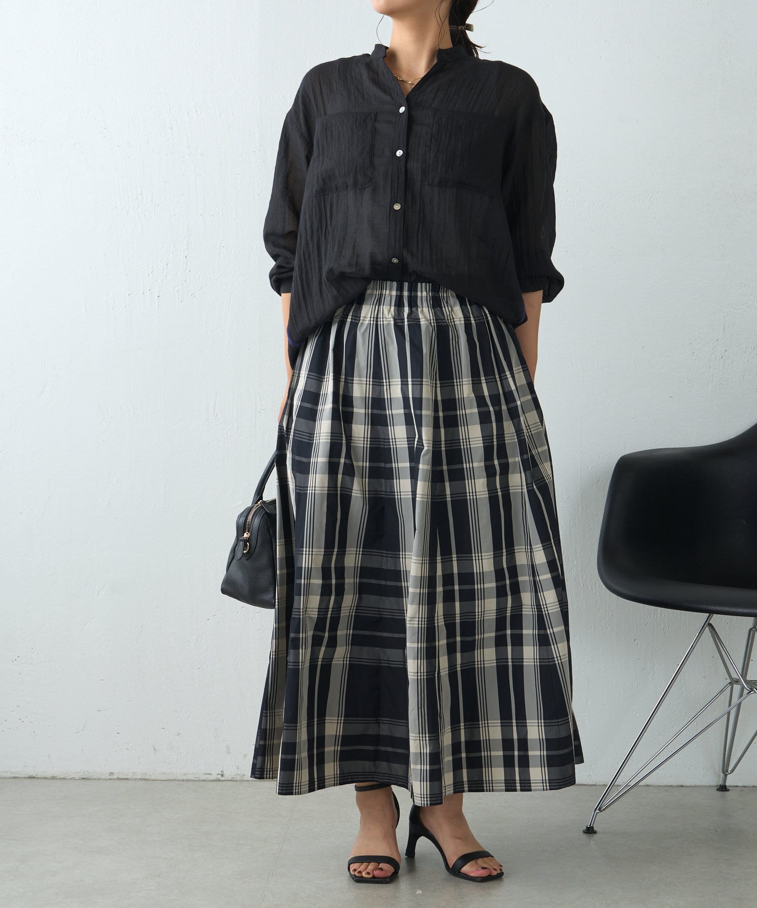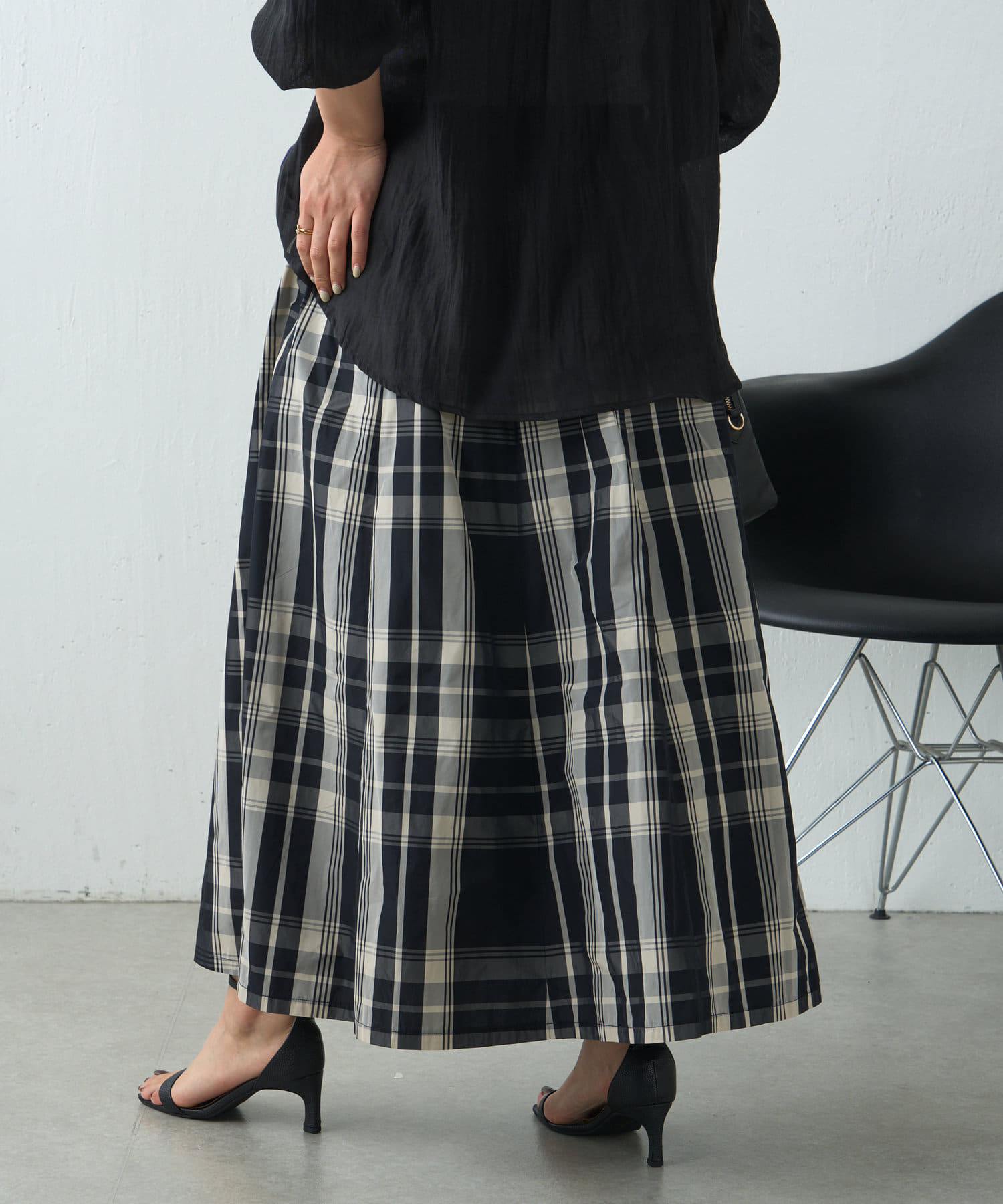・ブラックは大人チェック。柄物が苦手な方でも挑戦しやすいモノトーンカラー。シンプルなトップスと合わせるだけでも様になります。