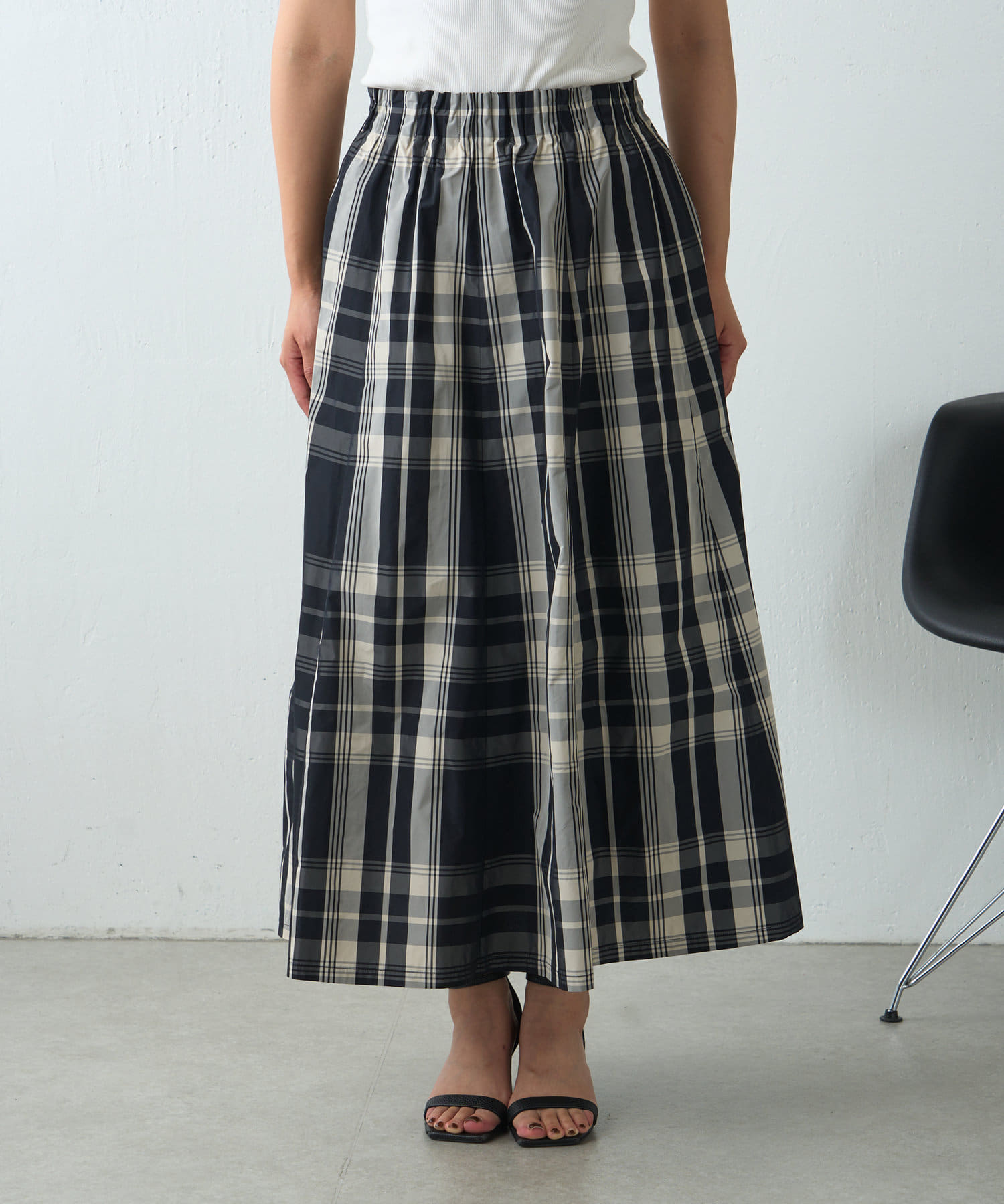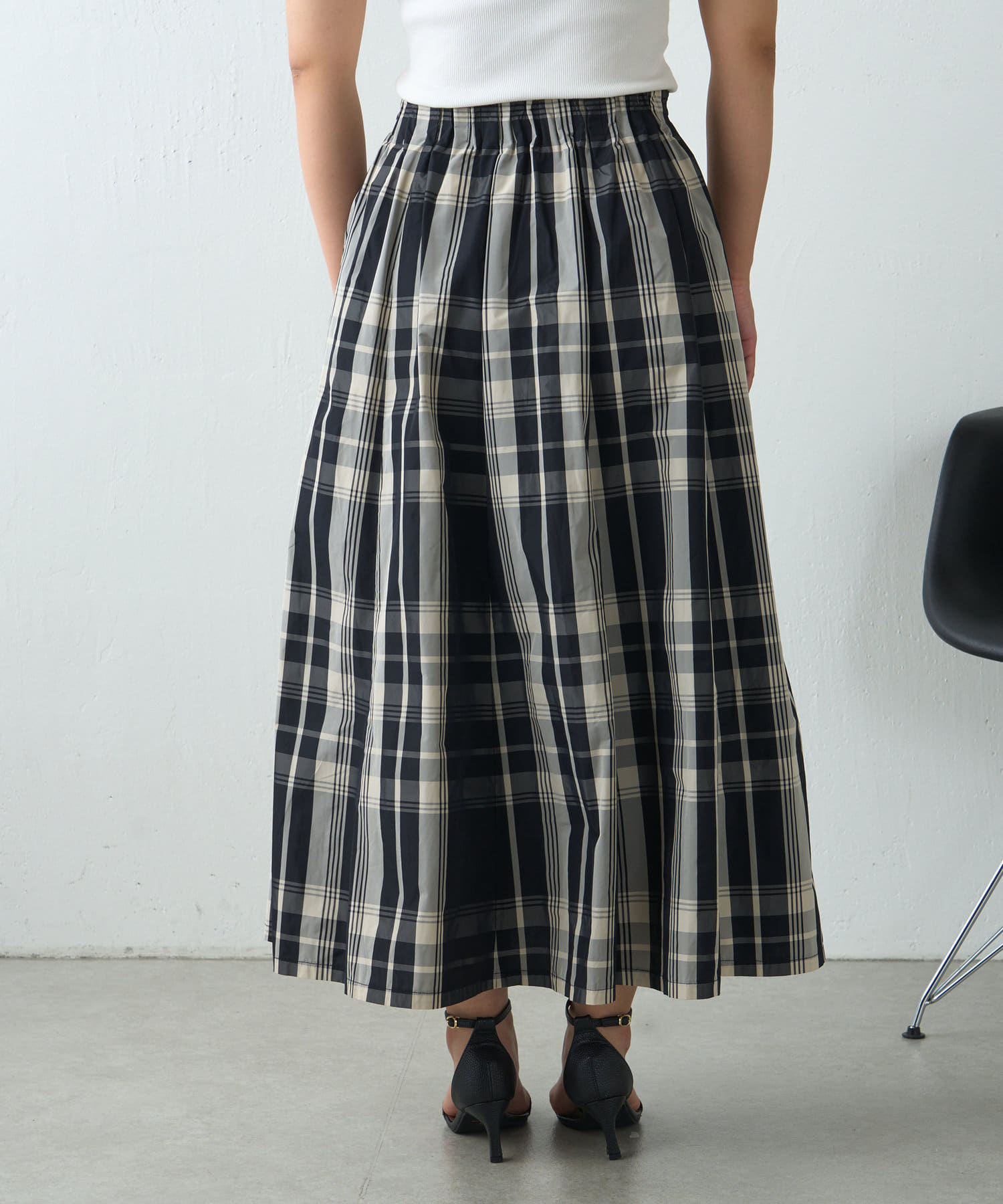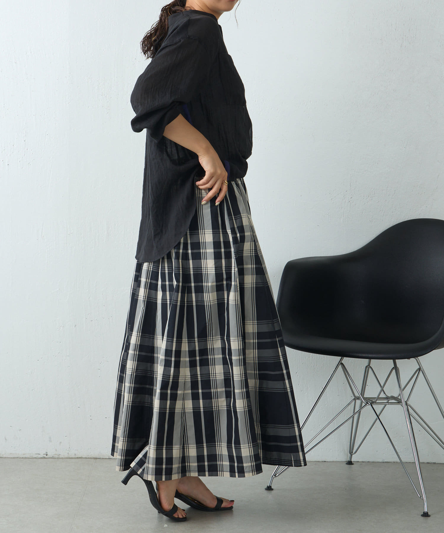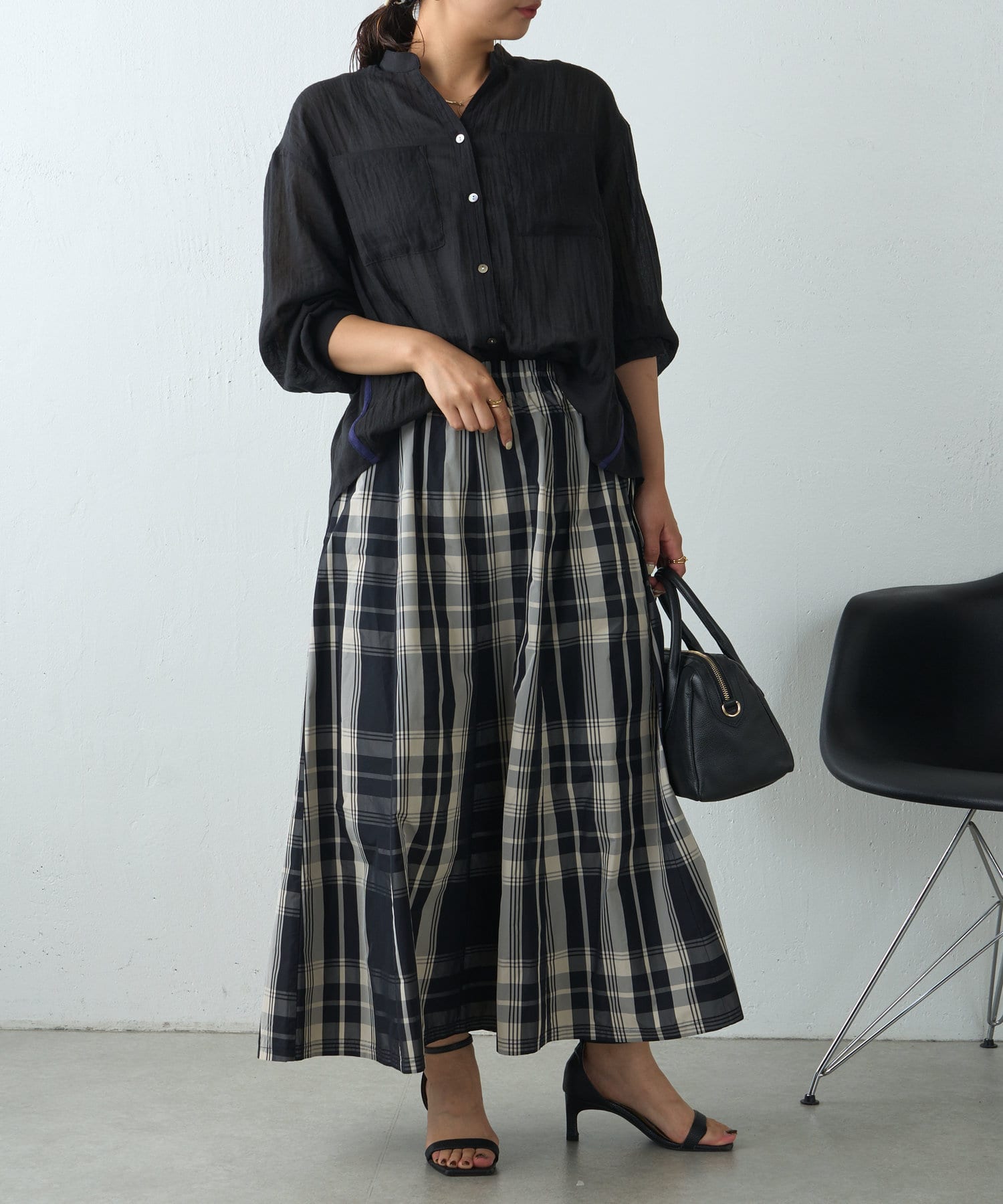 ・ブラックは大人チェック。柄物が苦手な方でも挑戦しやすいモノトーンカラー。シンプルなトップスと合わせるだけでも様になります。
