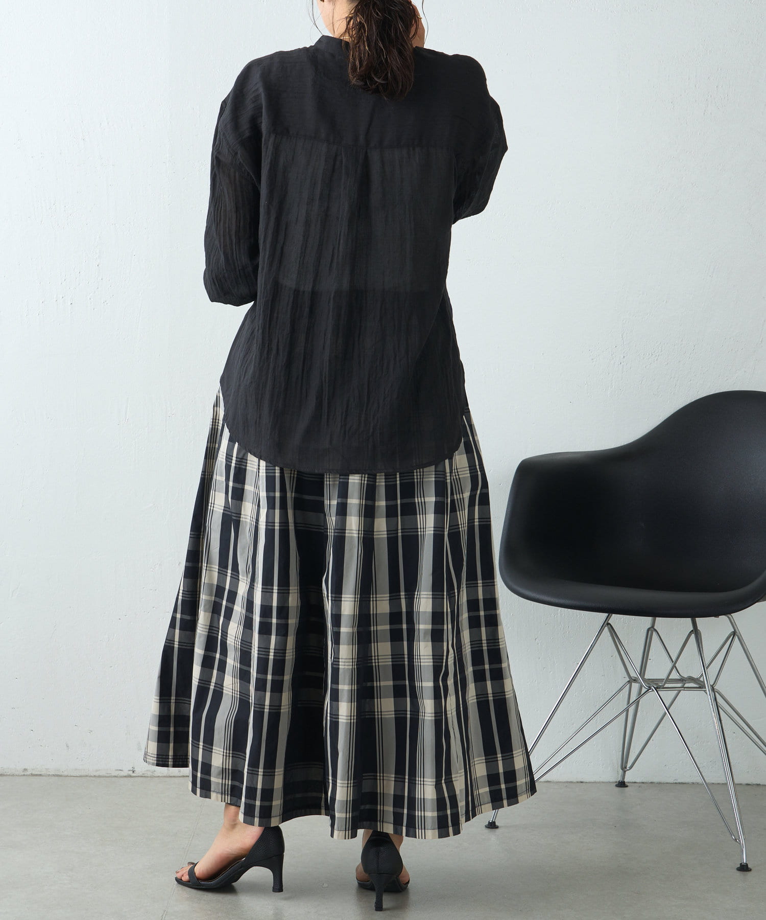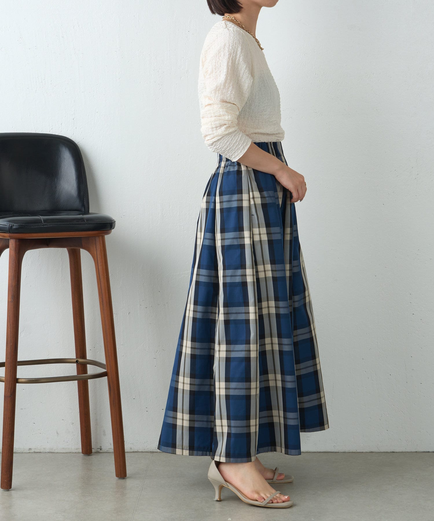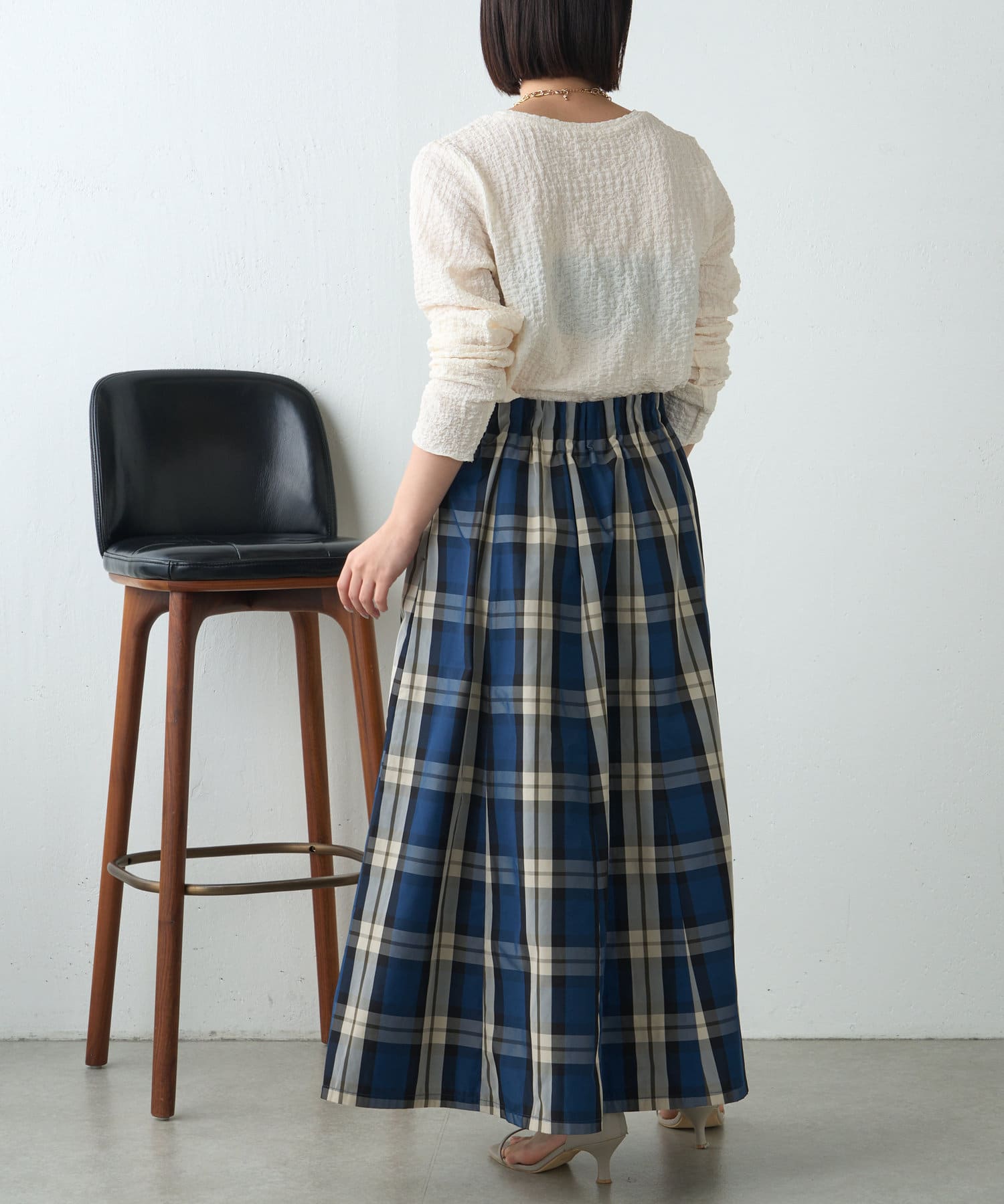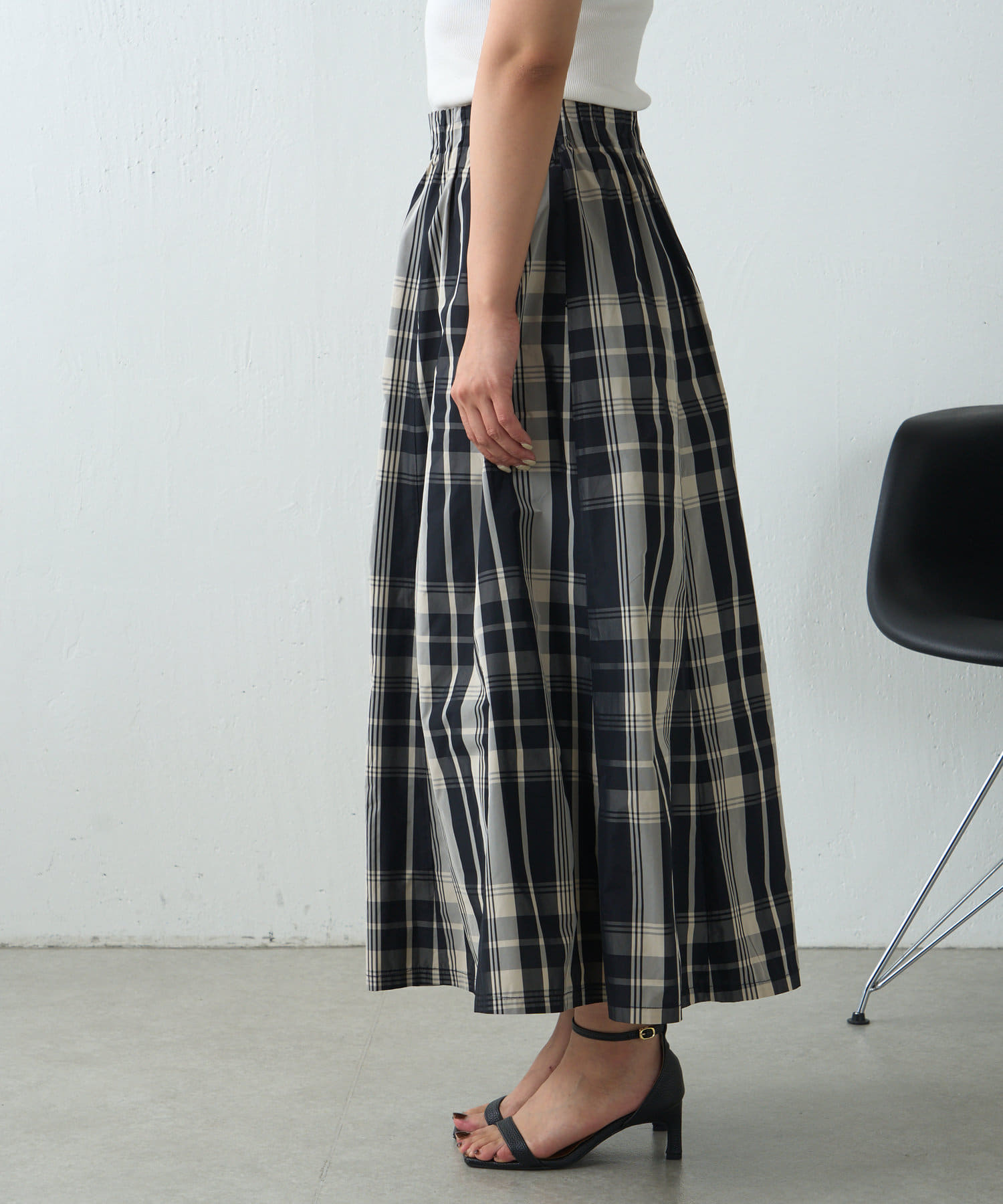 ・ブラックは大人チェック。柄物が苦手な方でも挑戦しやすいモノトーンカラー。シンプルなトップスと合わせるだけでも様になります。