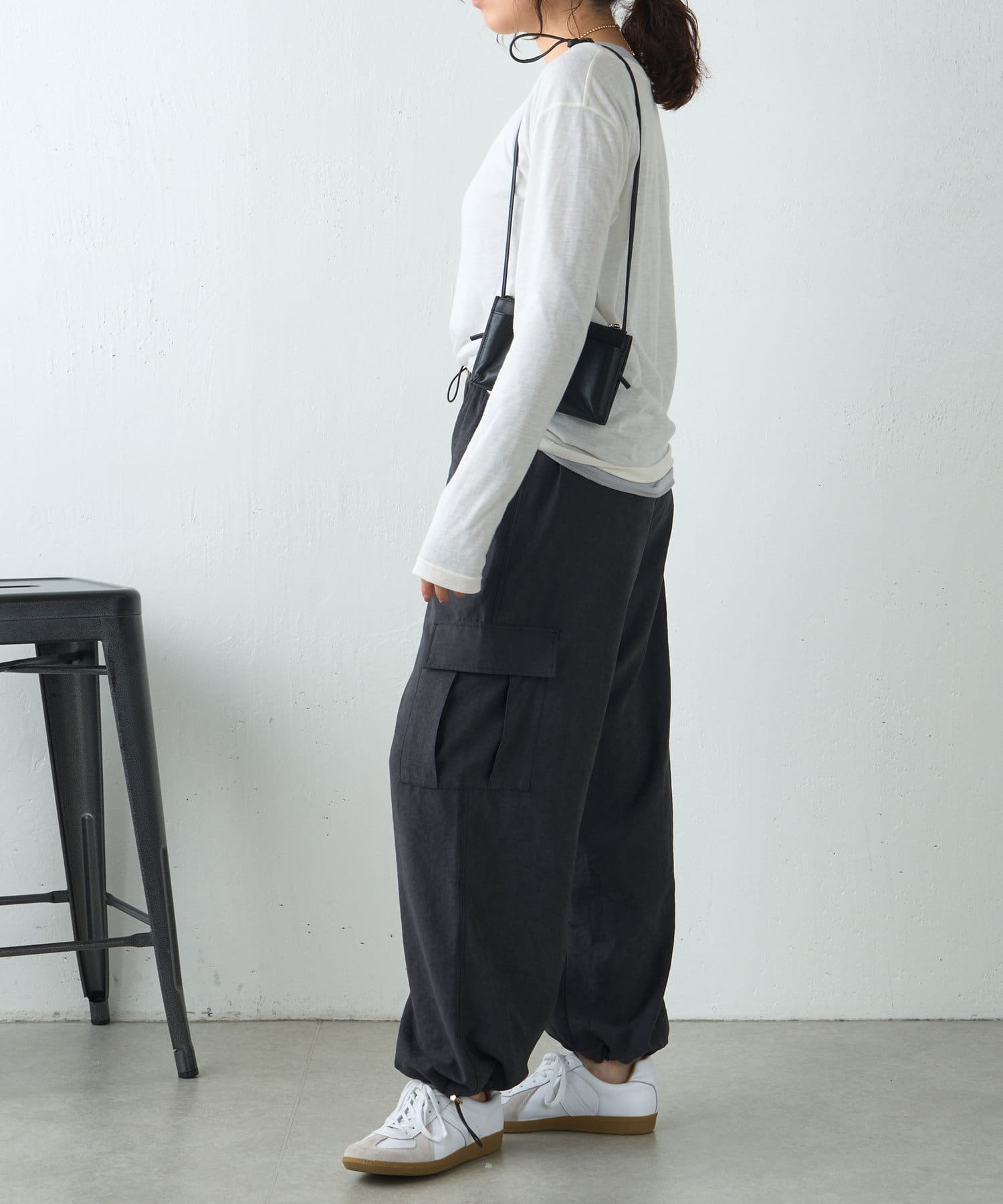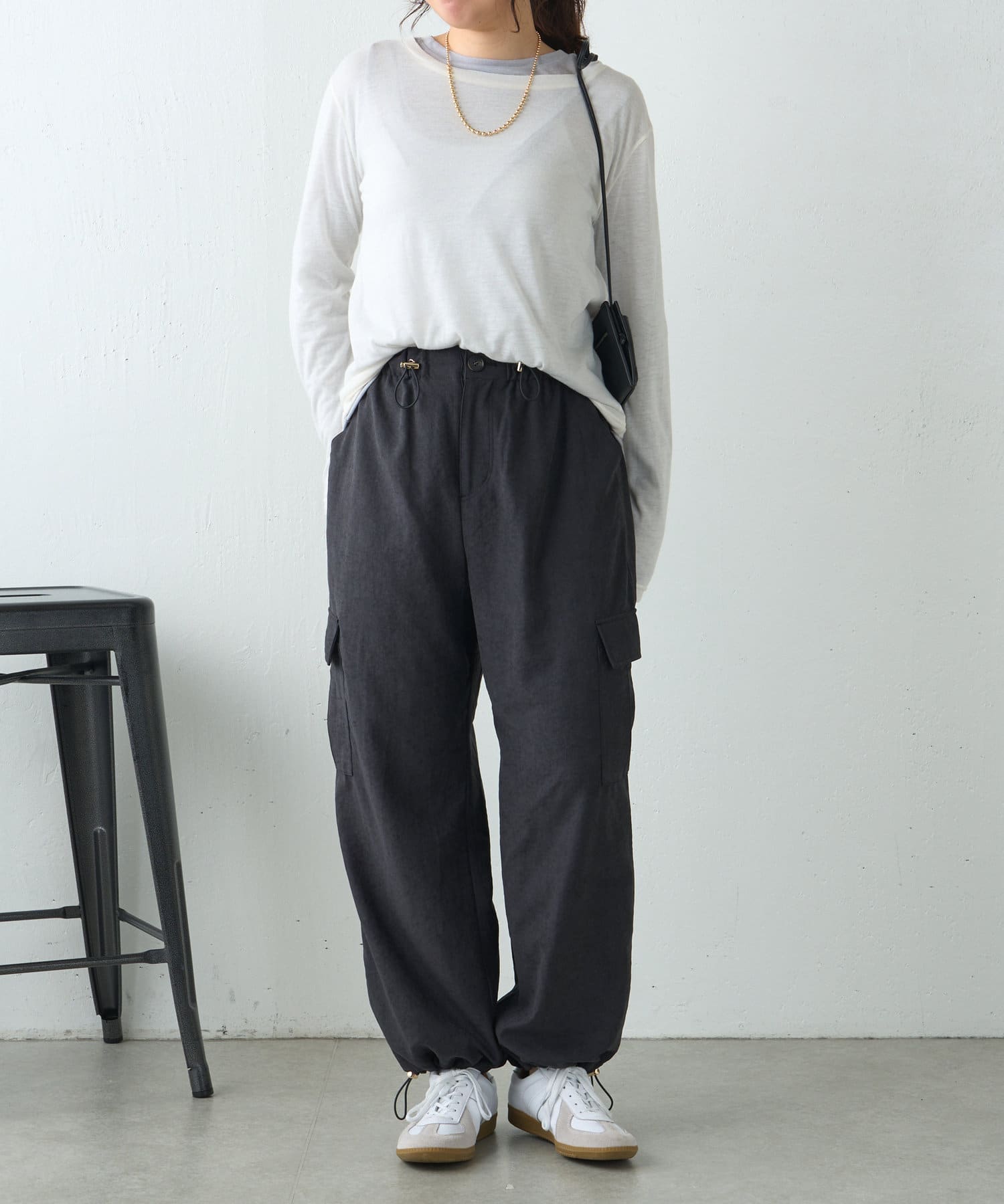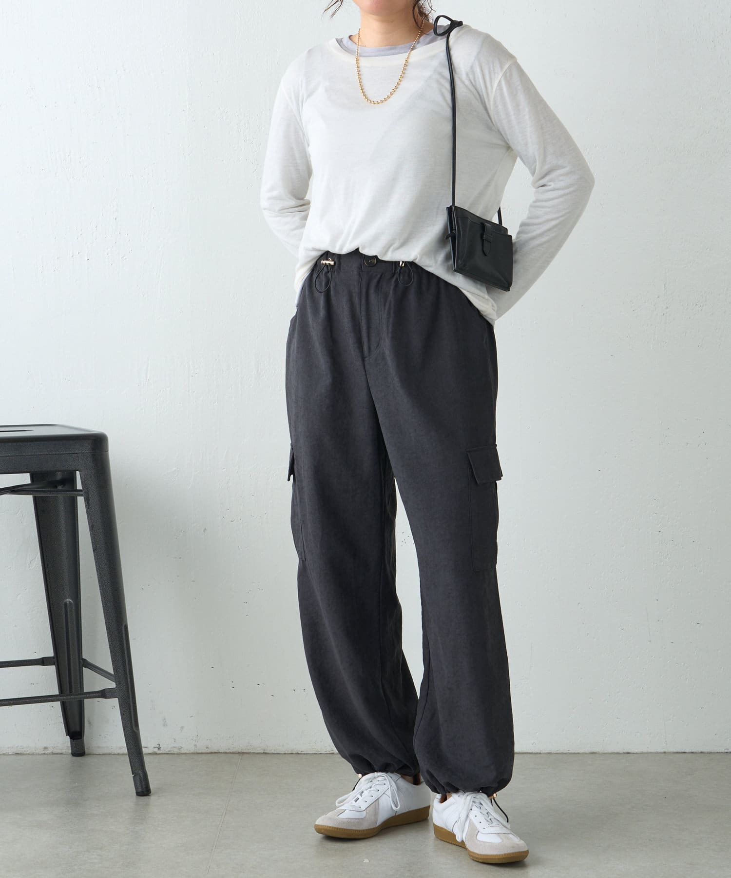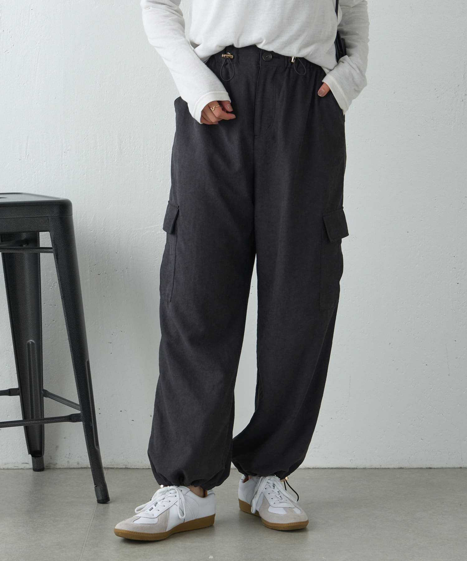 ・トレンド感のあるパラシュートパンツに、少し起毛感のあるピーチスキン素材が登場。