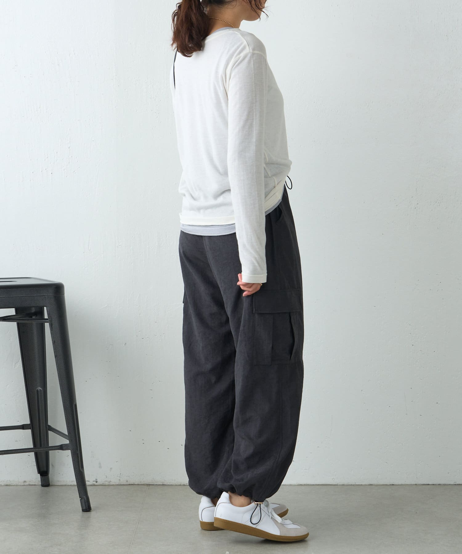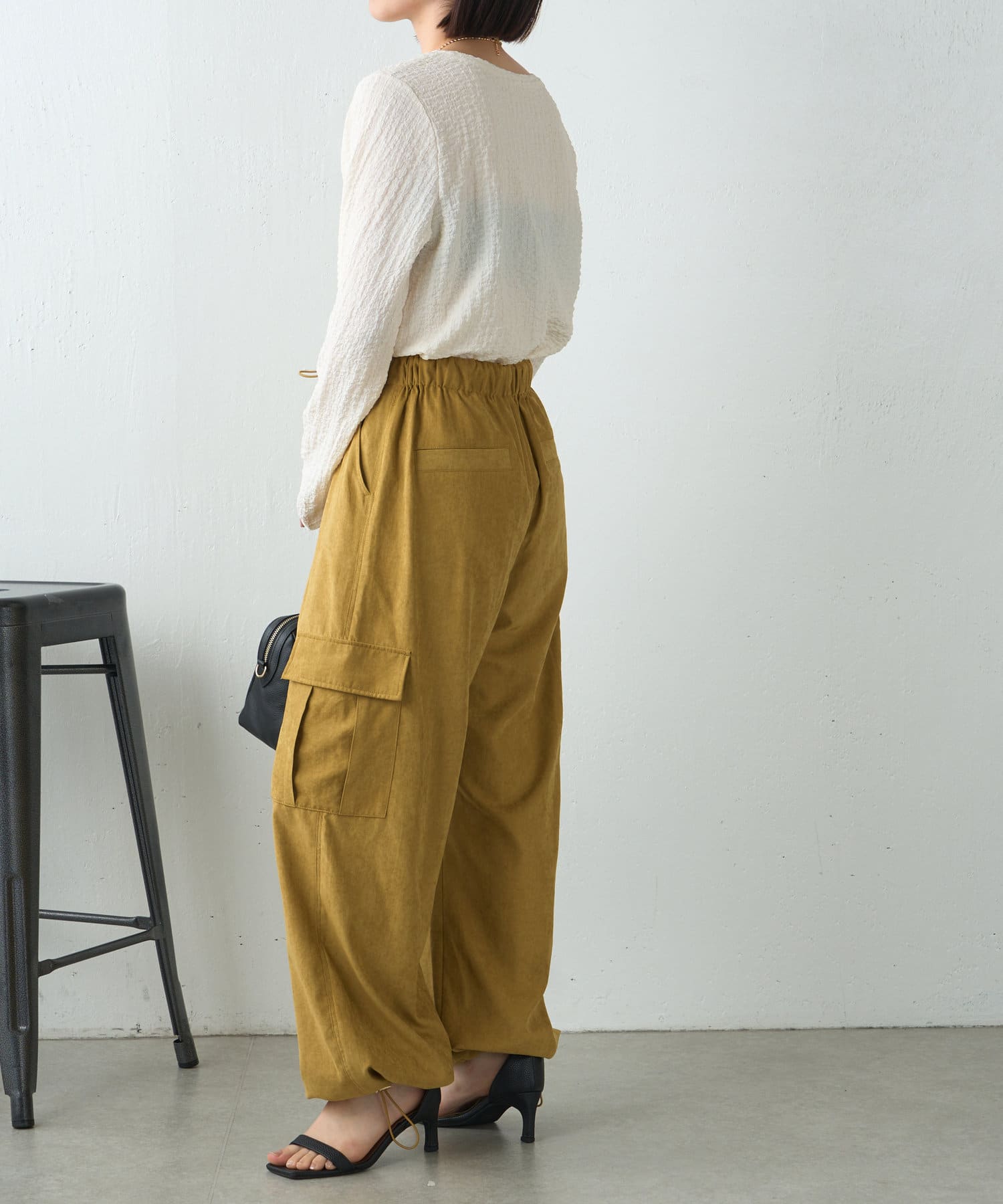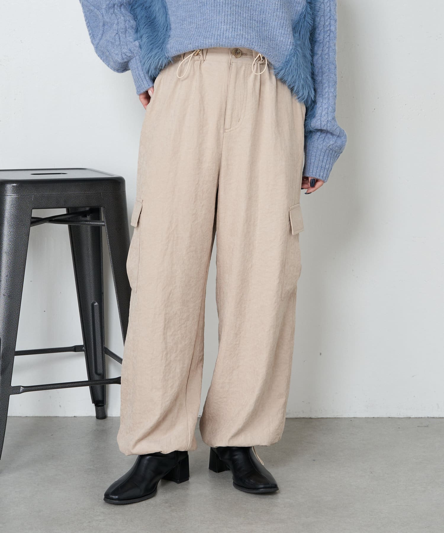 ・トレンド感のあるパラシュートパンツに、少し起毛感のあるピーチスキン素材が登場。