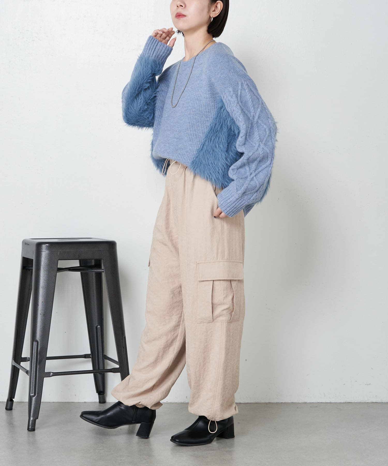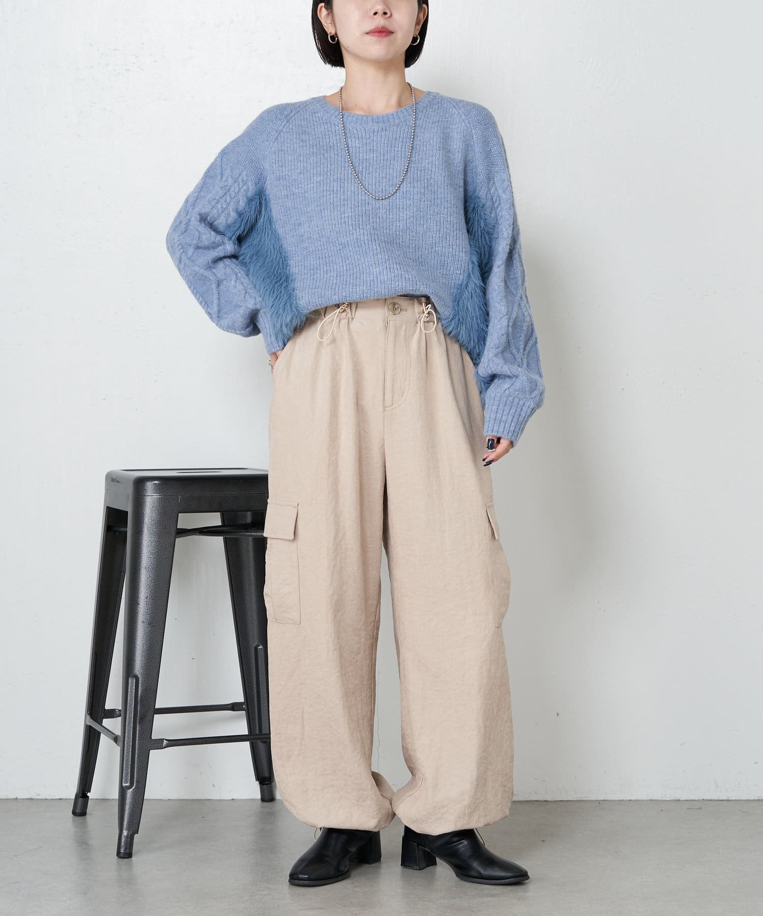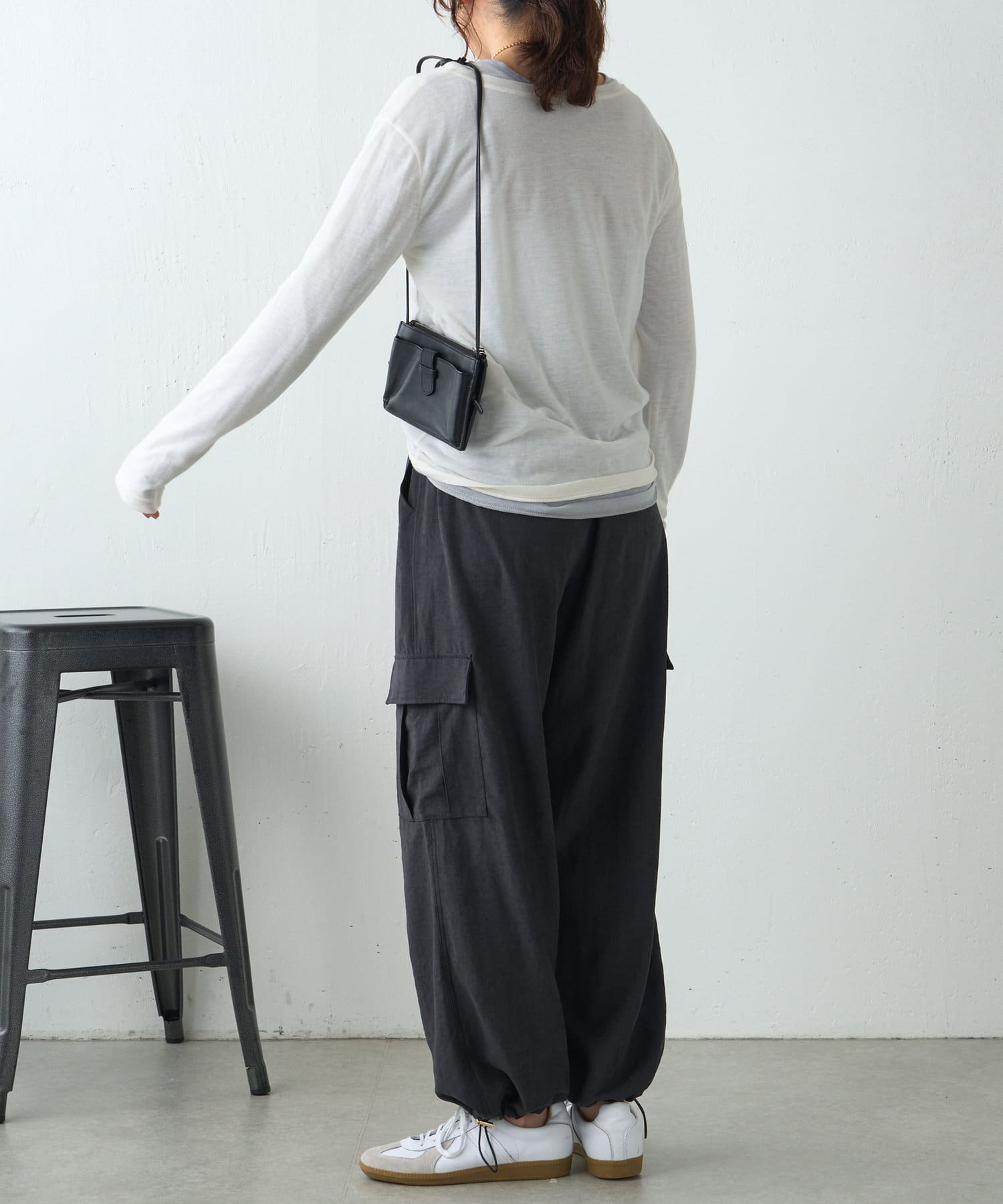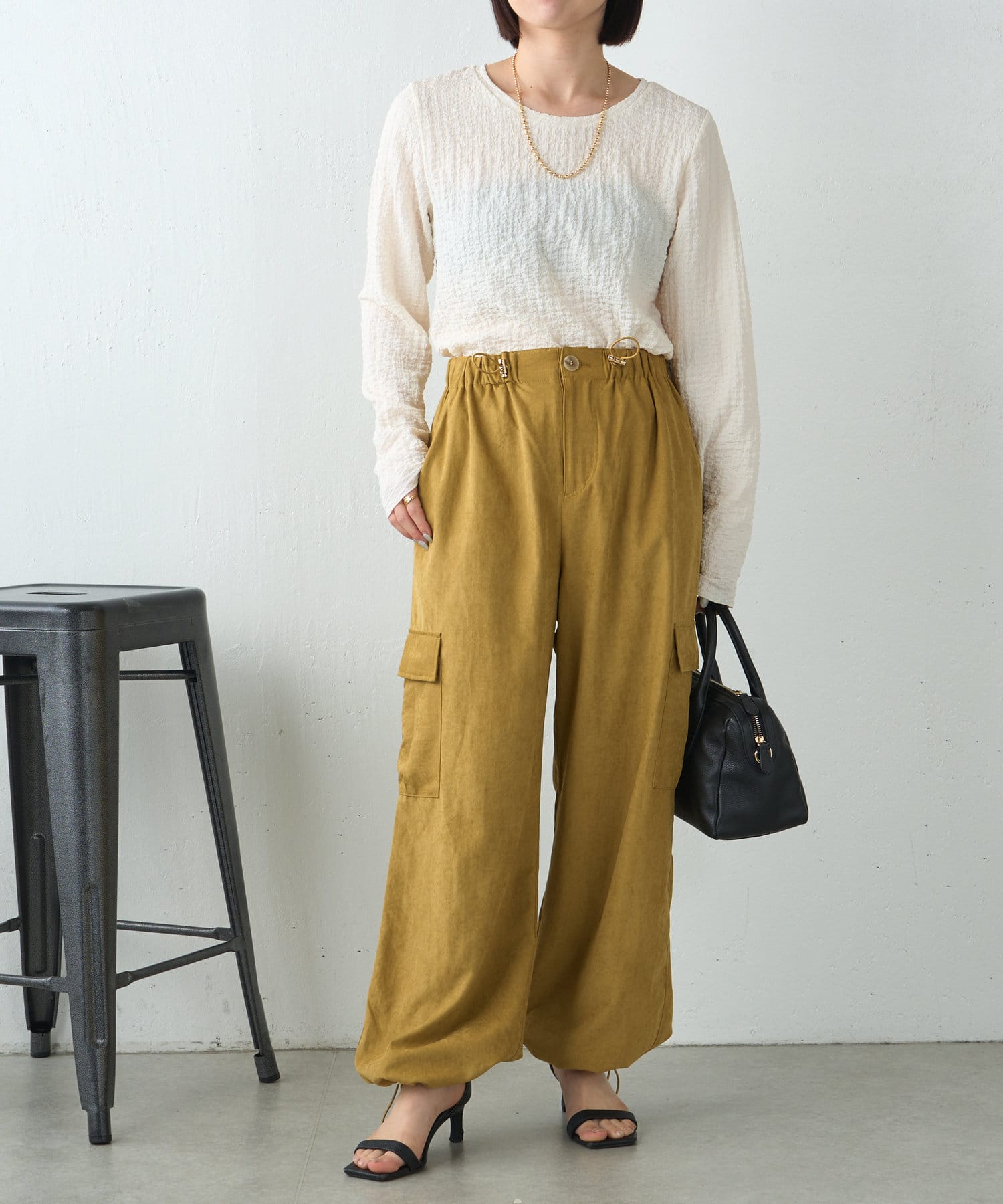 ・トレンド感のあるパラシュートパンツに、少し起毛感のあるピーチスキン素材が登場。