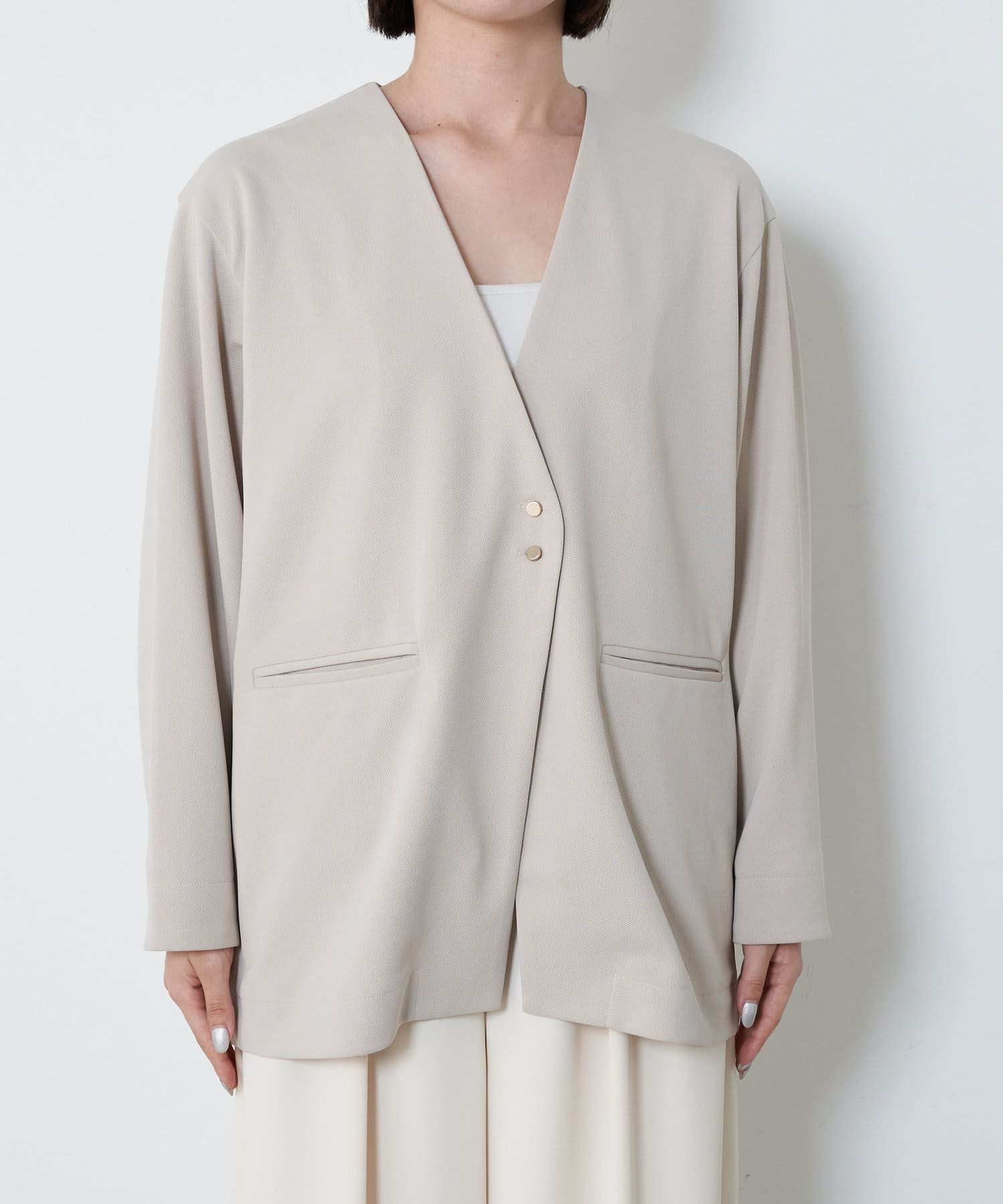 ノーカラーダブルジャケット