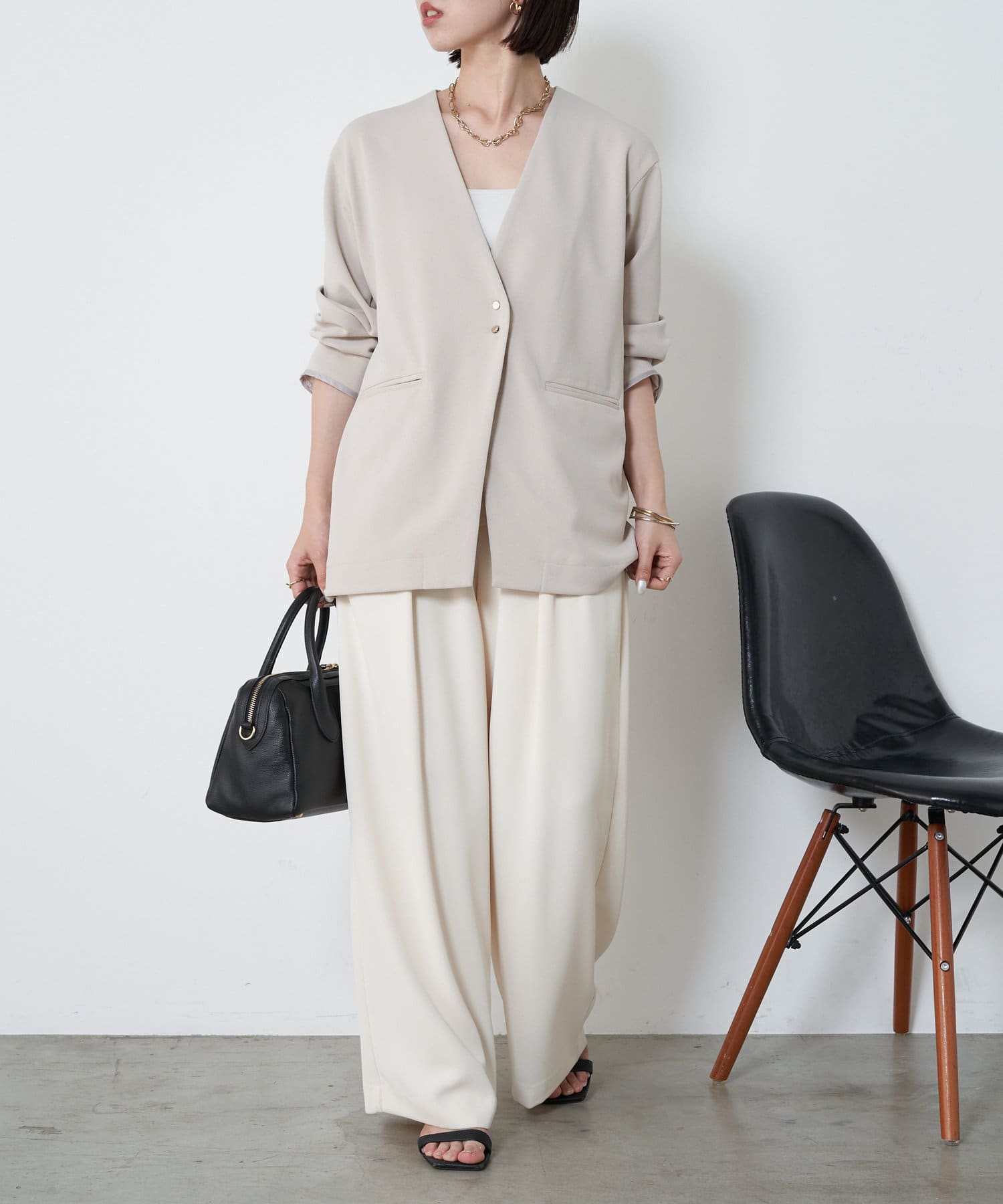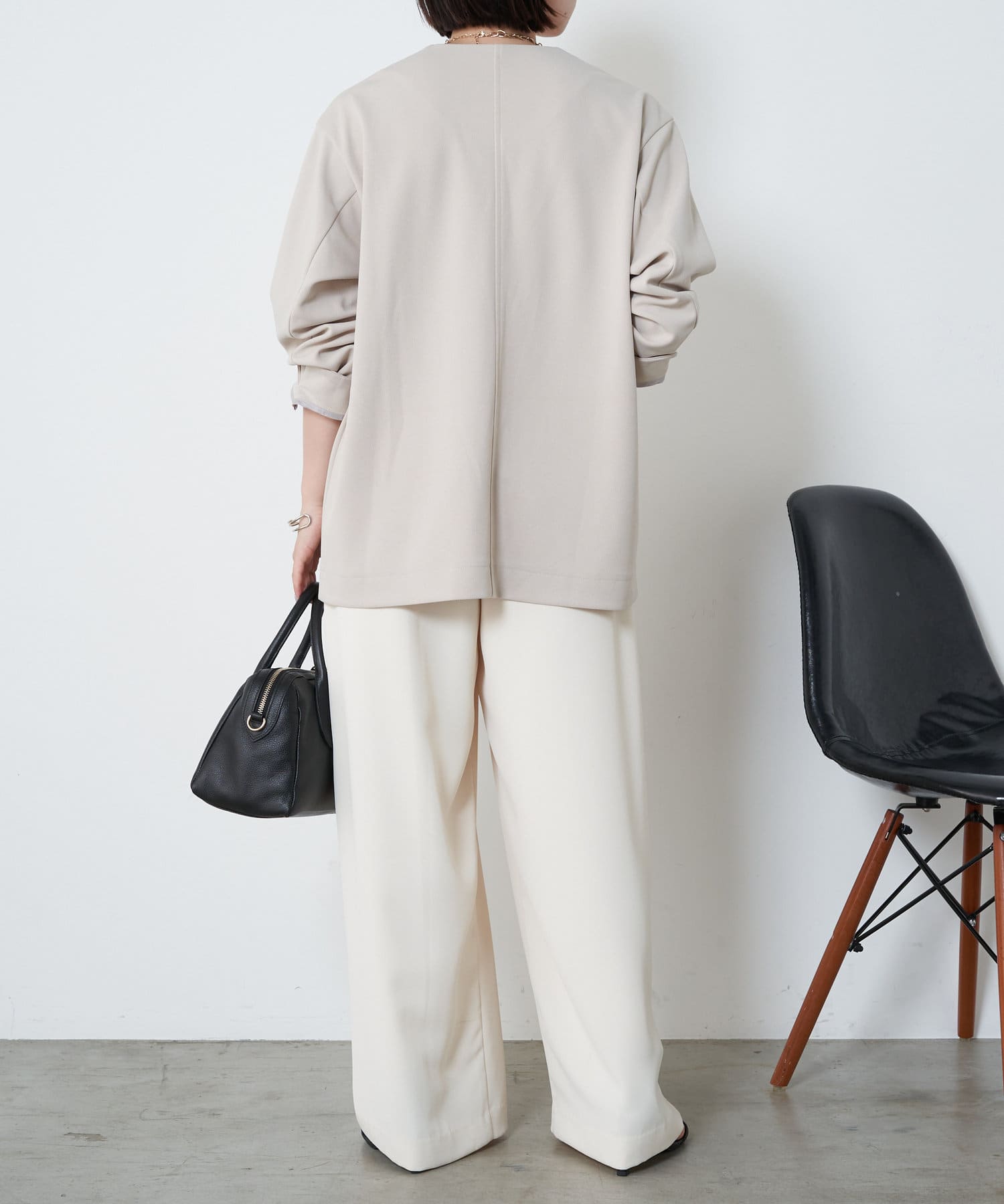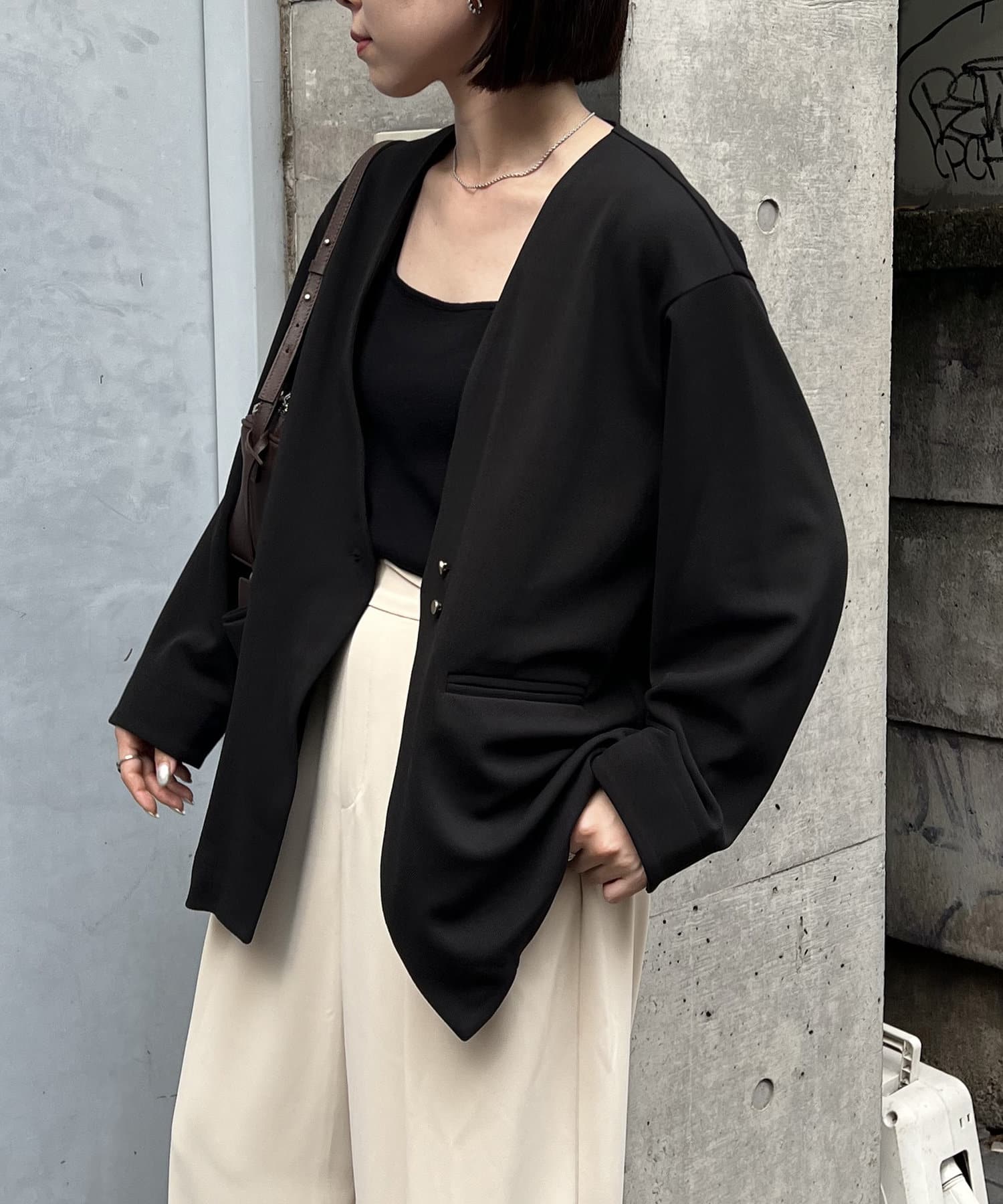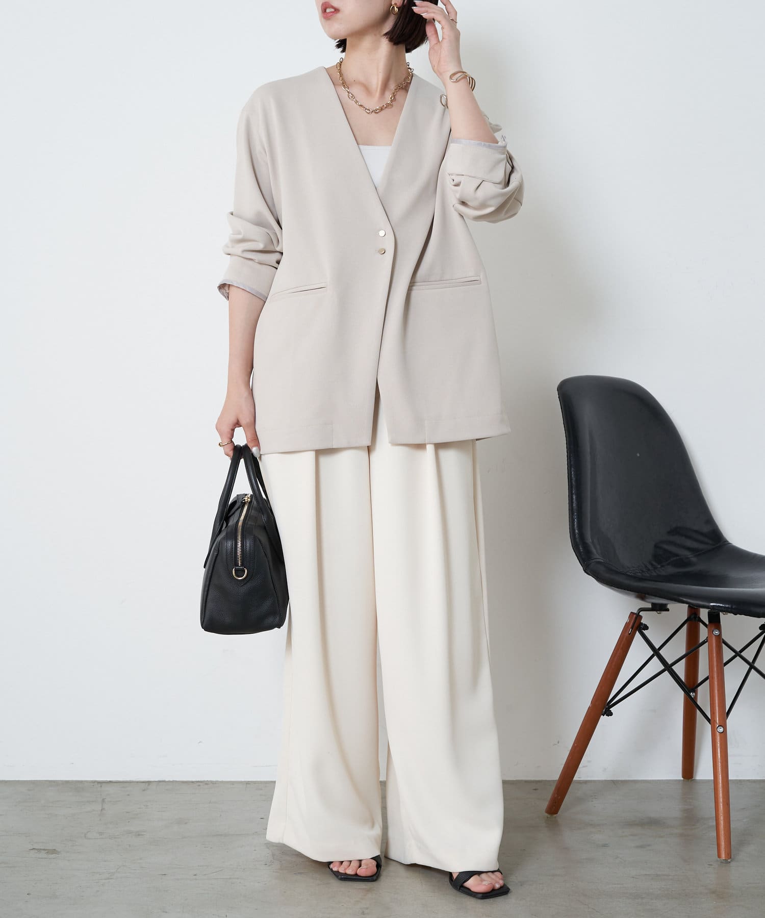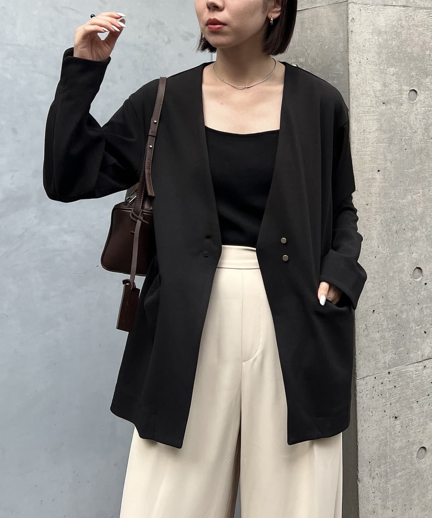 ・オンオフ分けて着回しできる大人なノーカラージャケットが登場!