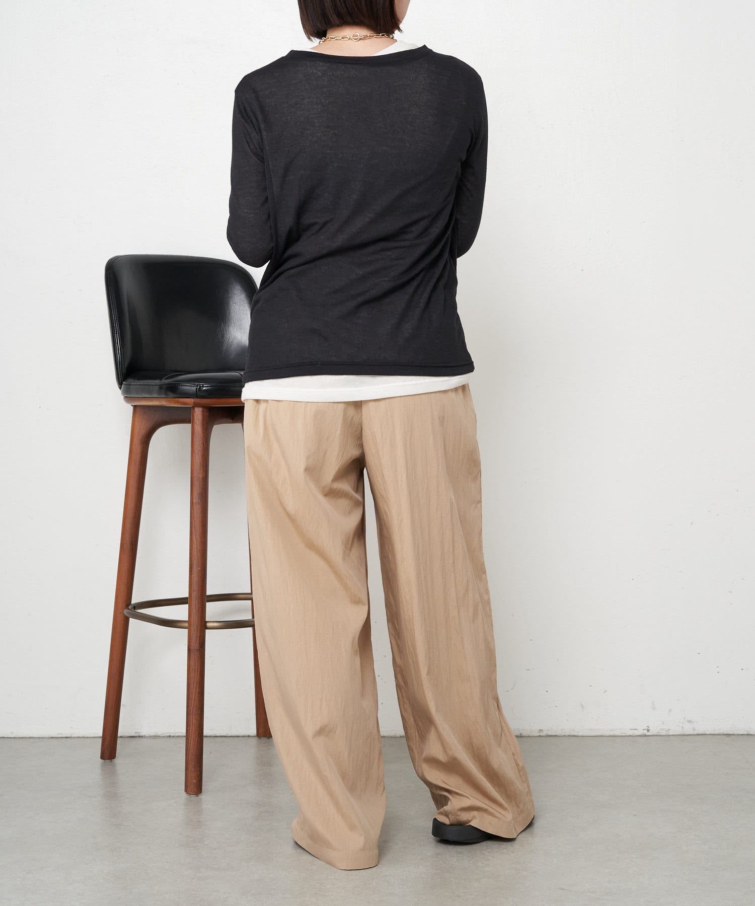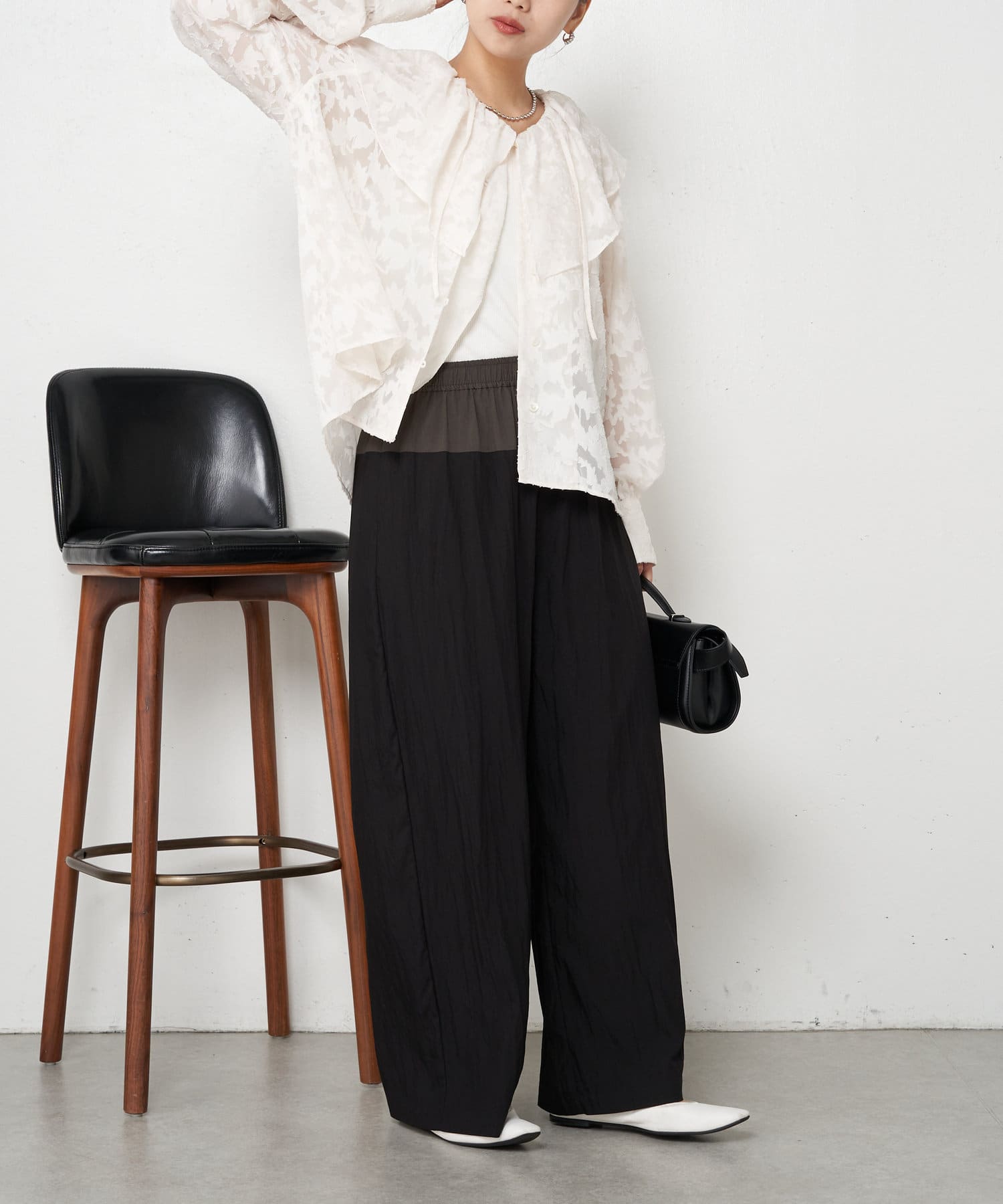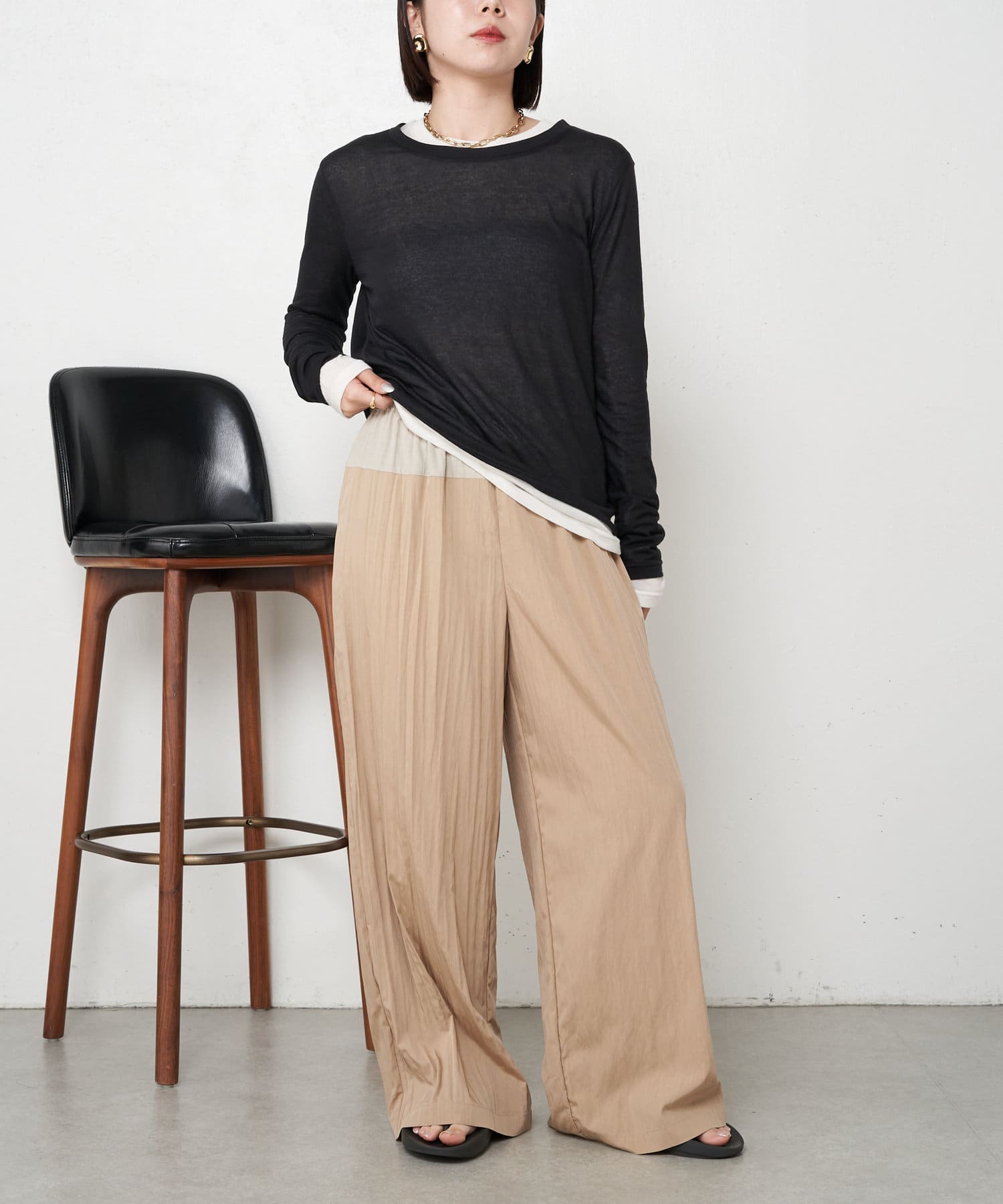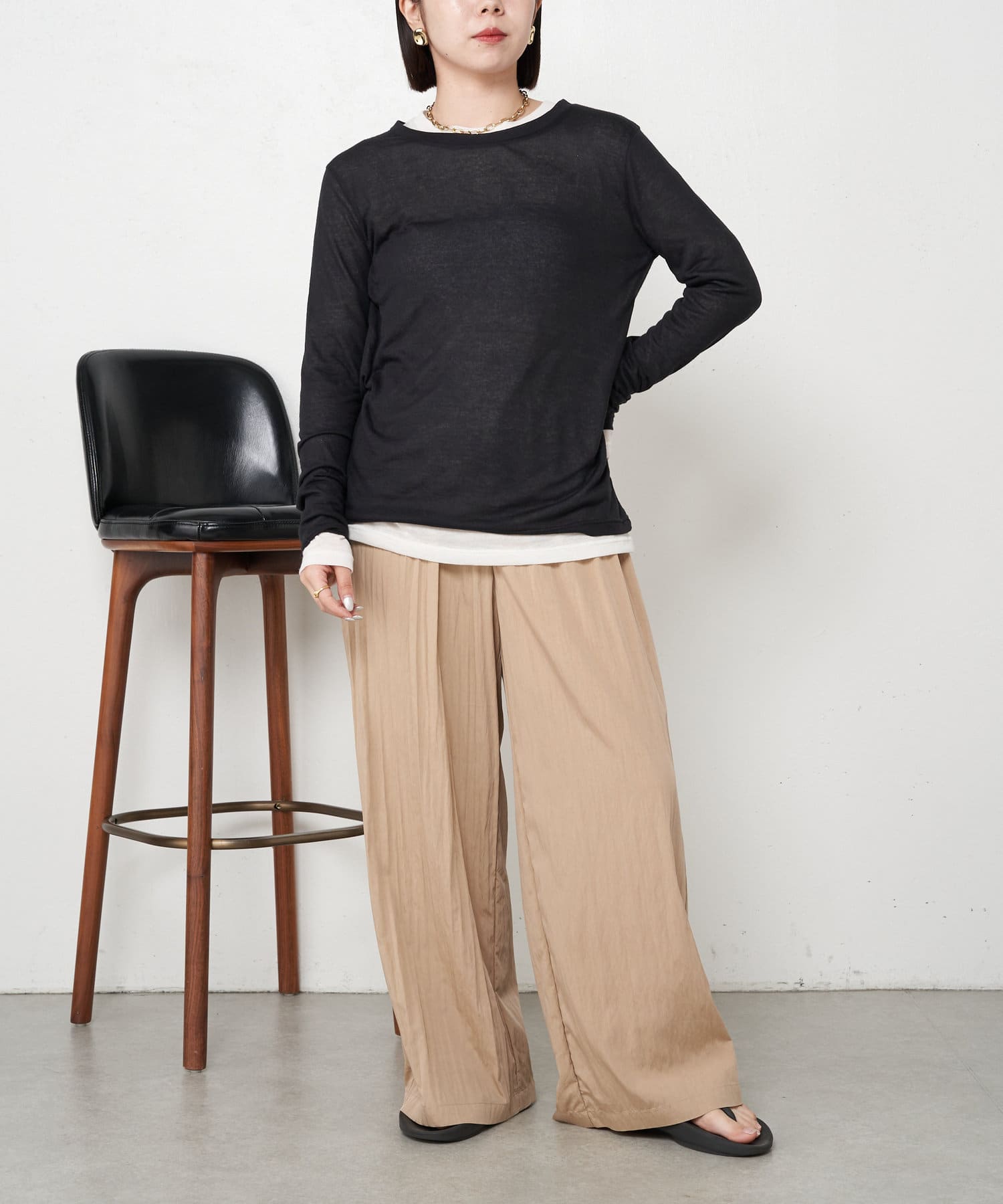 ・トップスインして配色デザインを見せるのはもちろんアウトスタイルでも楽しめますよ◎
