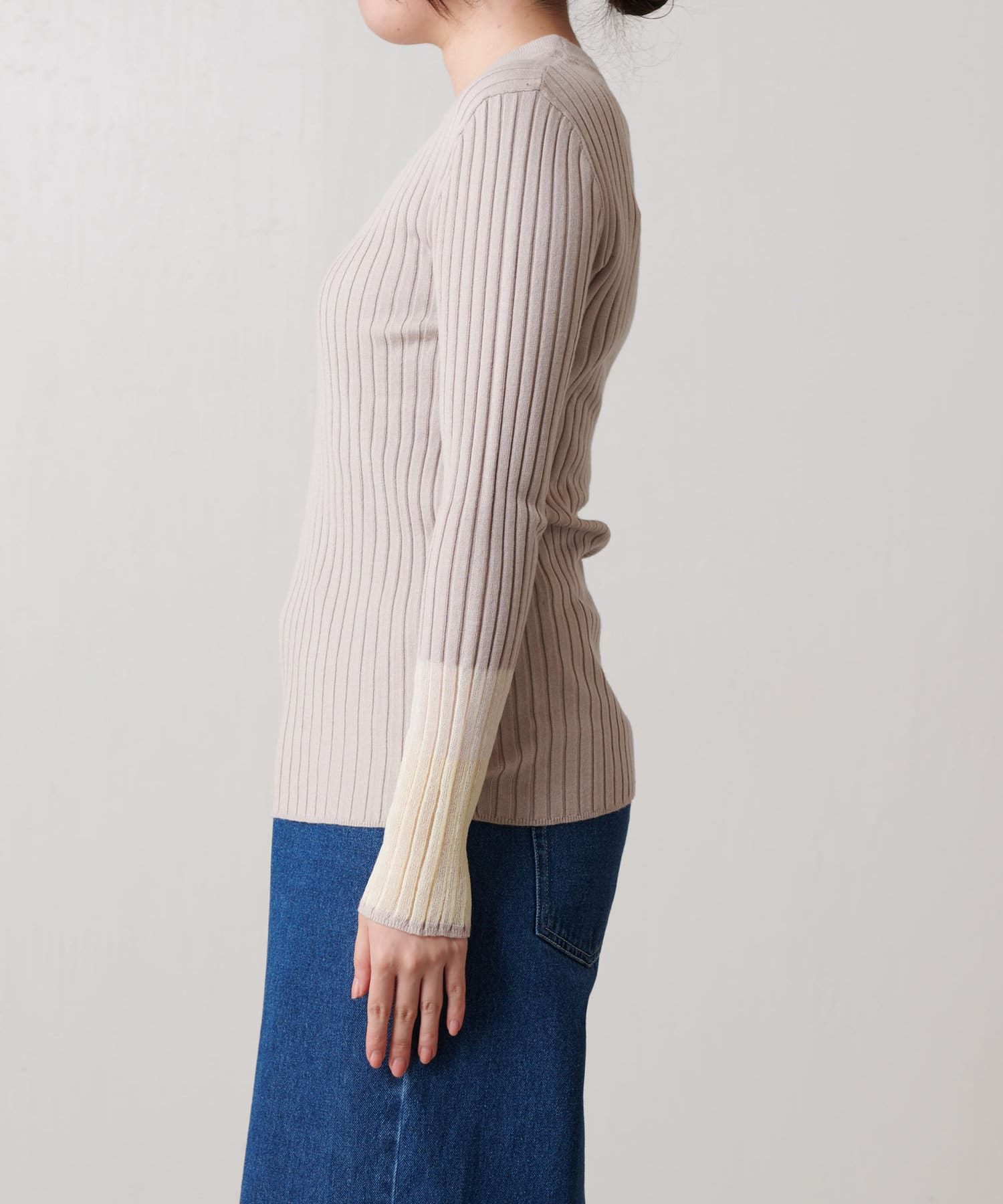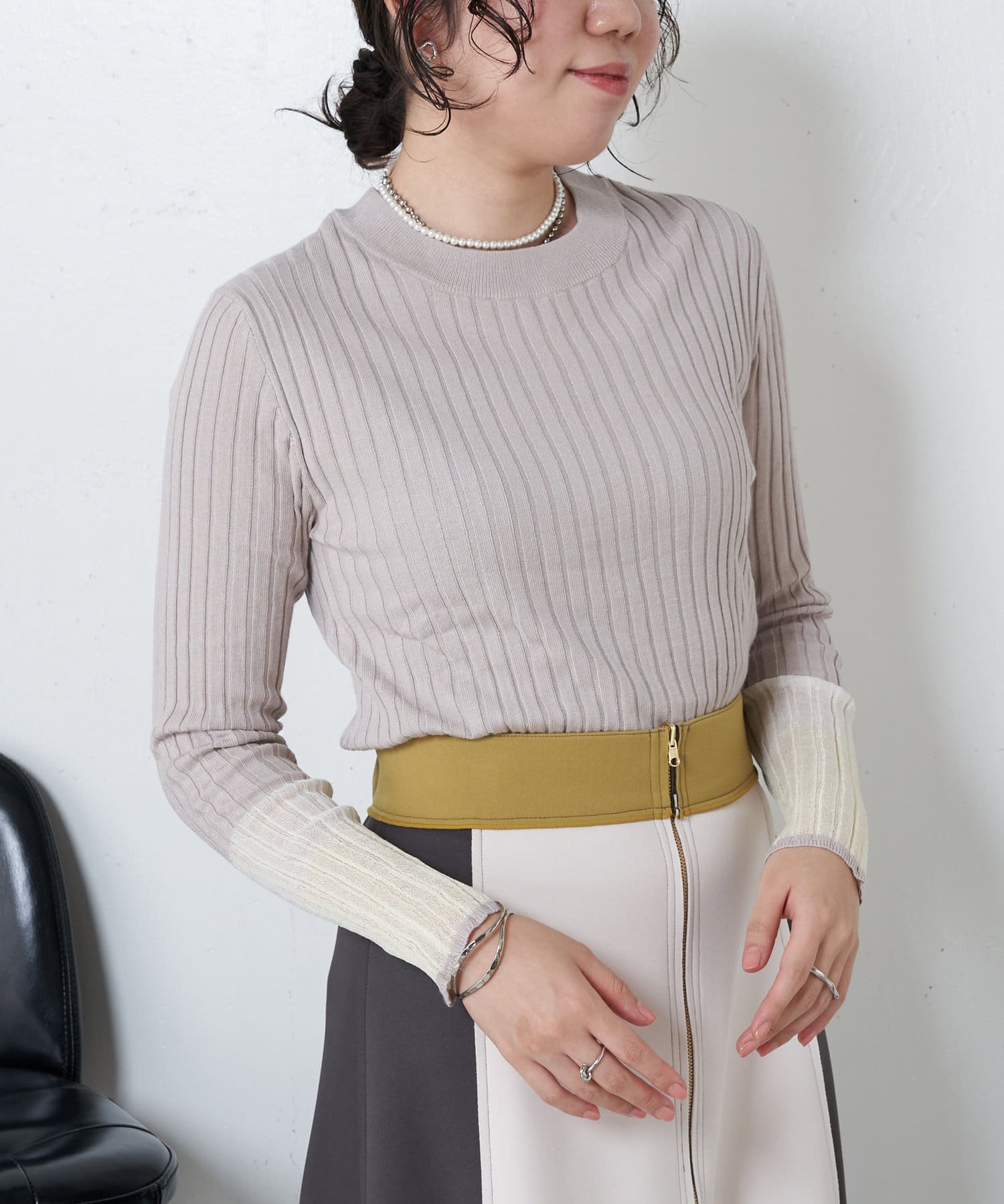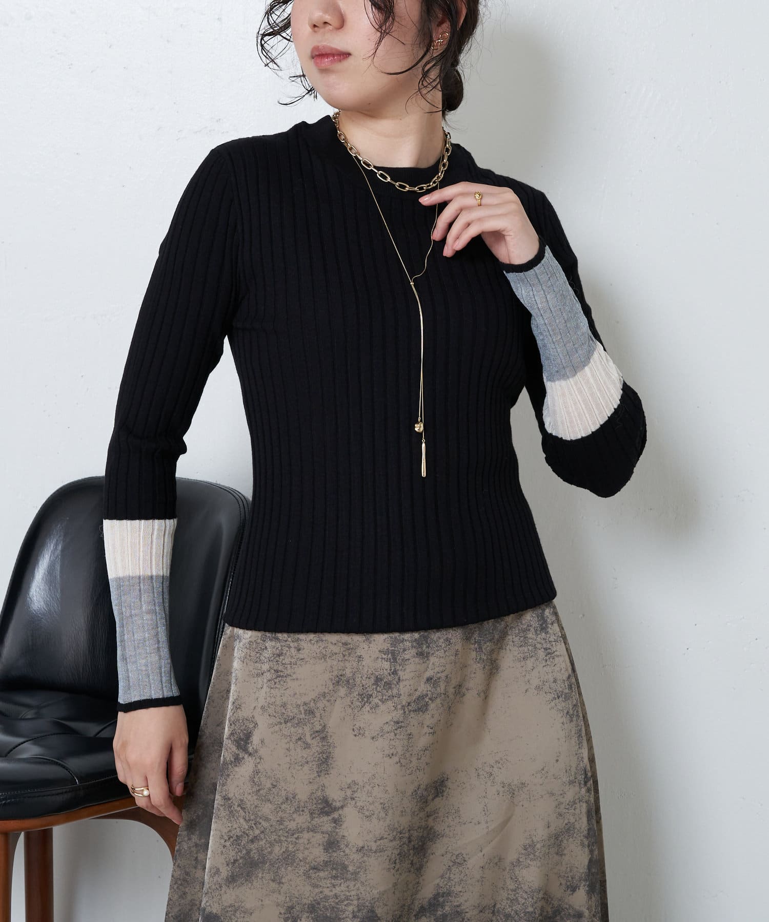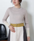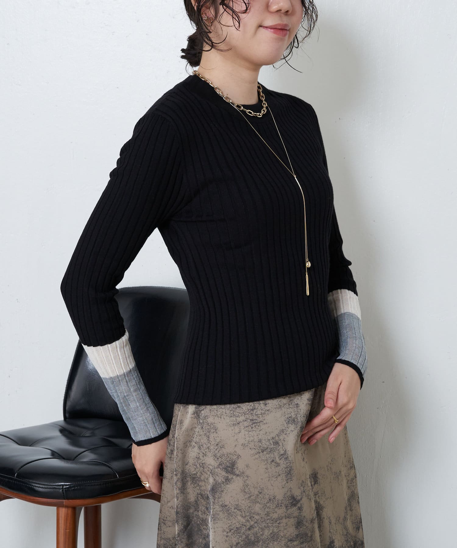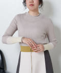 3配色袖シアーニット