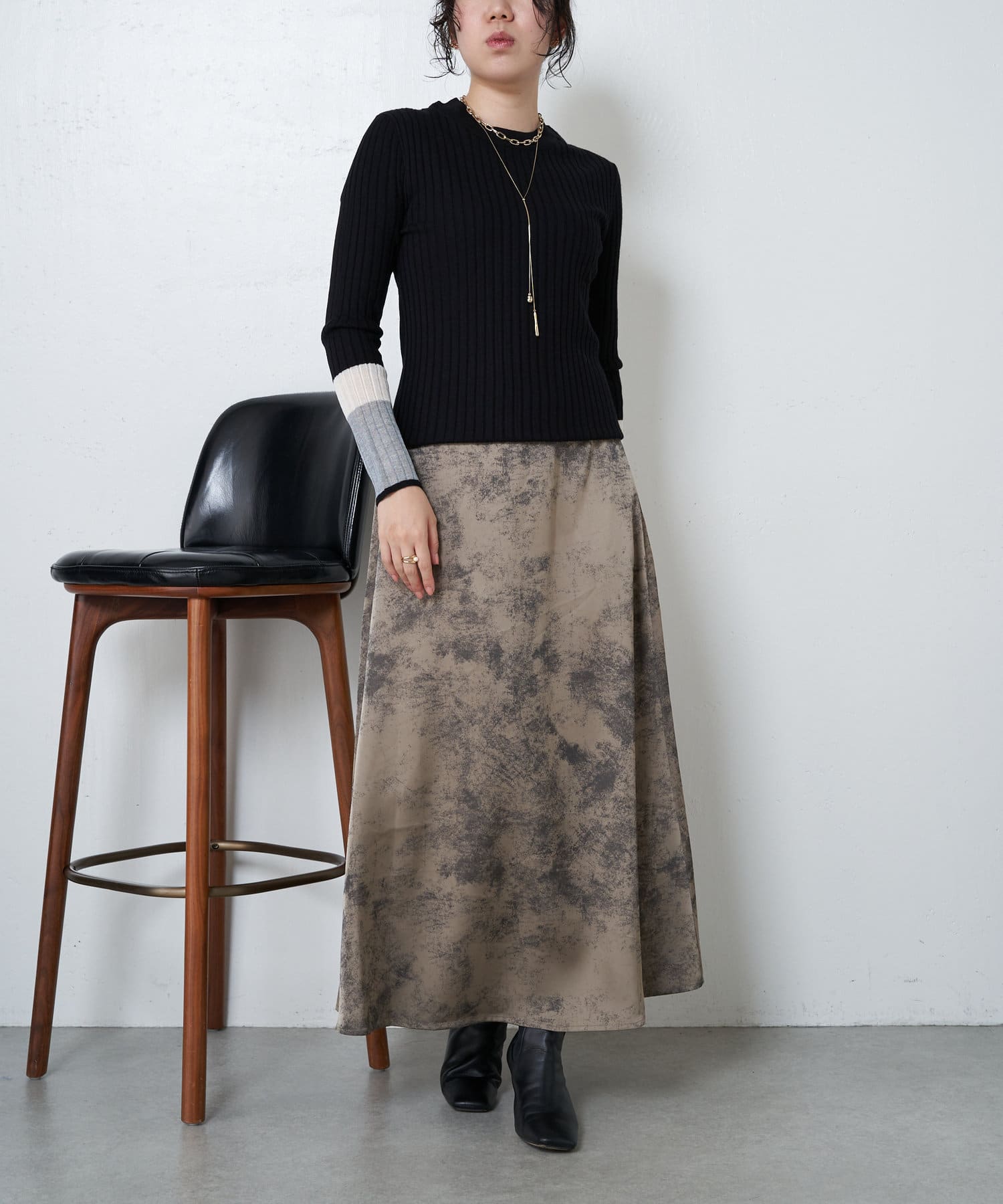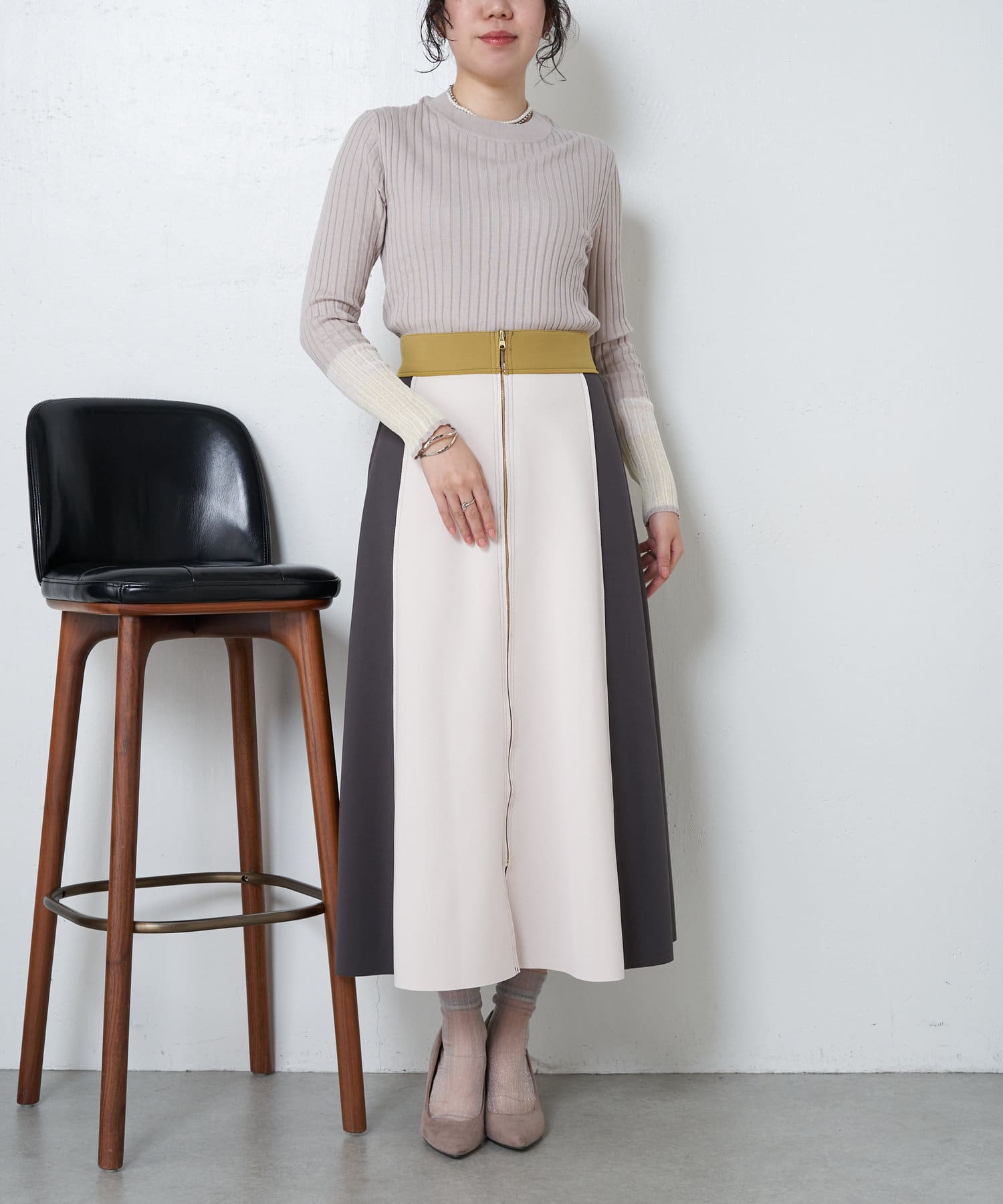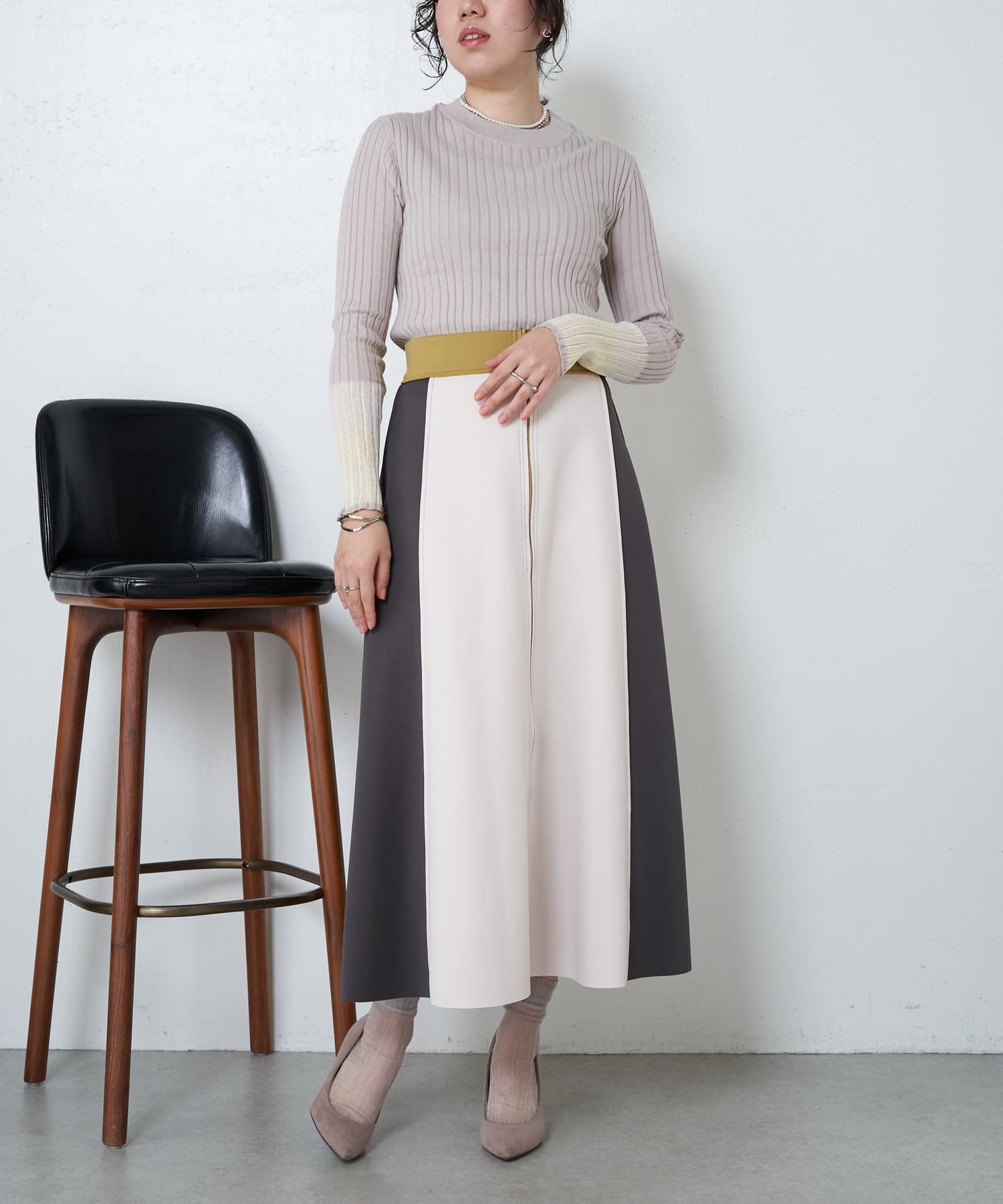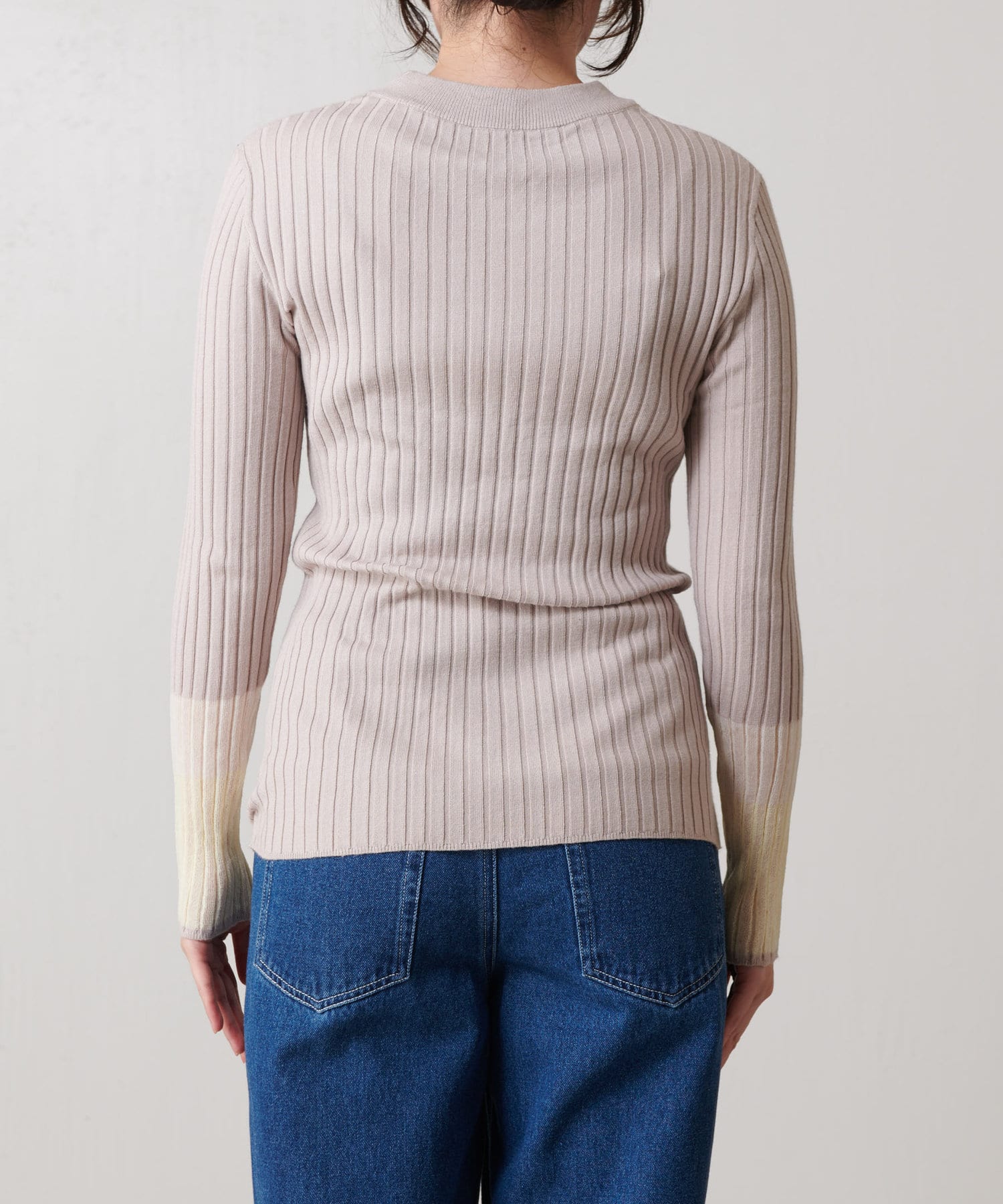 3配色袖シアーニット
