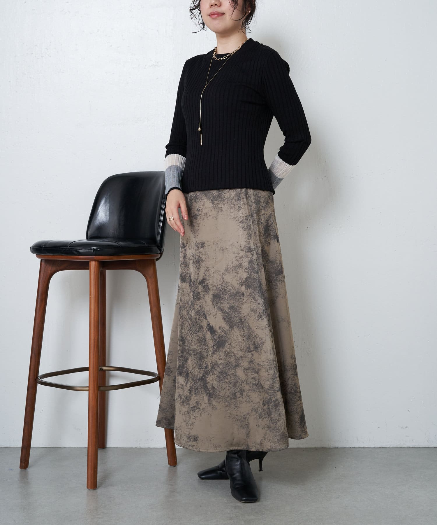 ・シンプルなボトムを合わせるだけでコーディネートを華やかに見せてくれるニットです。