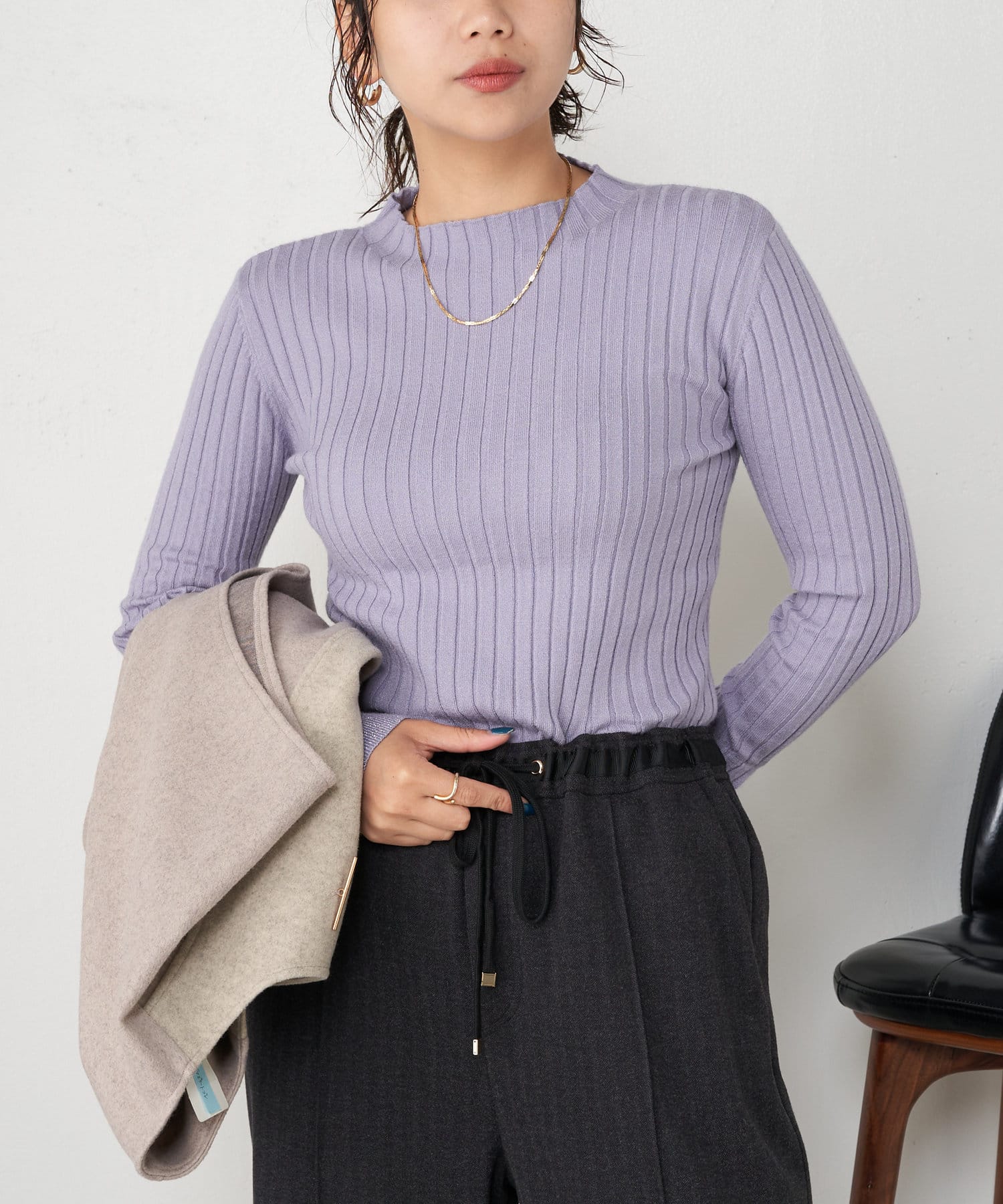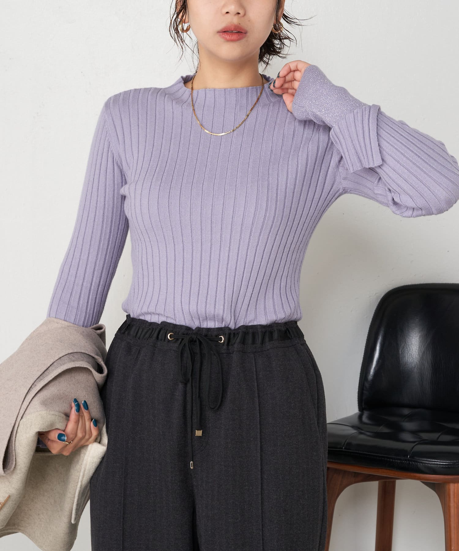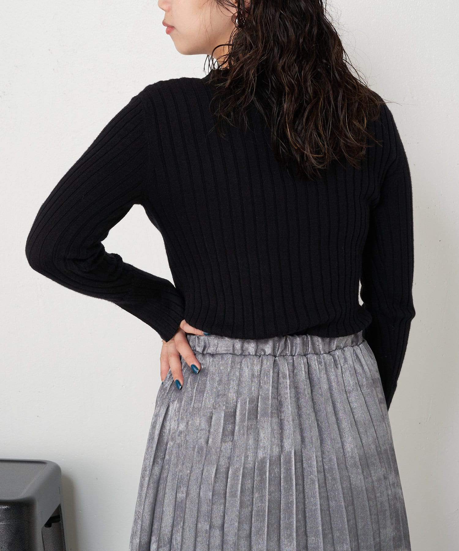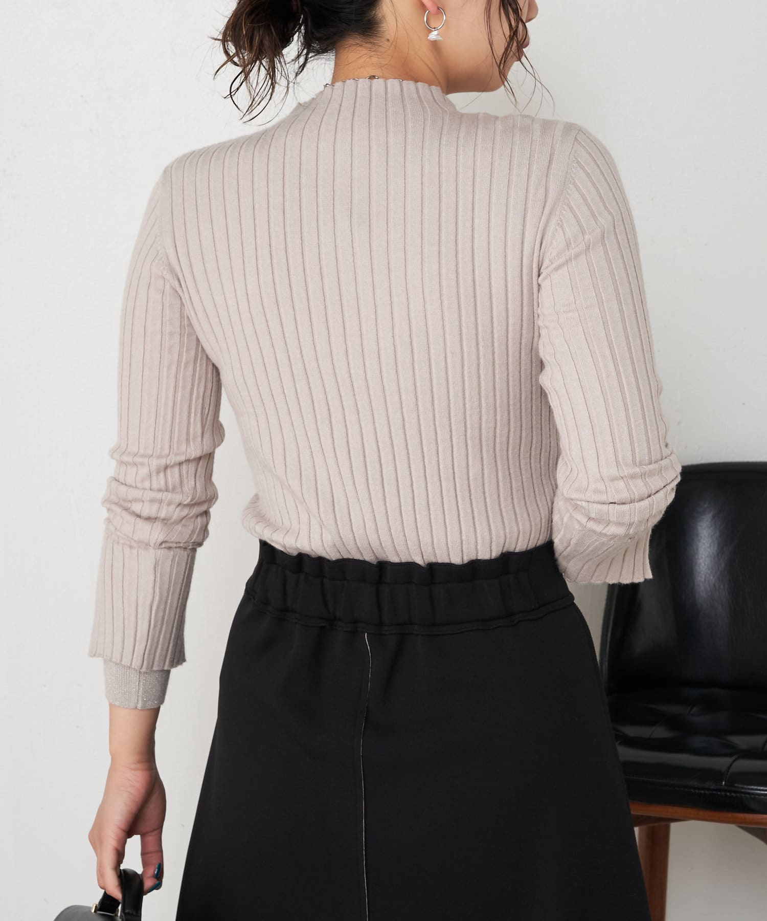 ・とっても柔らかく伸びやかなリブ素材で、編み目がIラインを強調し細見え効果も!