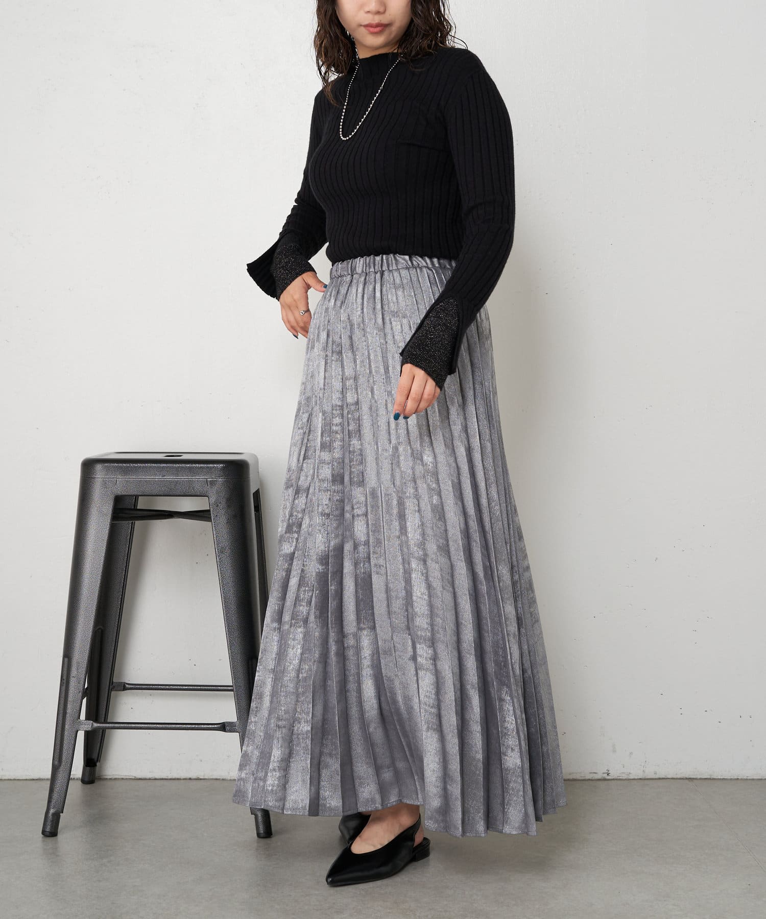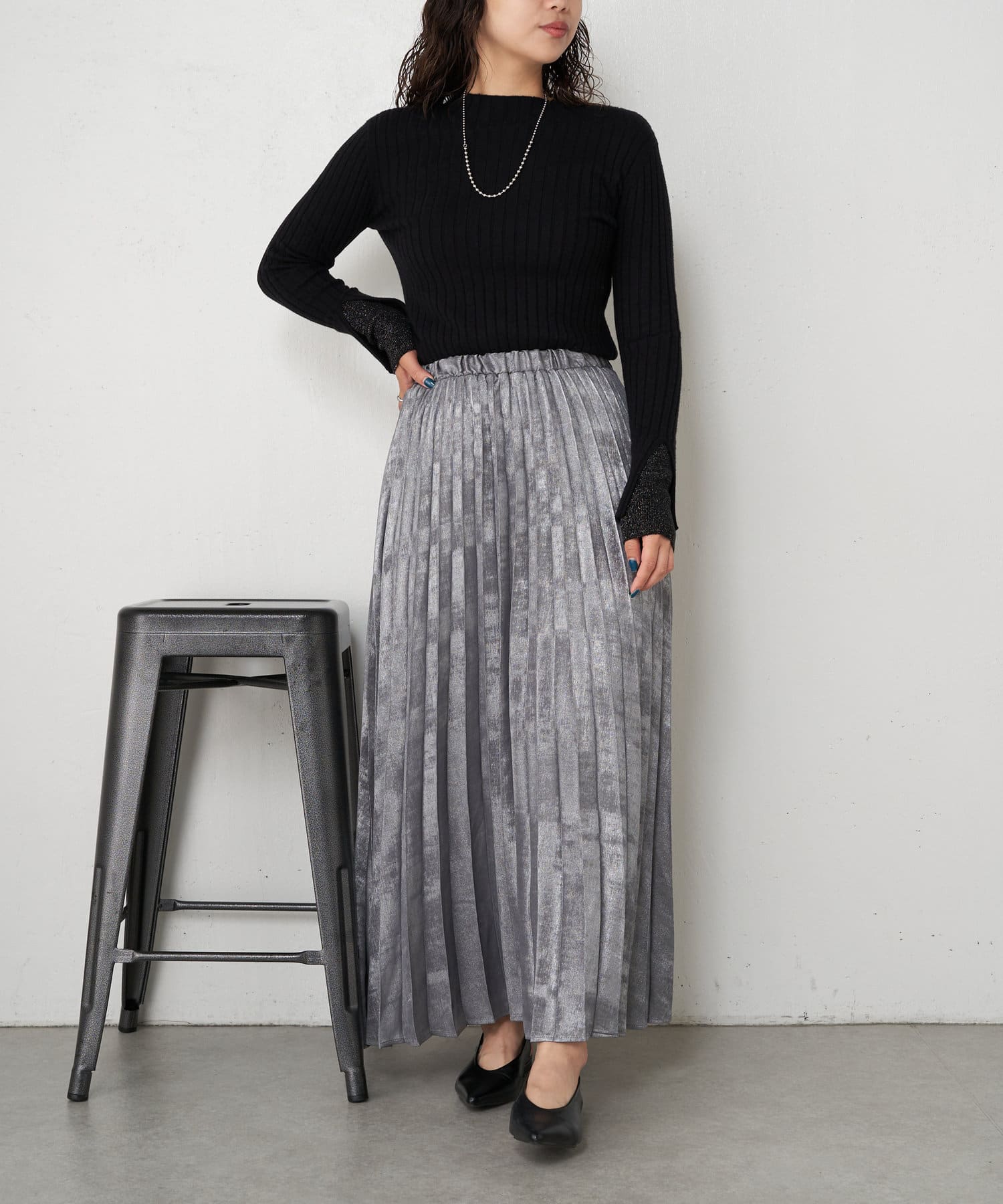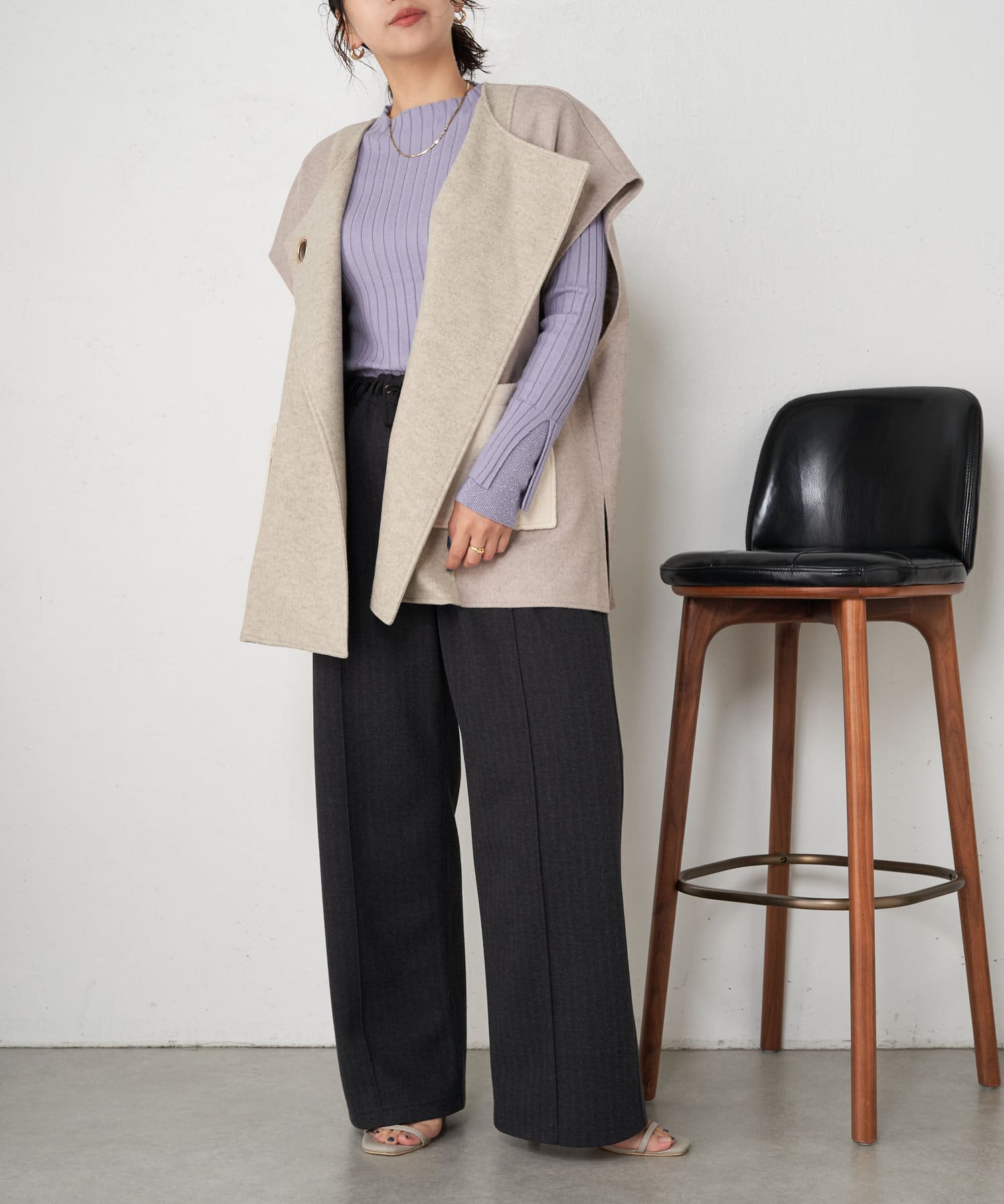 ・とっても柔らかく伸びやかなリブ素材で、編み目がIラインを強調し細見え効果も!