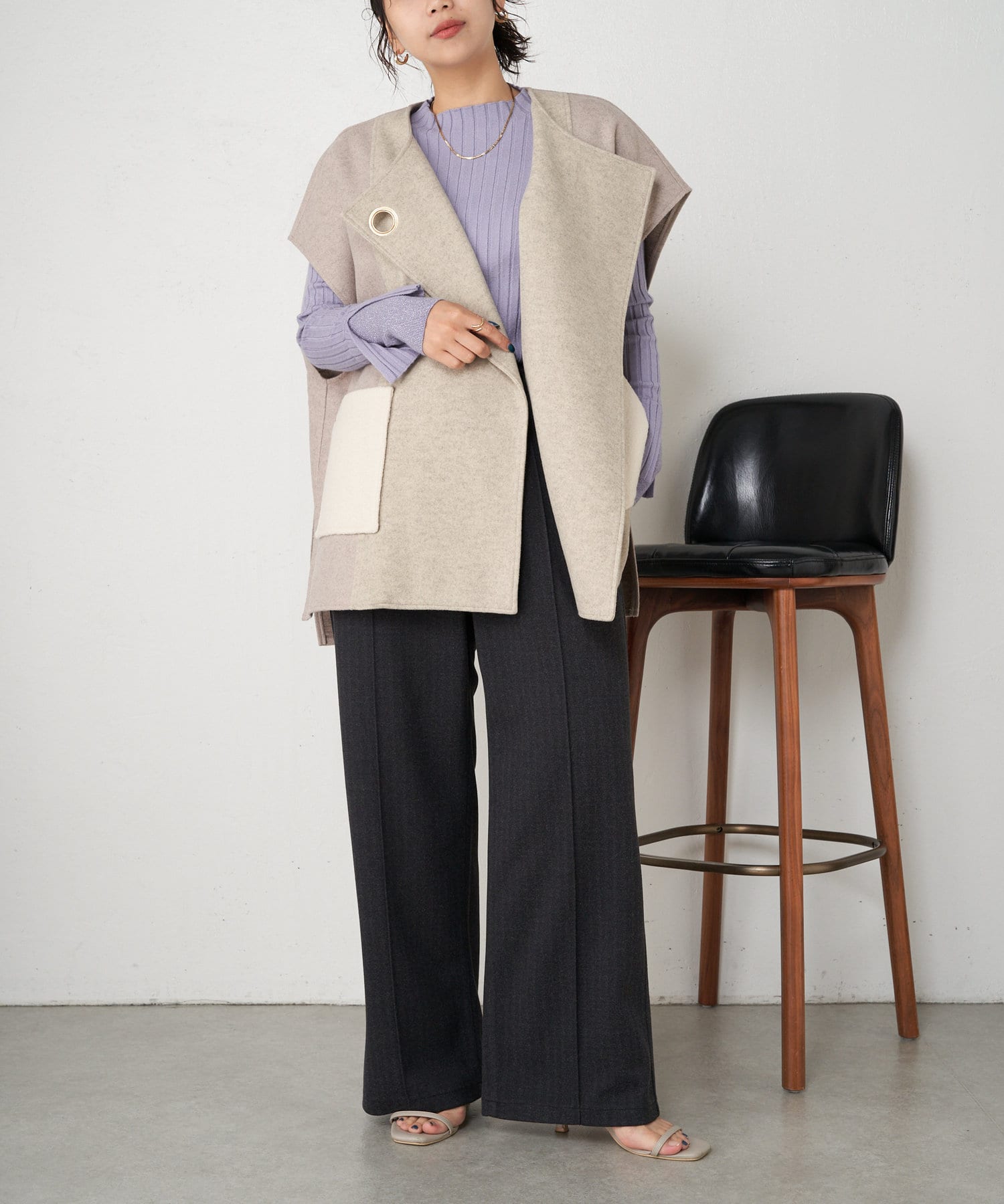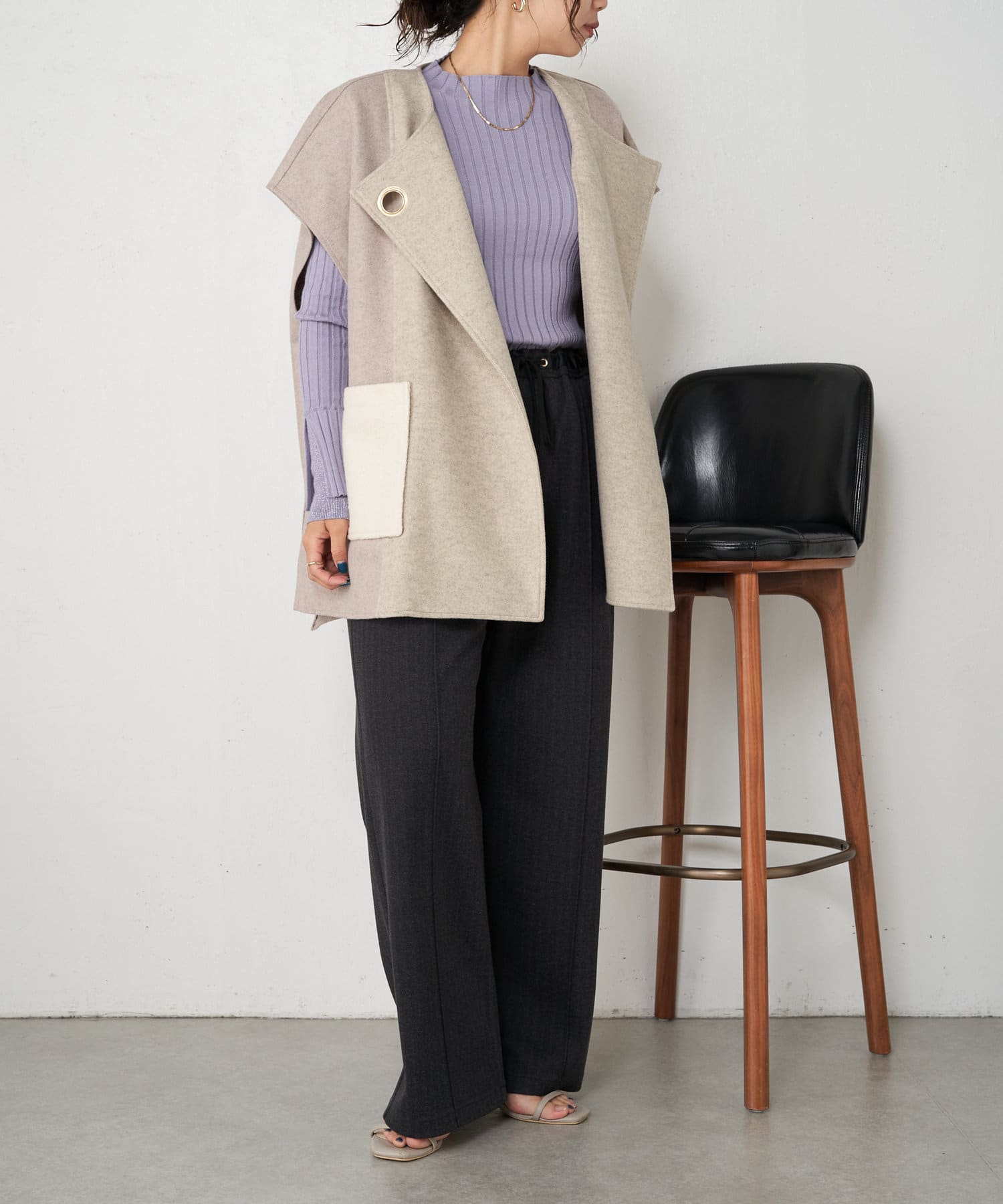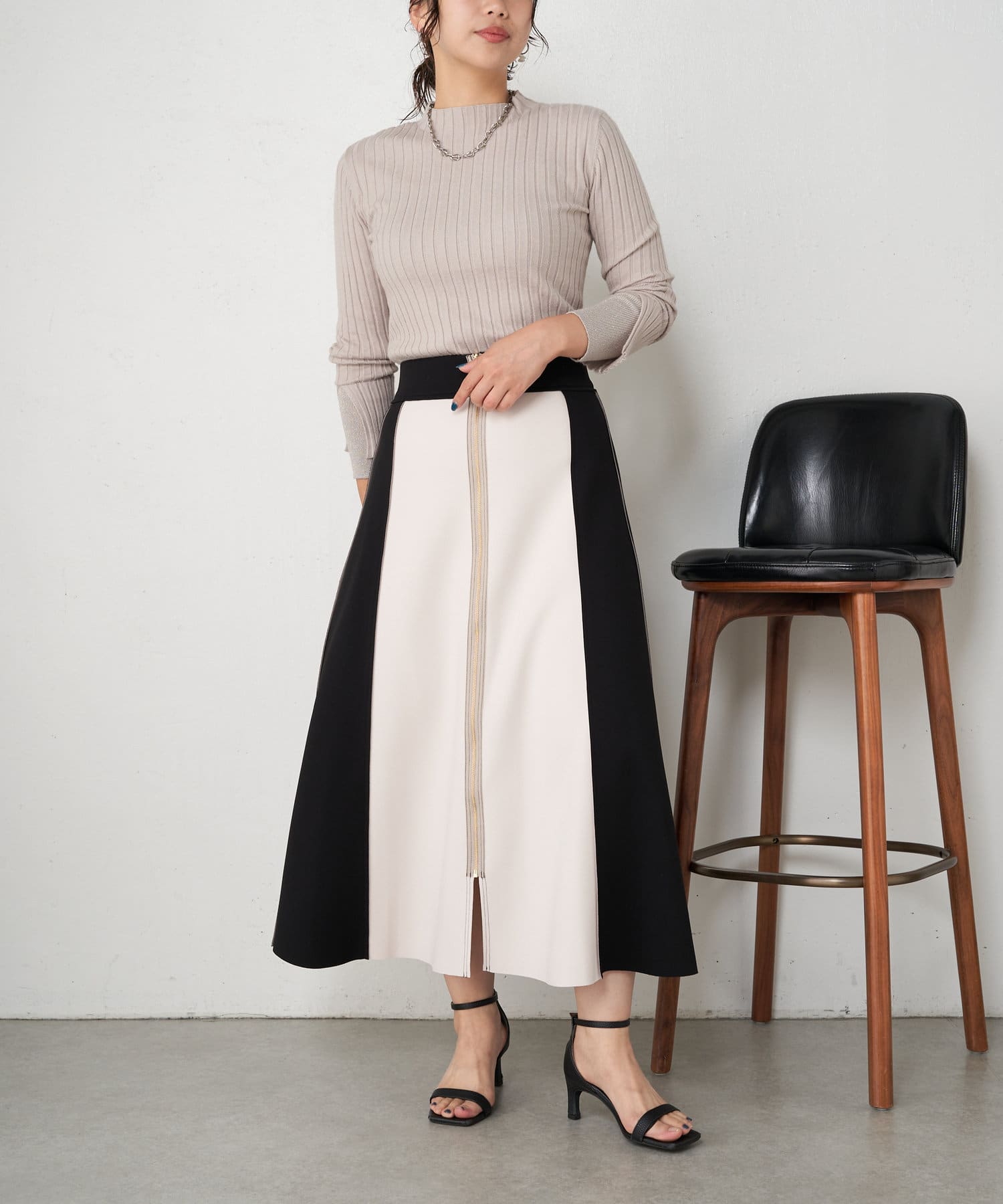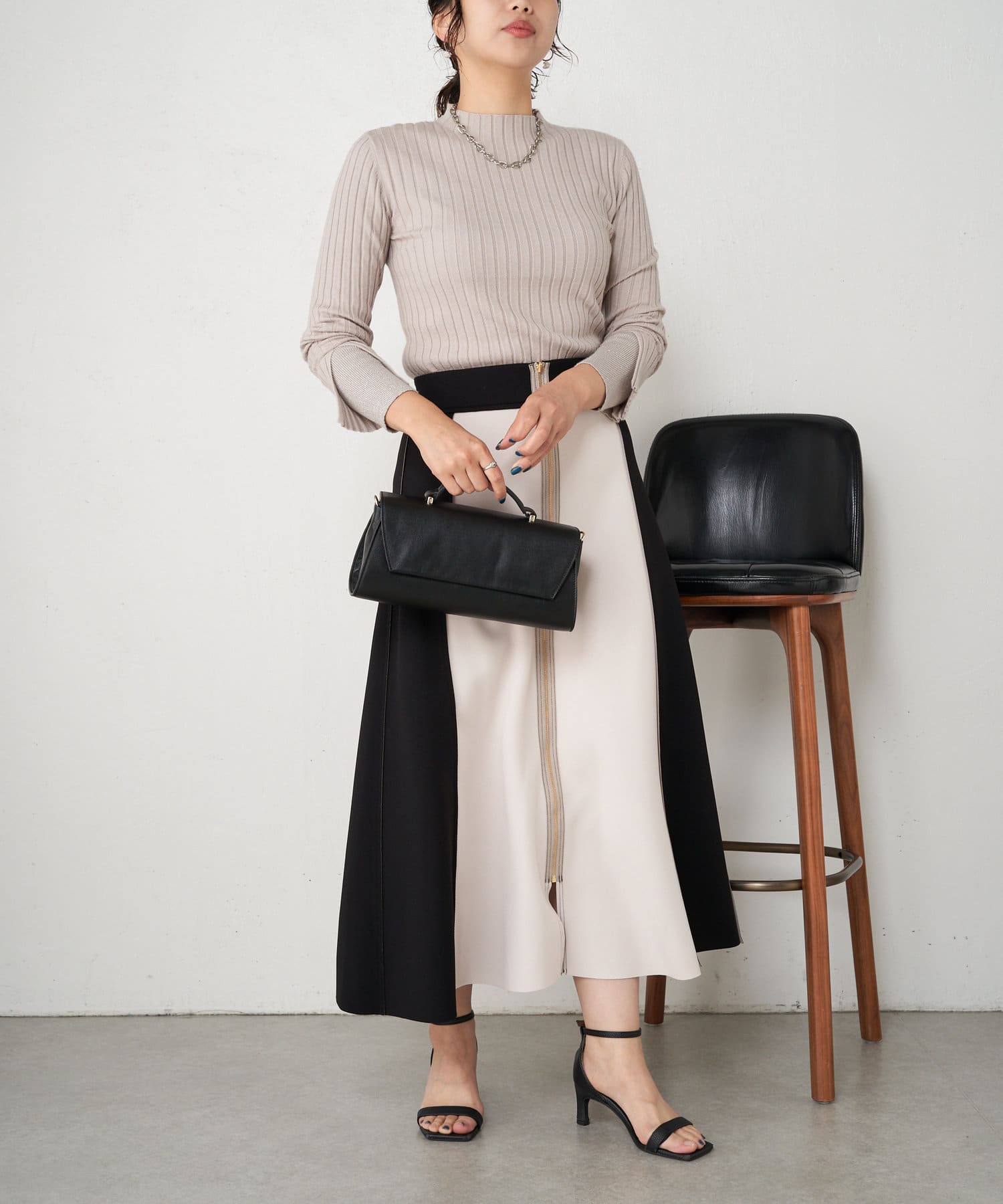 ・とっても柔らかく伸びやかなリブ素材で、編み目がIラインを強調し細見え効果も!