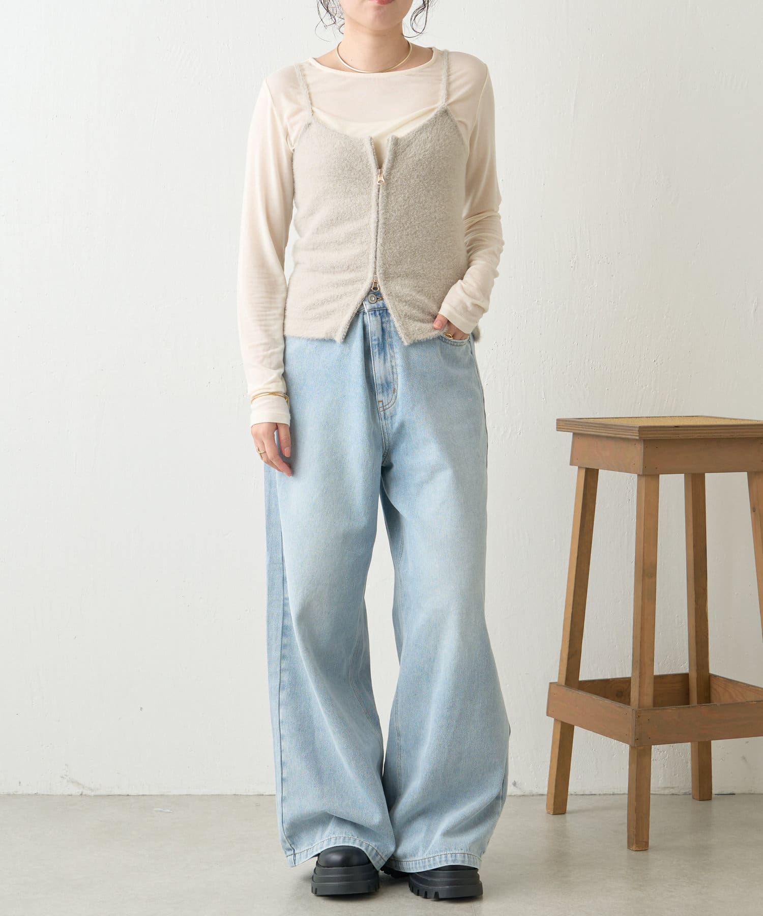 ・マンネリしやすい定番コーデも、ビスチェを重ねれば今っぽくアップデートできます。