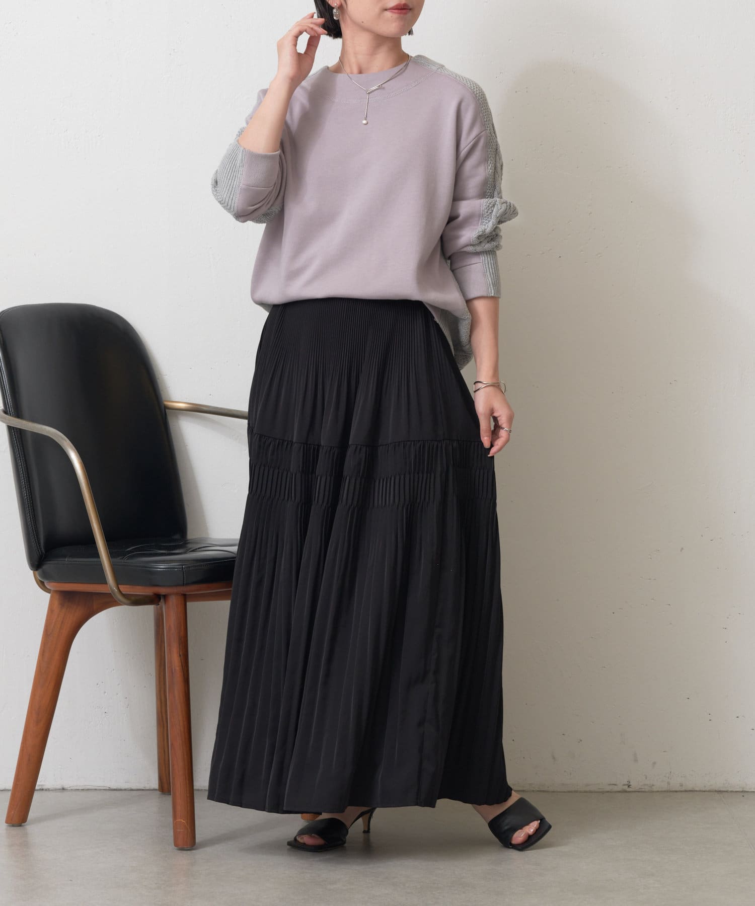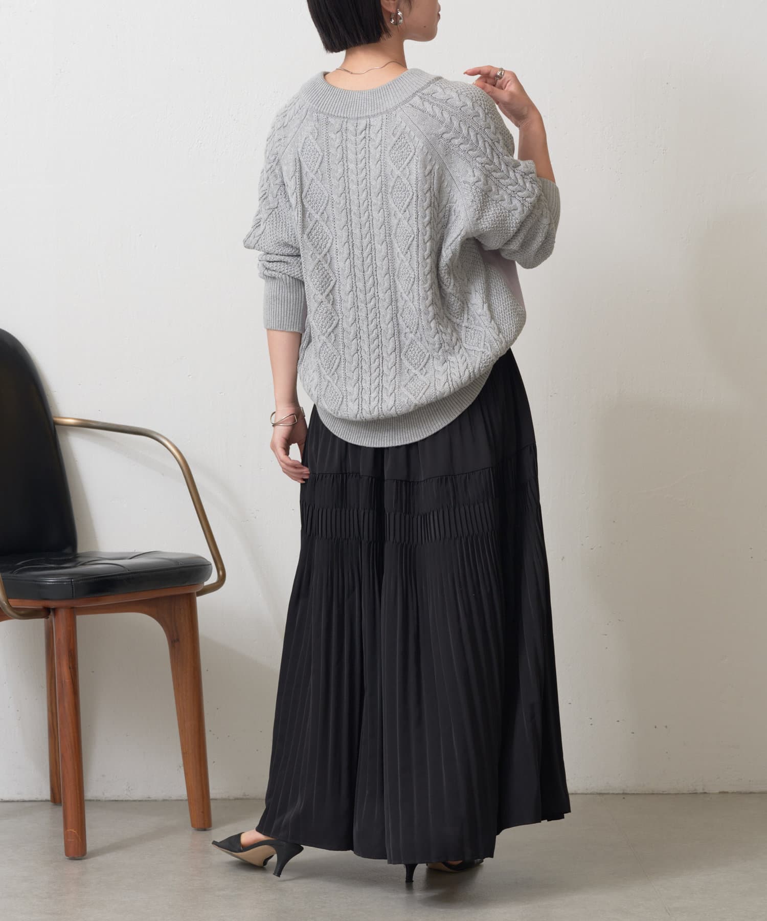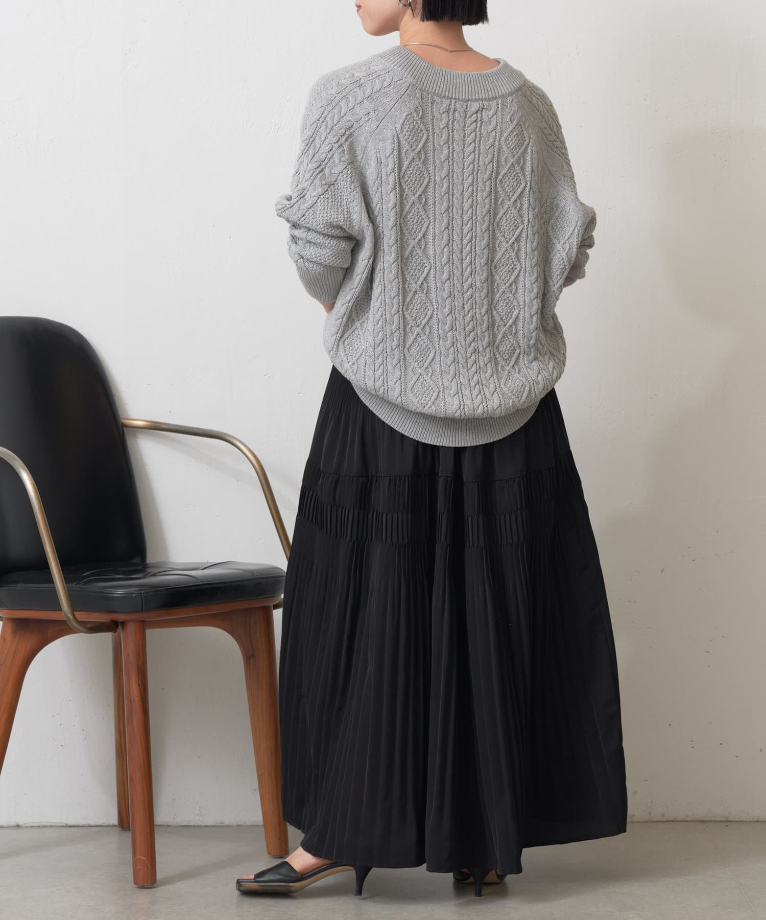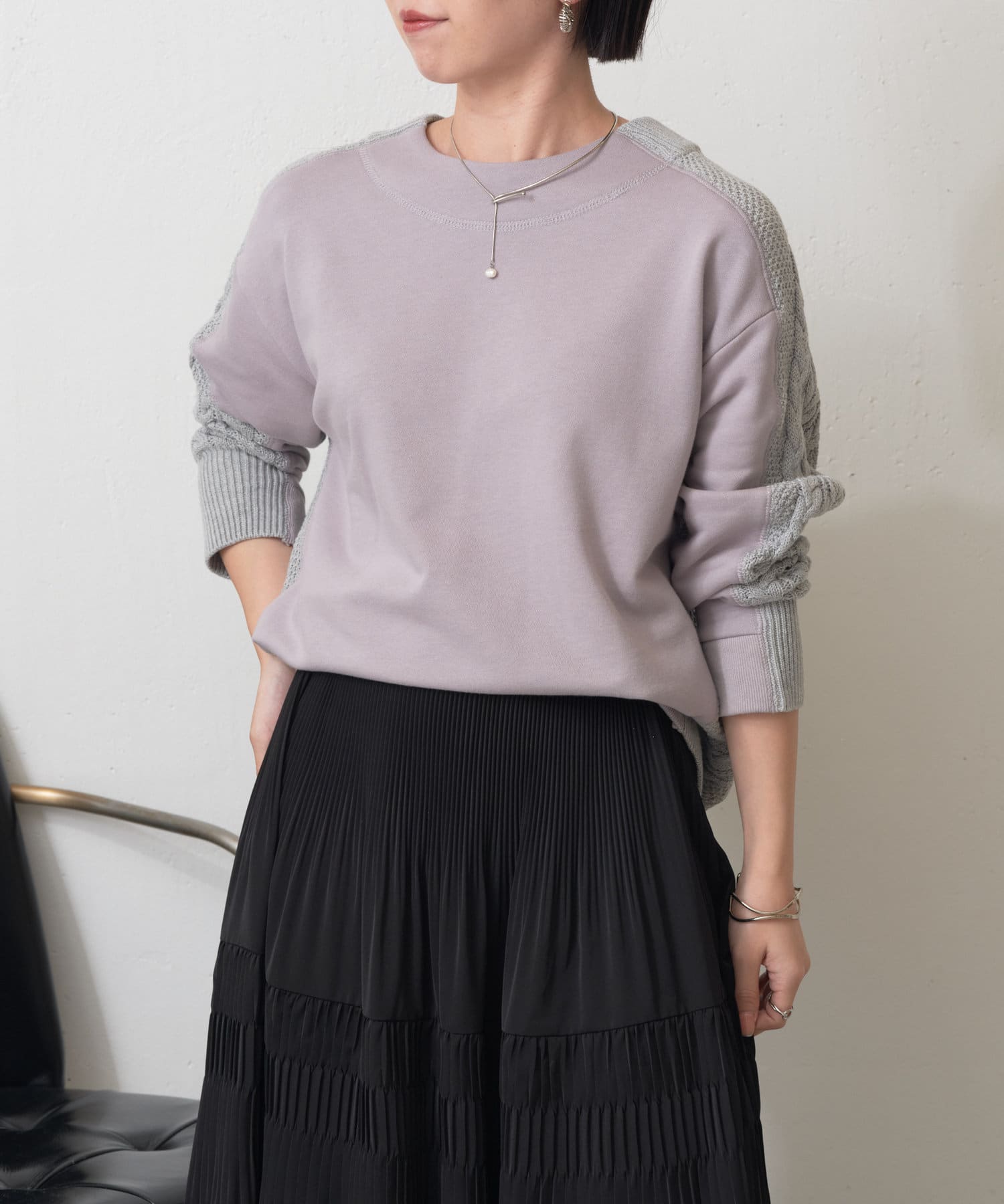 ・ケーブルニットとドッキングされた前後の大胆な切替が、他にはない一枚。