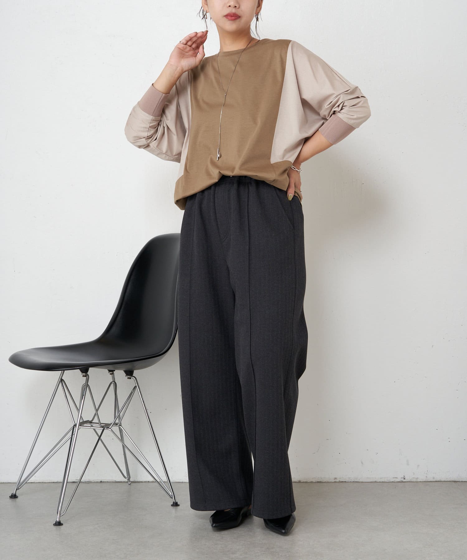 ・ワイドパンツや、ロングスカートとも相性抜群のトップス。