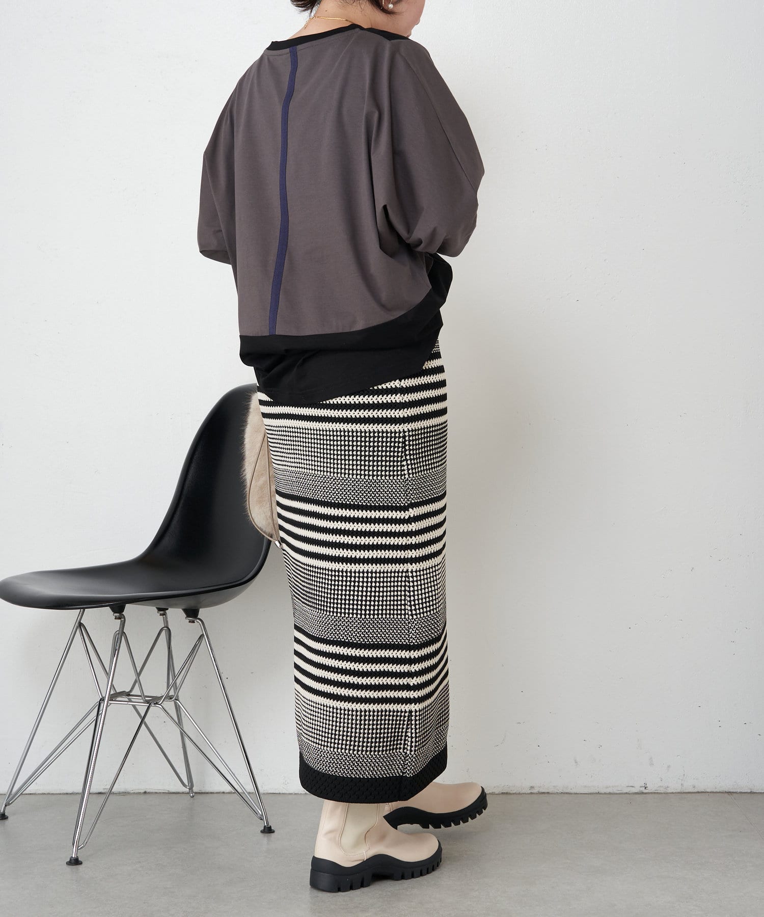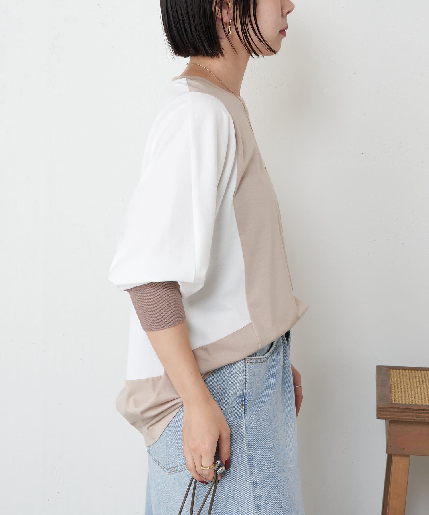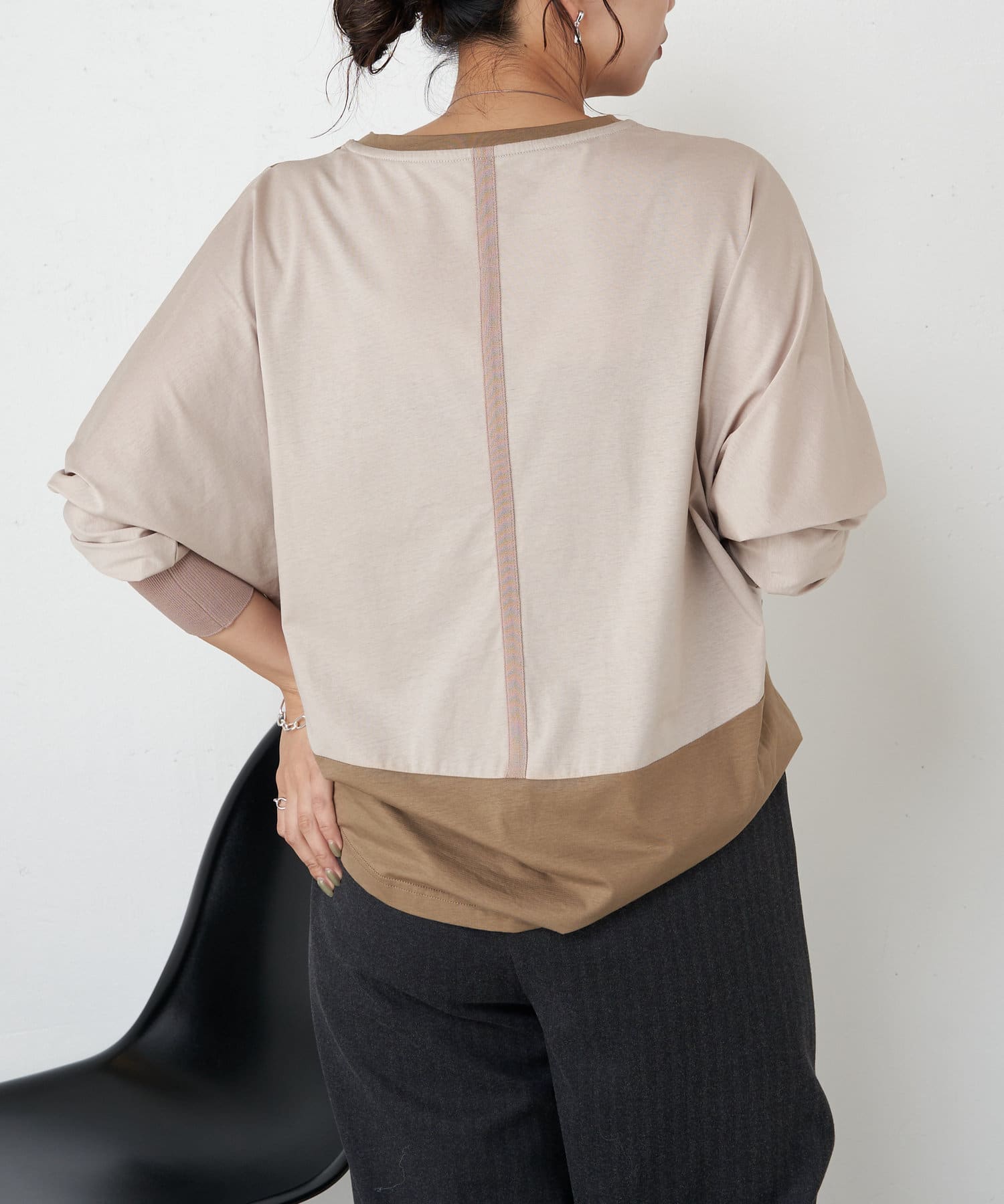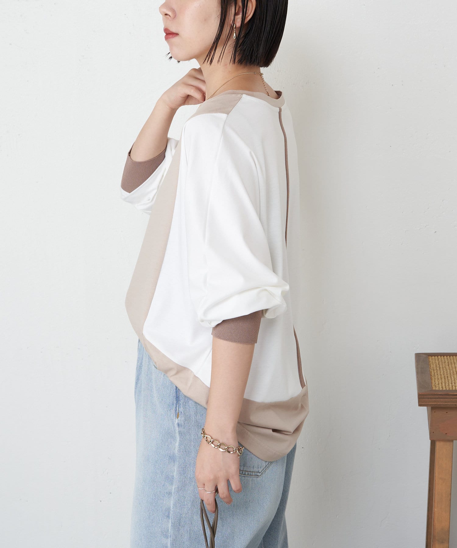 ・配色デザインとバックのラインがポイントのシンプル大人のカットソー。