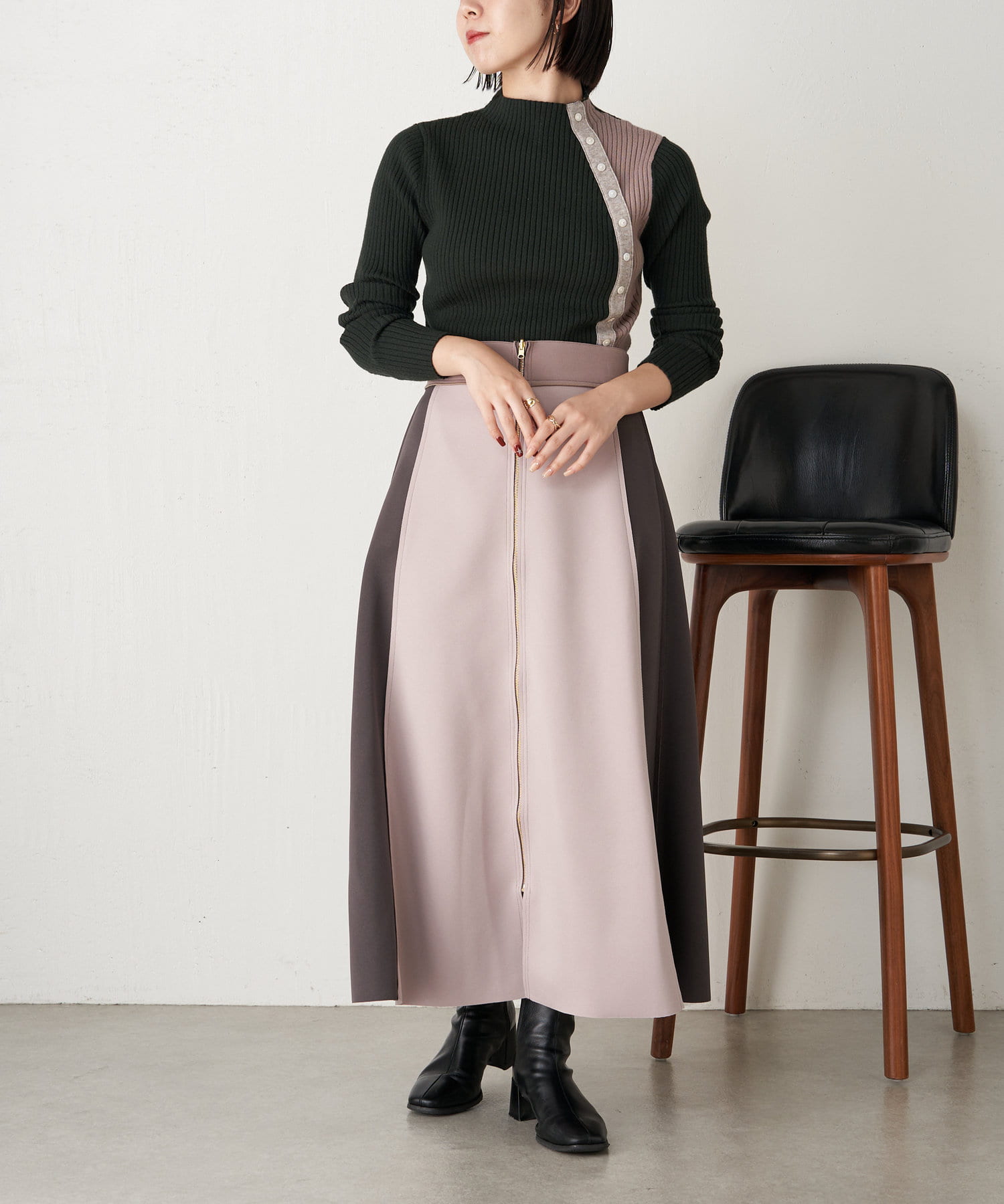 ・フロントのジップデザインがポイントにコーディネートを華やかな印象に仕上げてくれるタイトスカート。