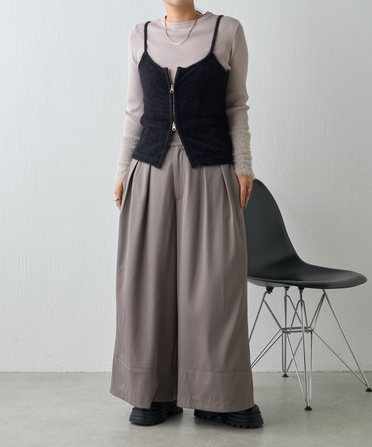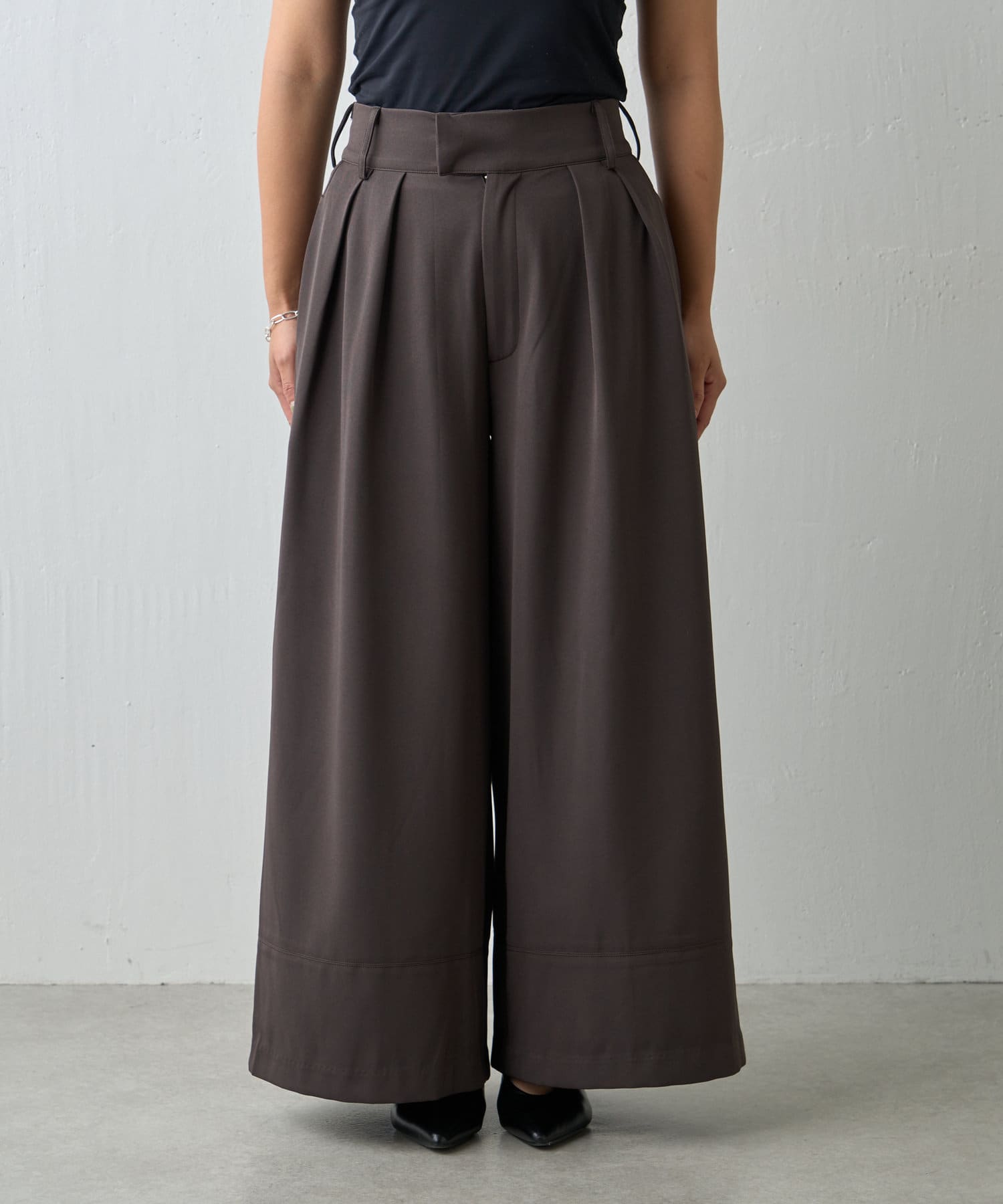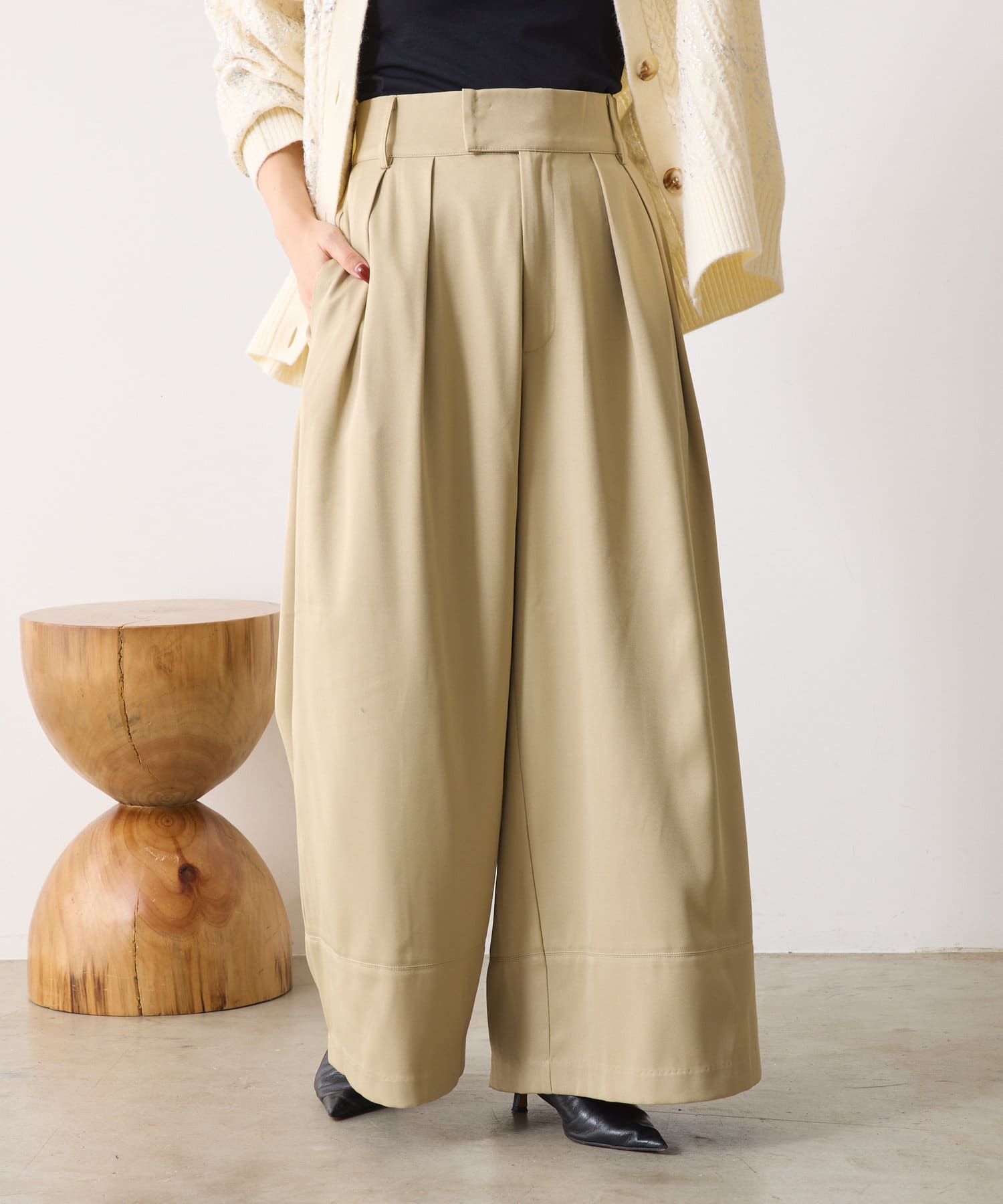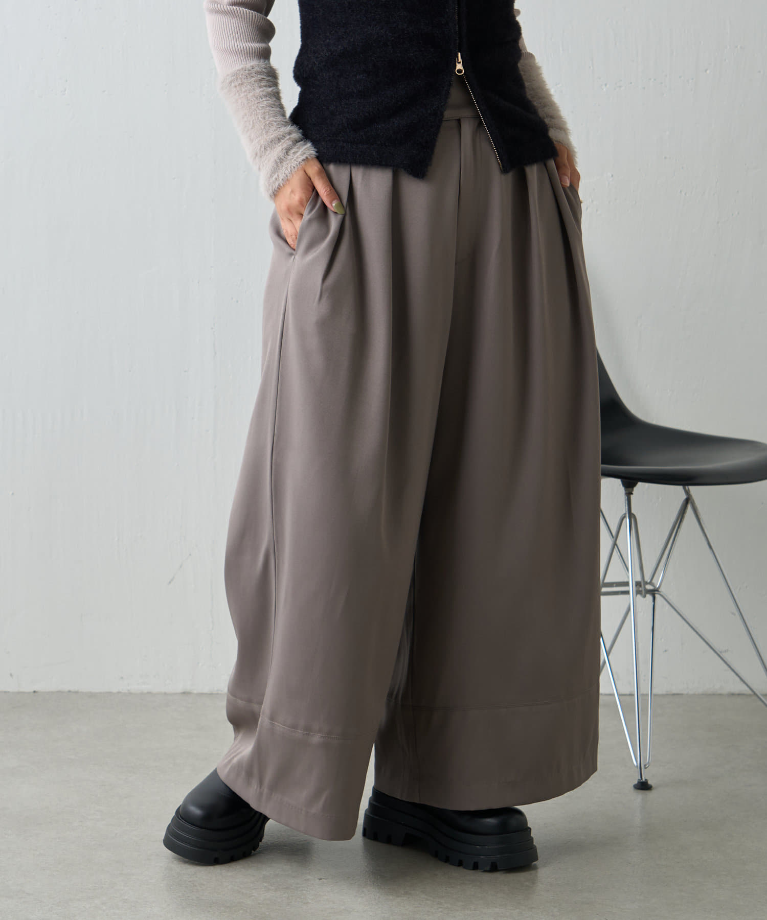 ・タックがはいったトレンド感のあるワイドパンツ。ルーズなシルエットでこなれ感も◎