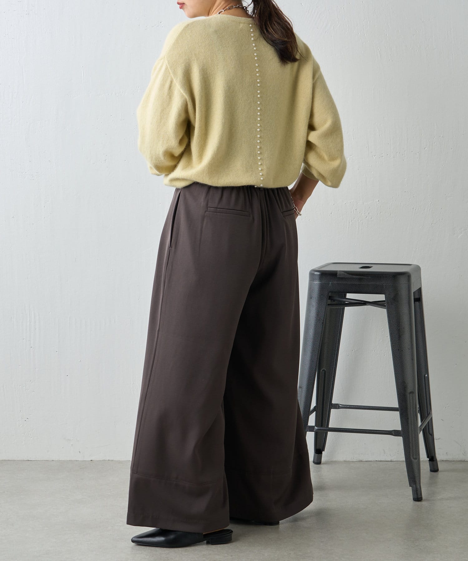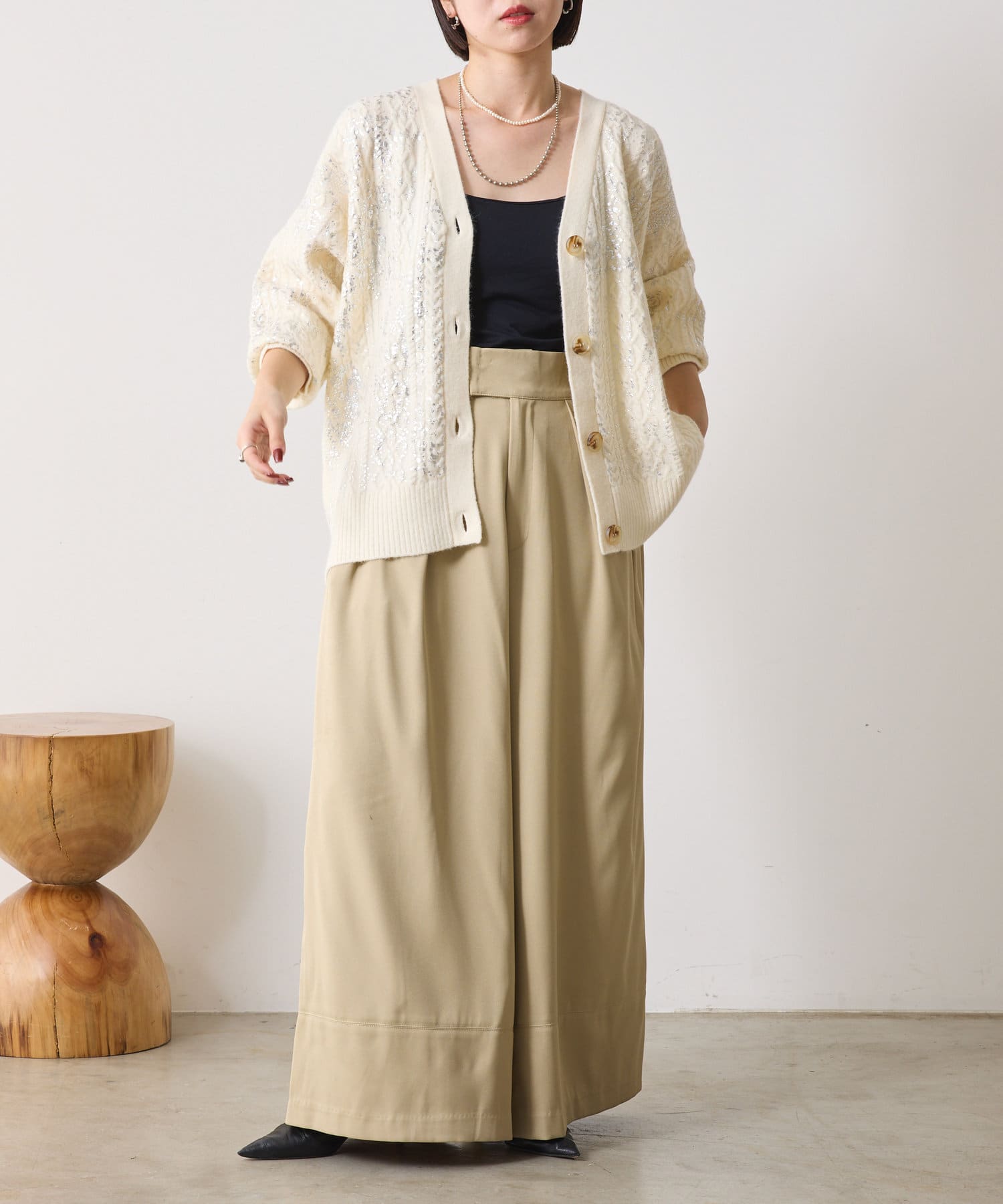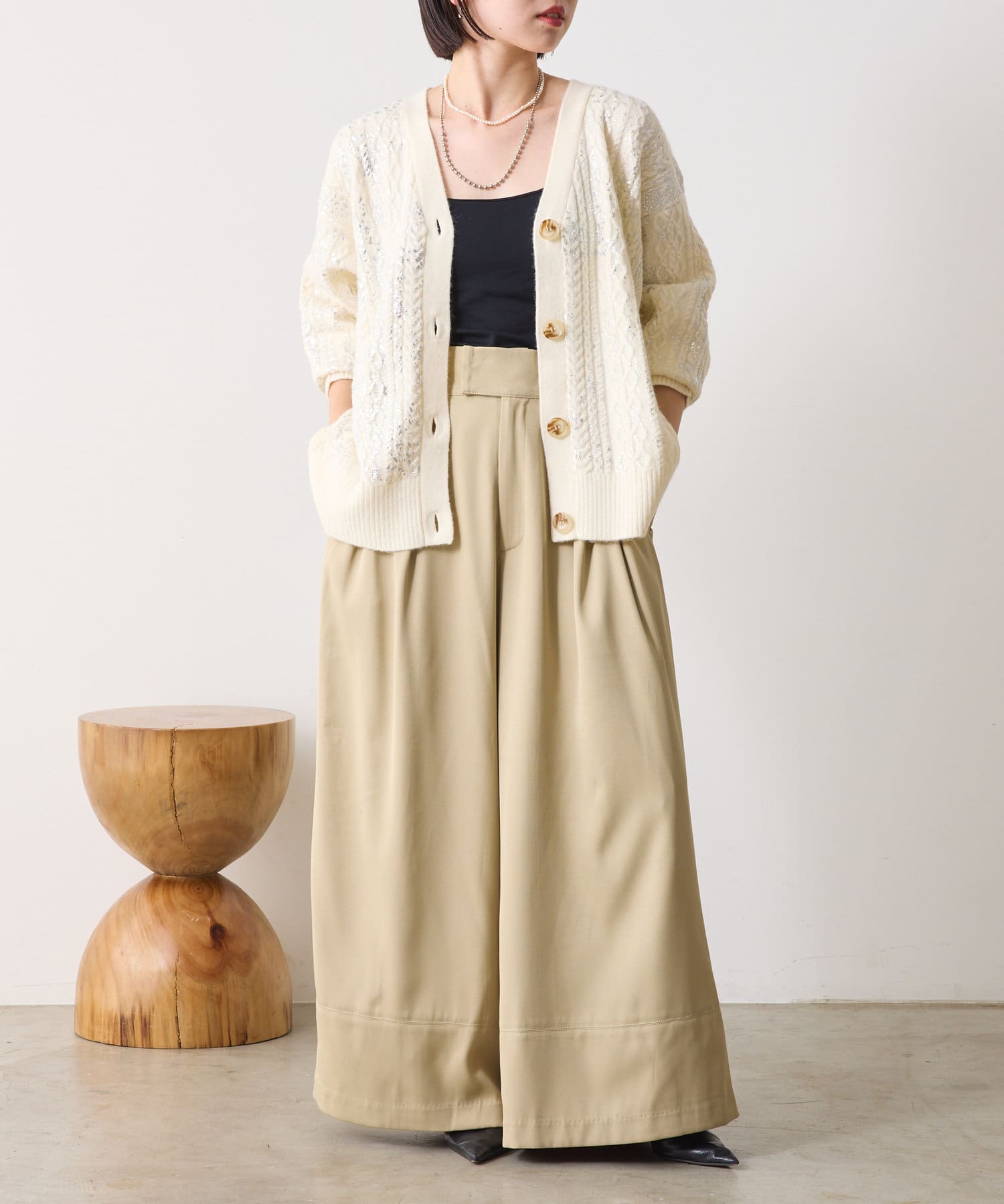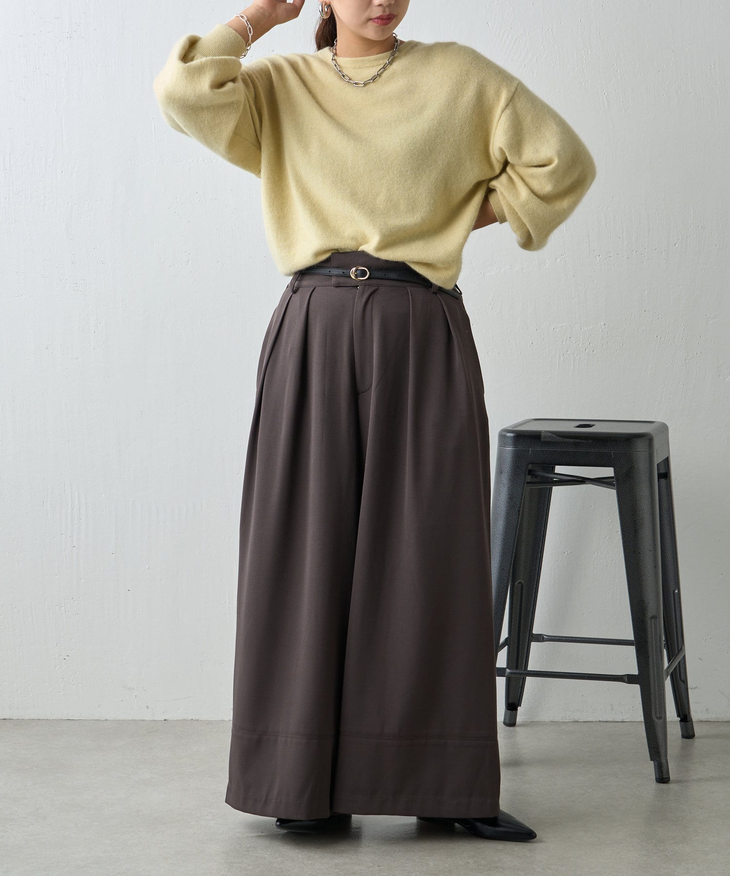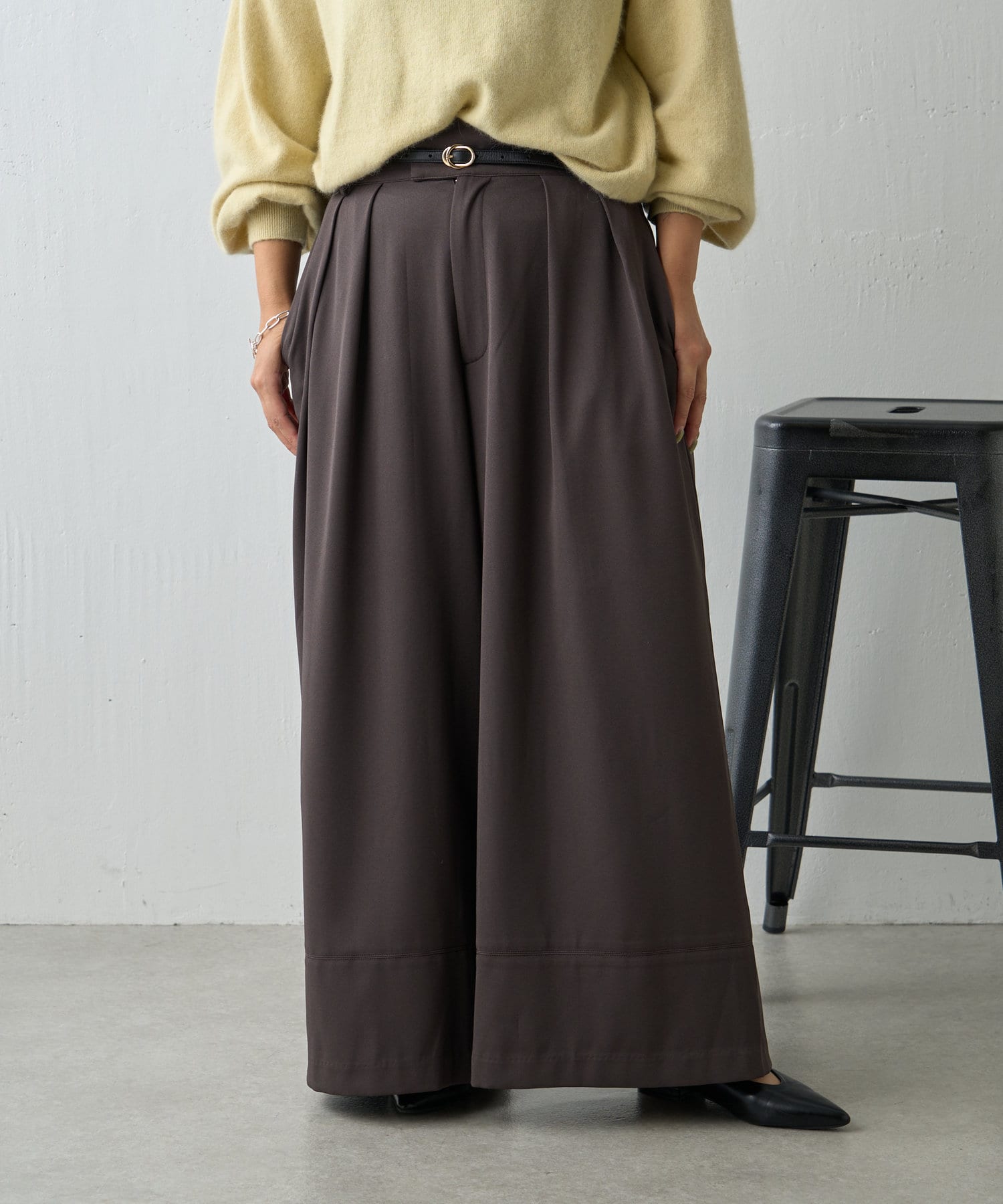 ・タックがはいったトレンド感のあるワイドパンツ。ルーズなシルエットでこなれ感も◎