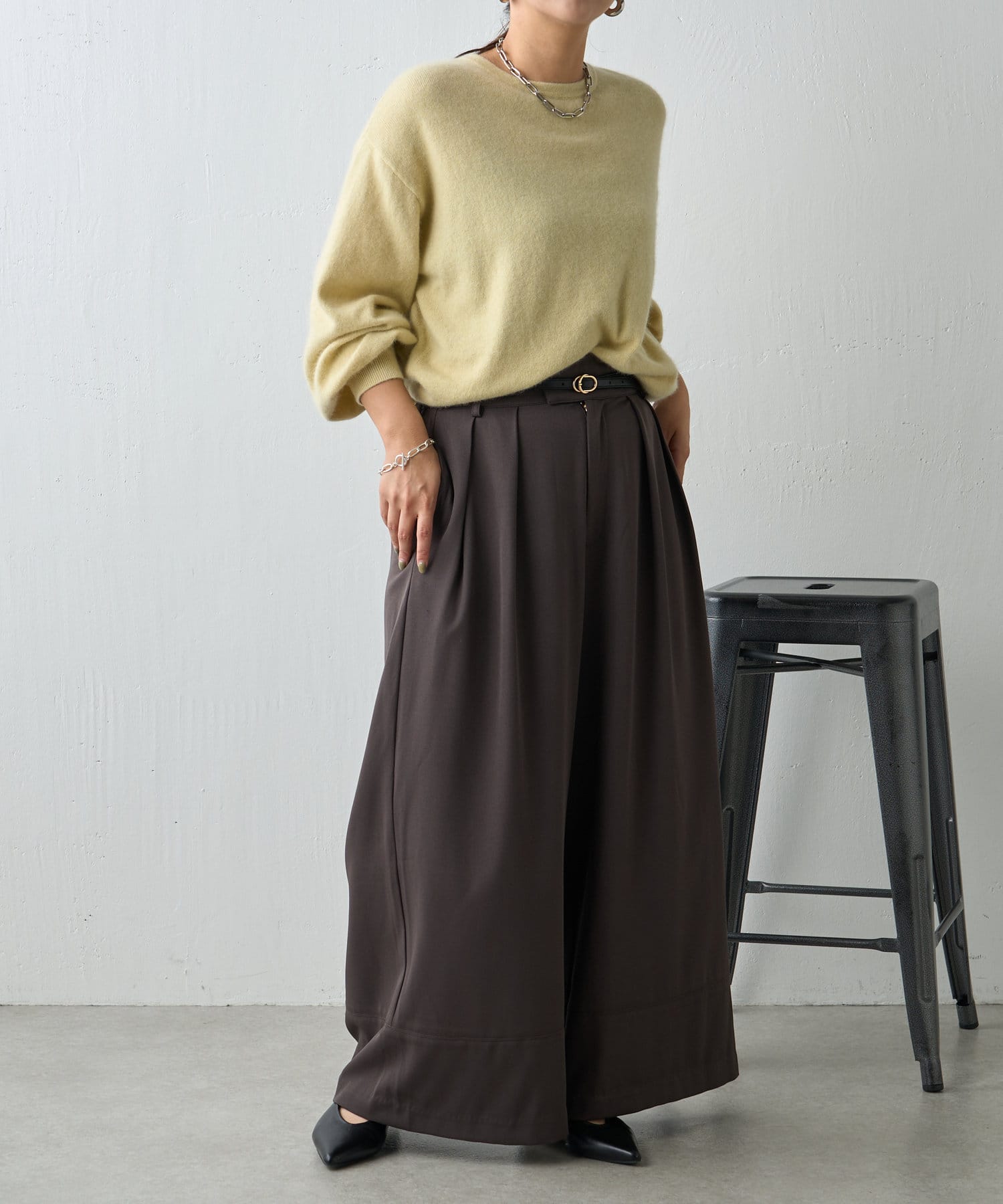 ・裾の分量感がありながら、腰回りはスッキリみえシルエットです。