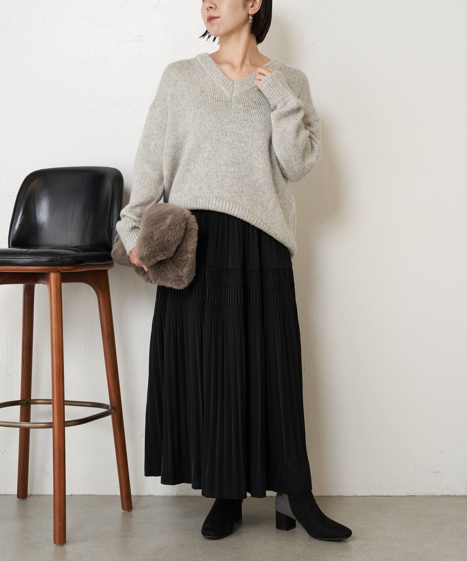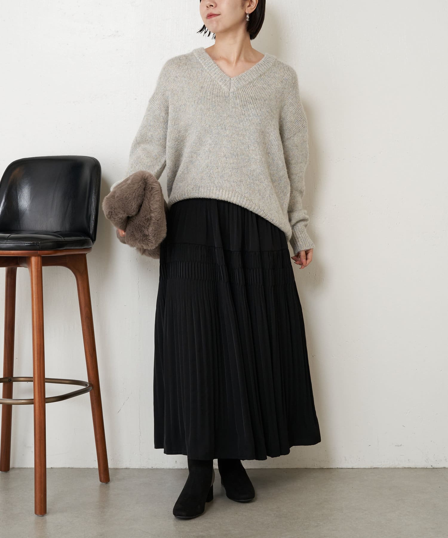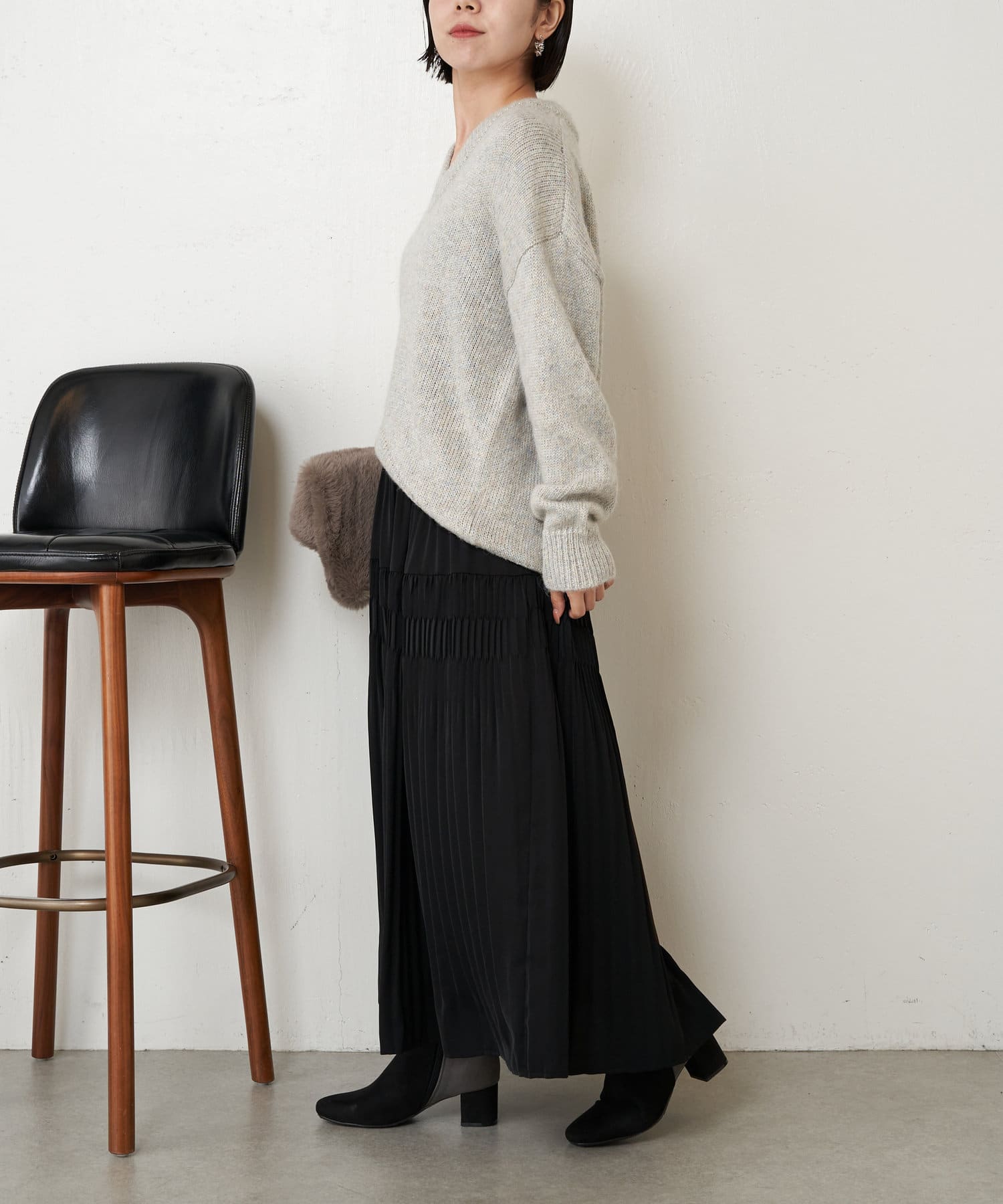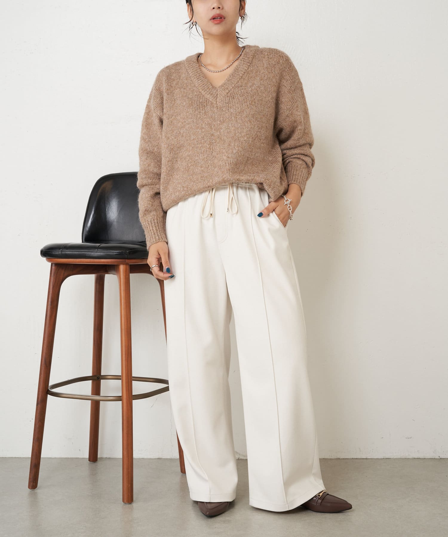 ・程よく開いた首元が自然な抜け感を演出してくれます。