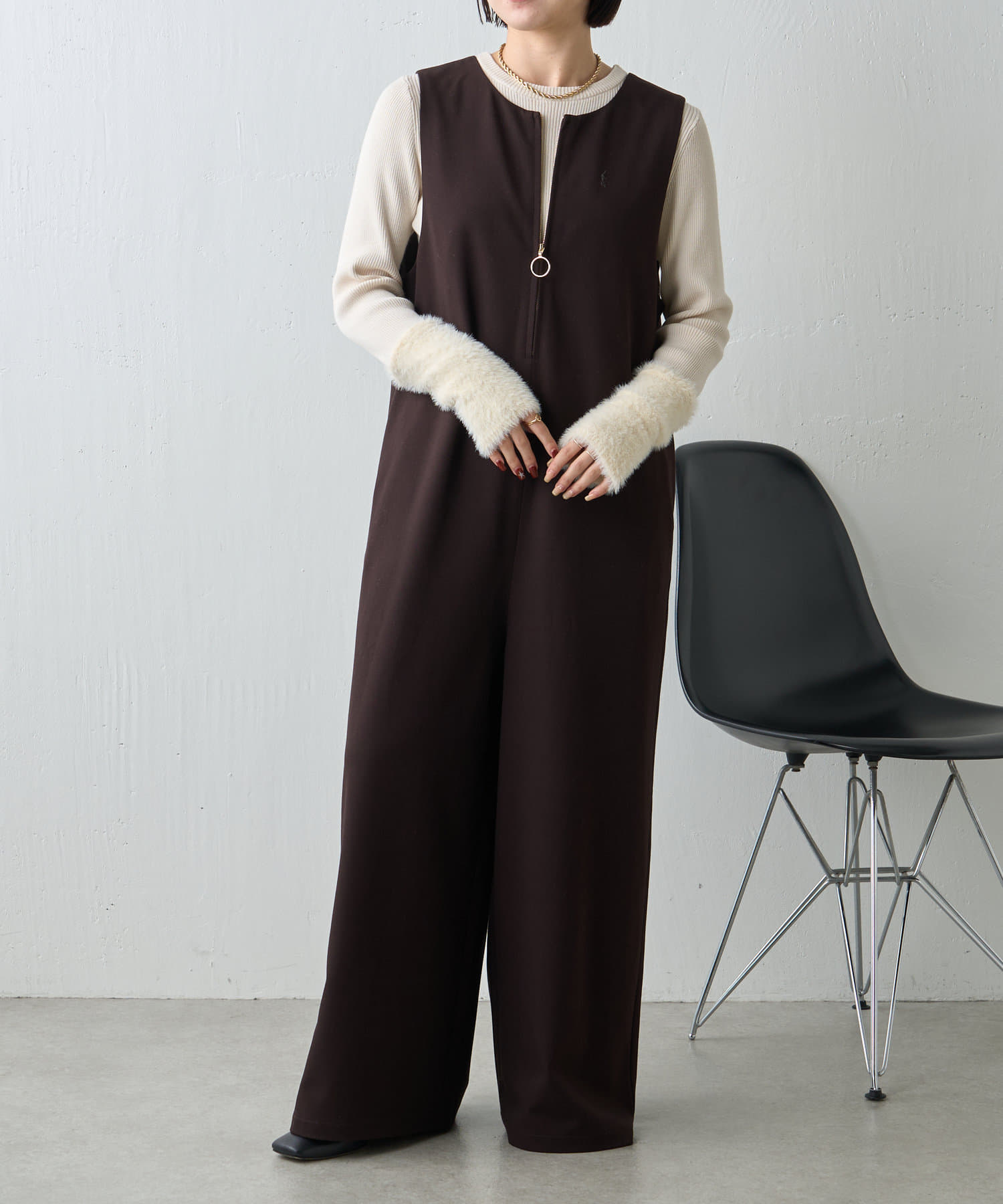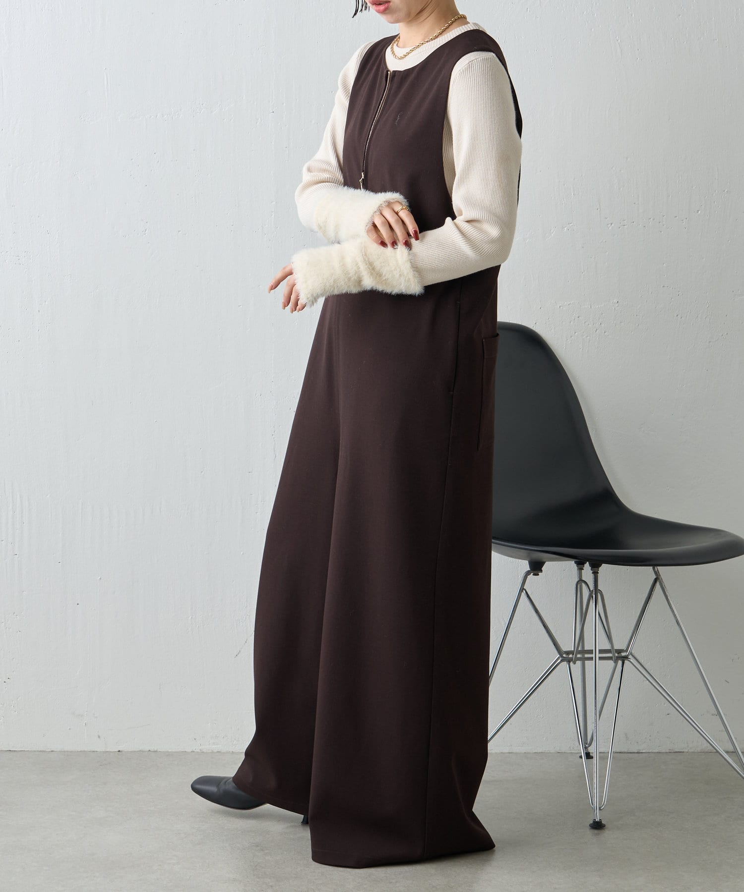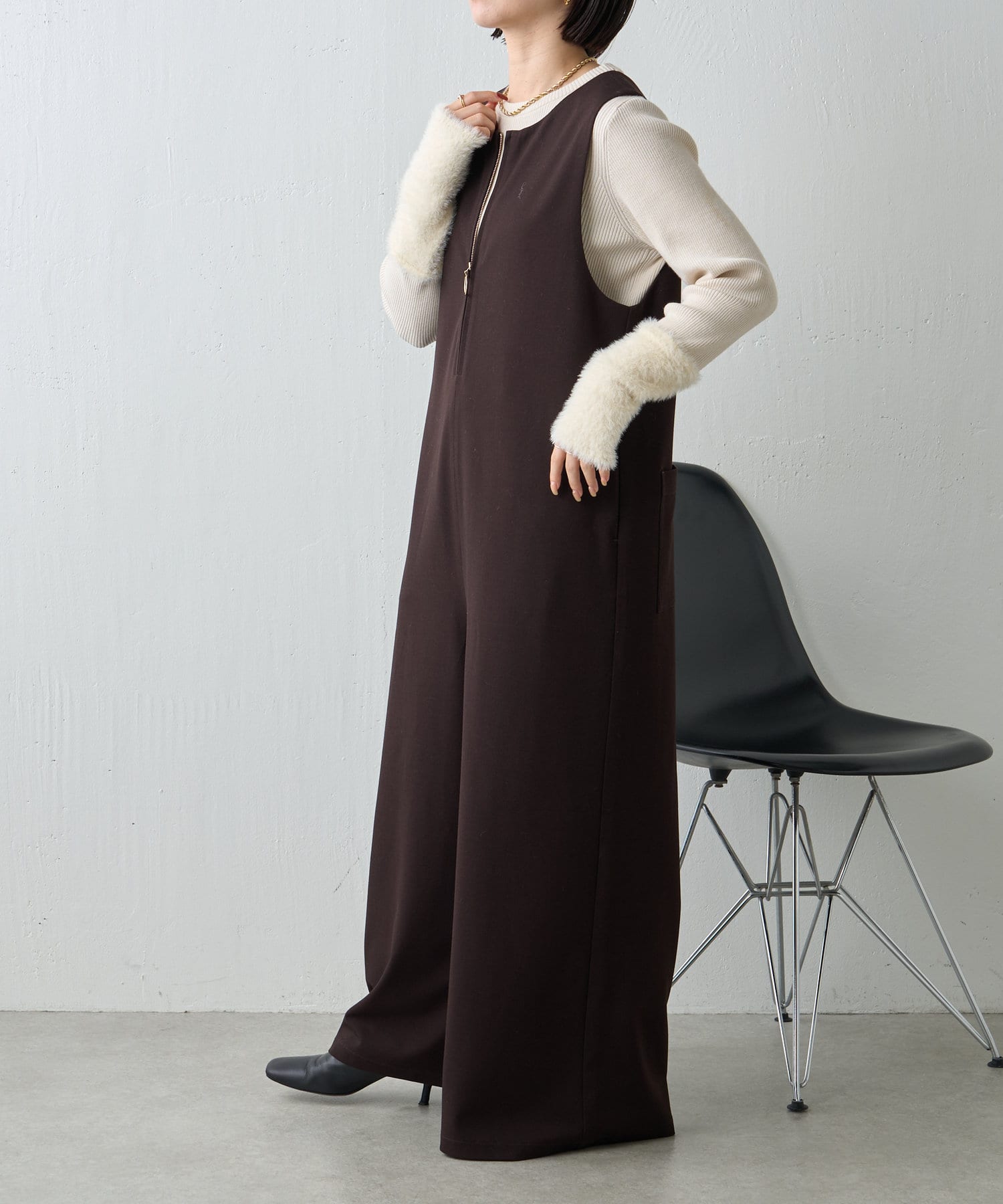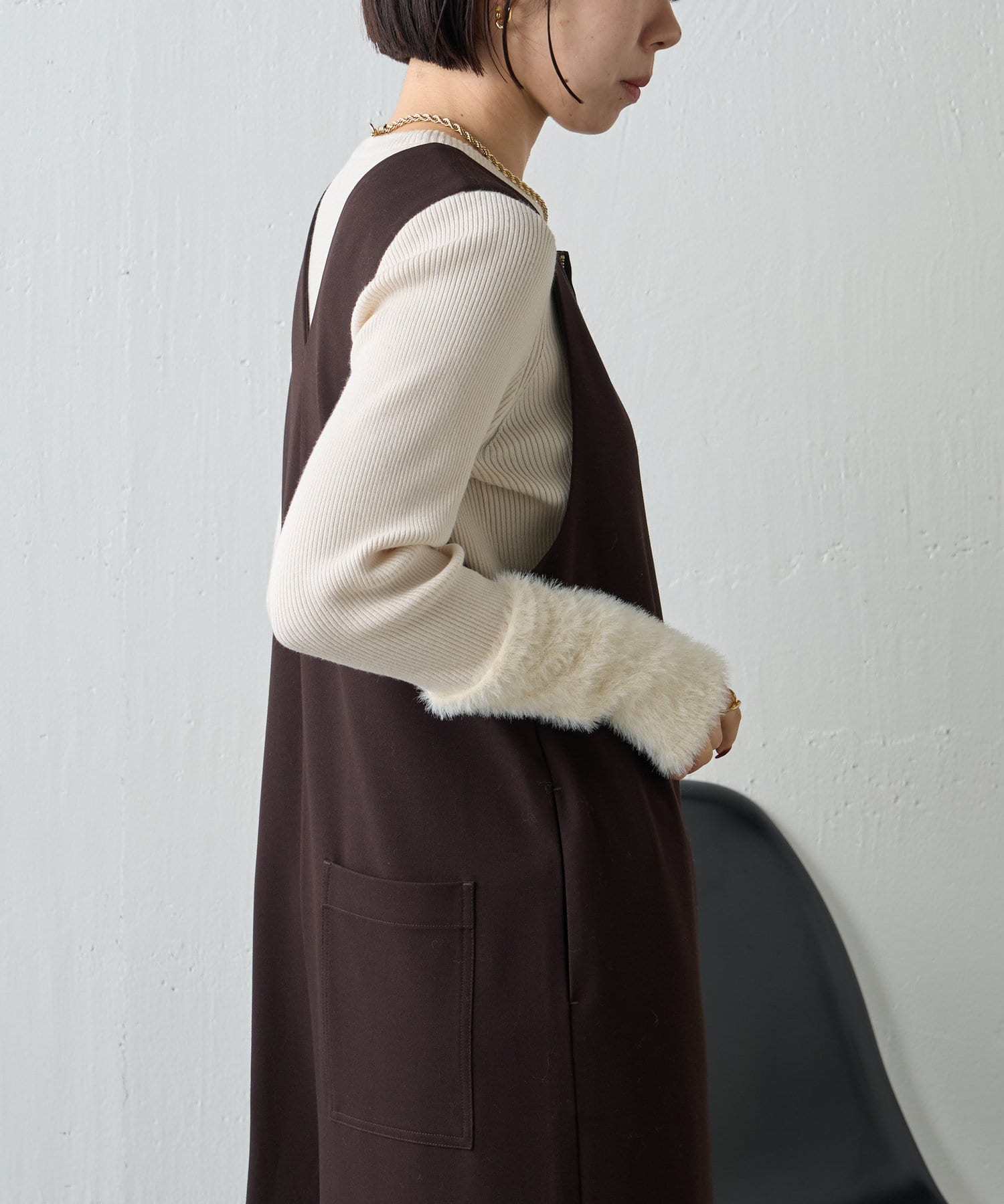・袖の素材感を活かして、ジャンスカやオールインワンのインナーなど幅広くスタイリングを楽しめるのも魅力の1枚です。