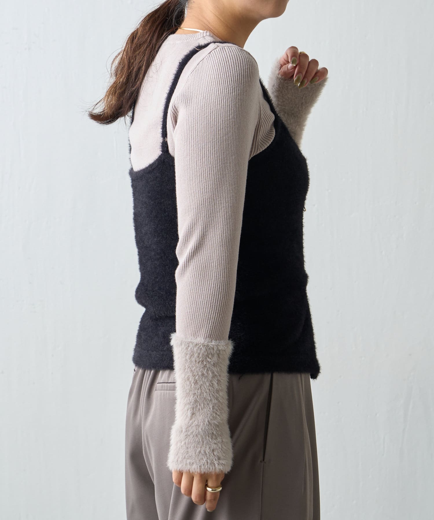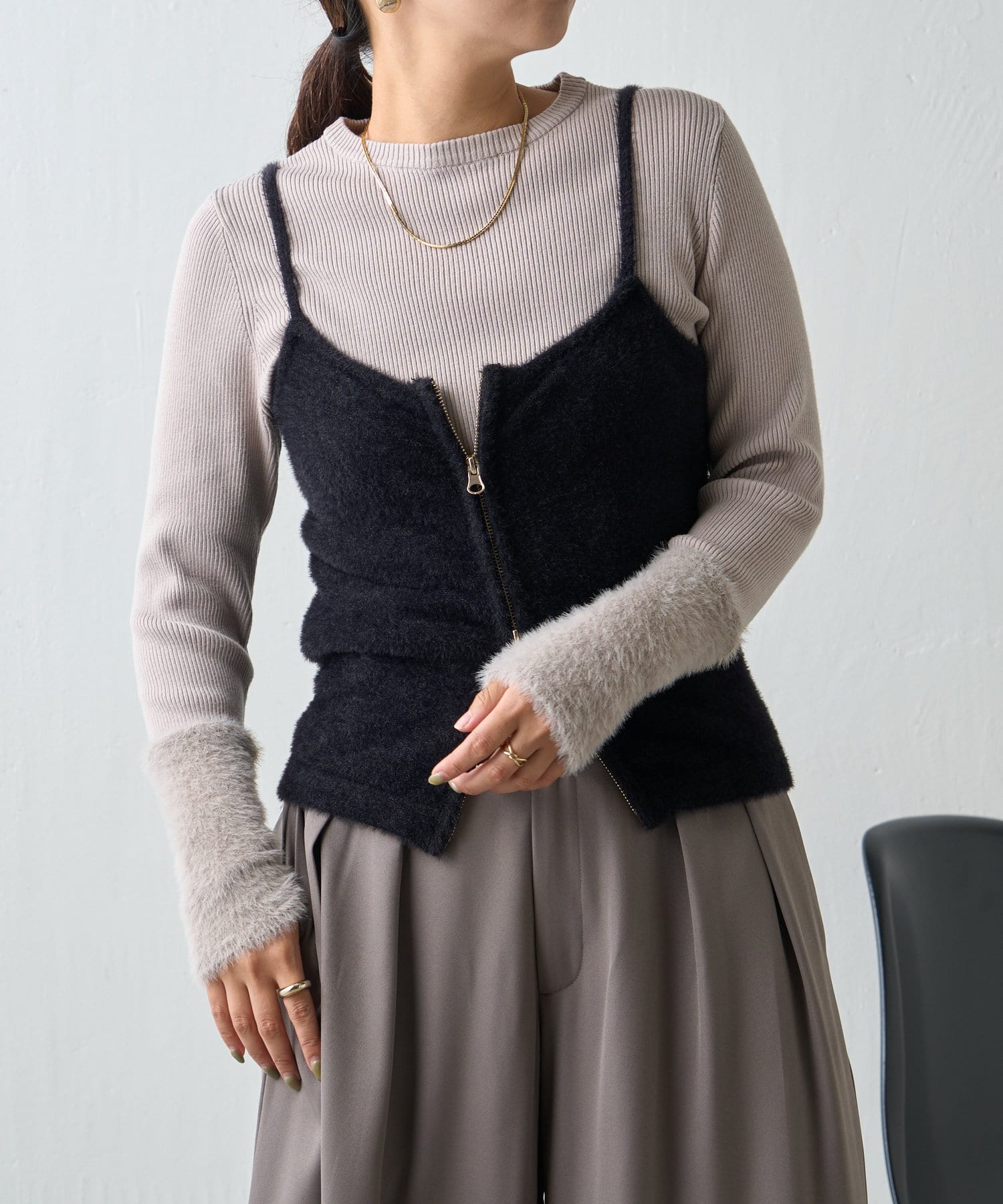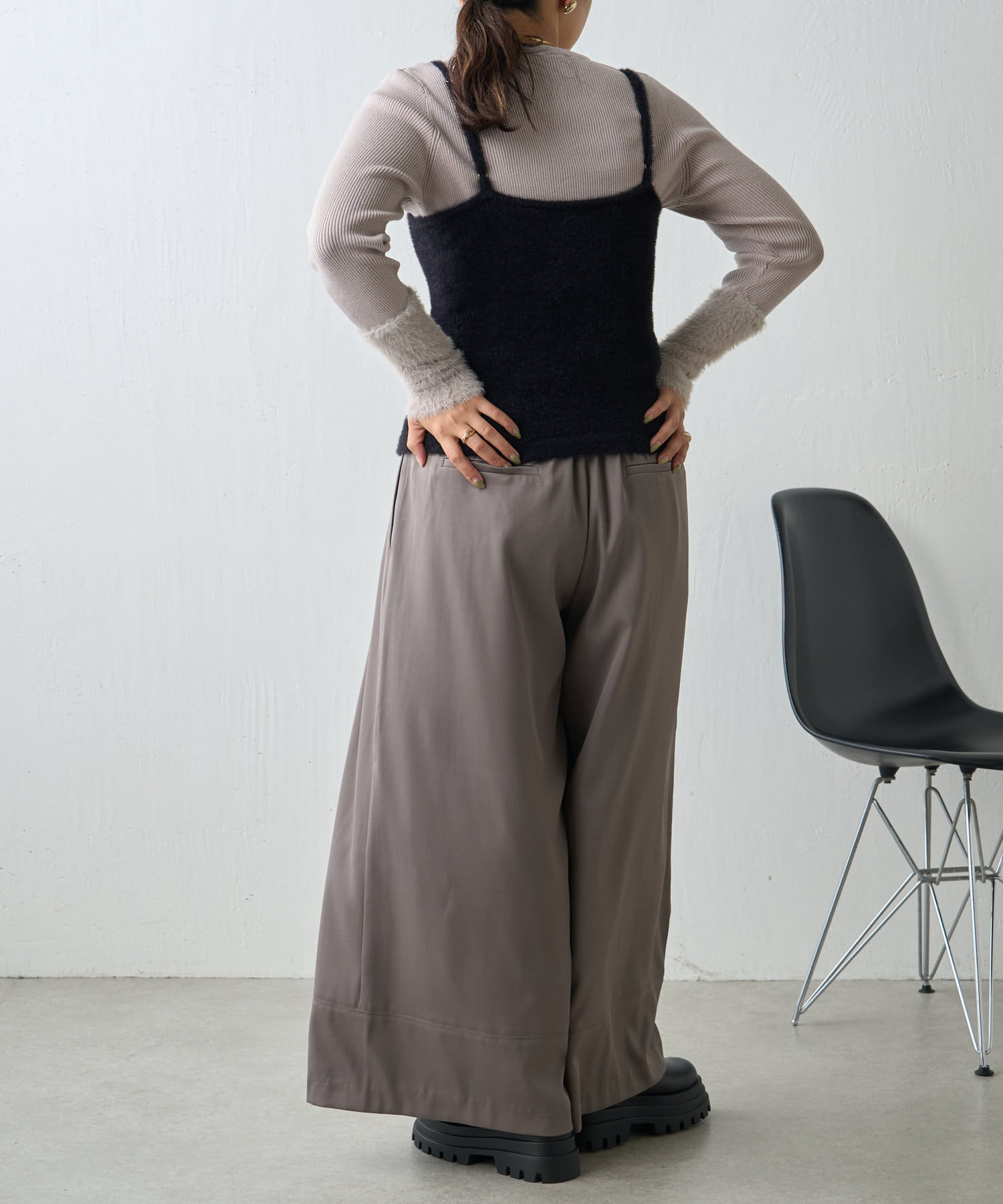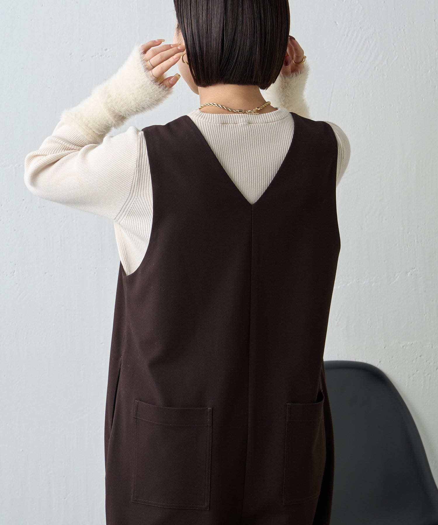 ・袖の素材感を活かして、ジャンスカやオールインワンのインナーなど幅広くスタイリングを楽しめるのも魅力の1枚です。