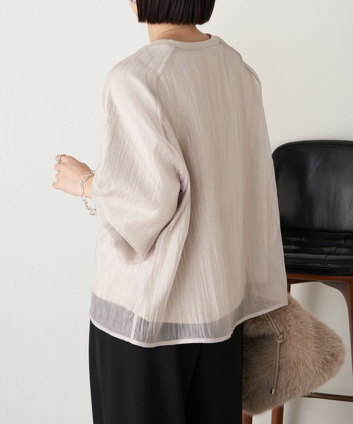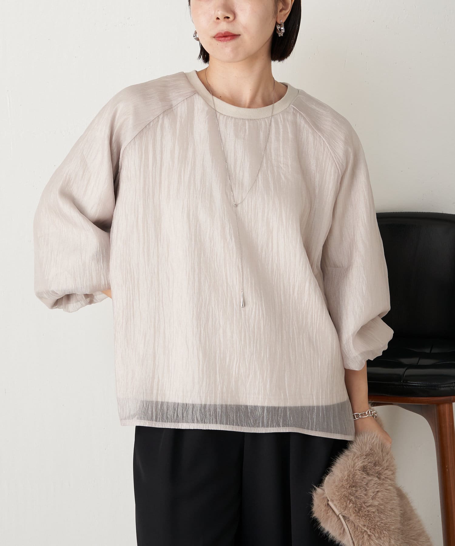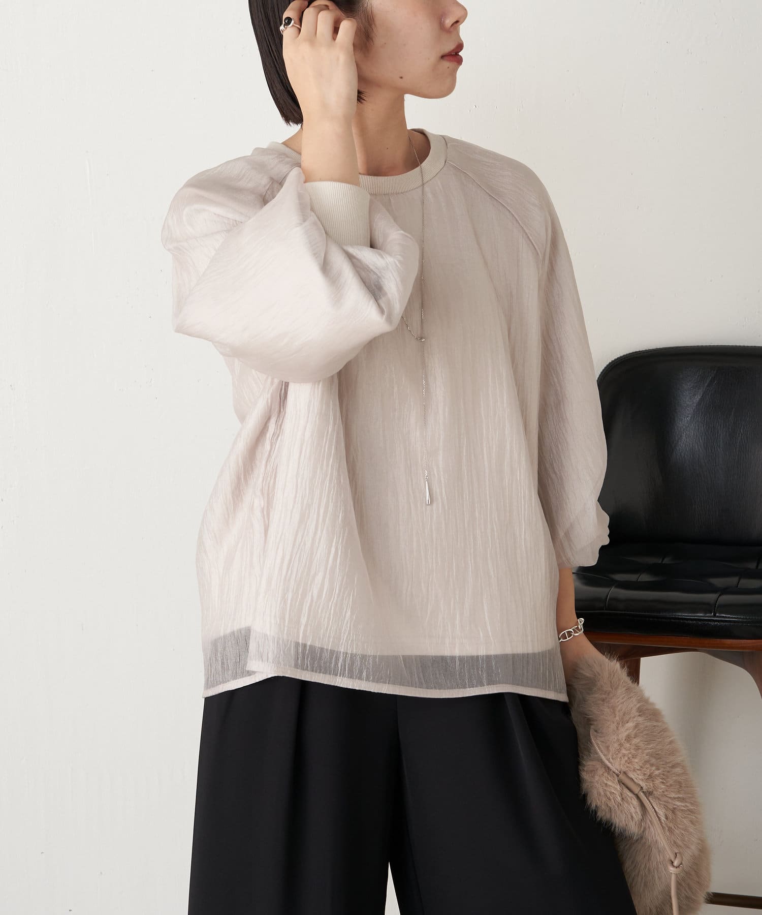 ・シアー素材とプルオーバーがレイヤードされたトレンドデザイン。