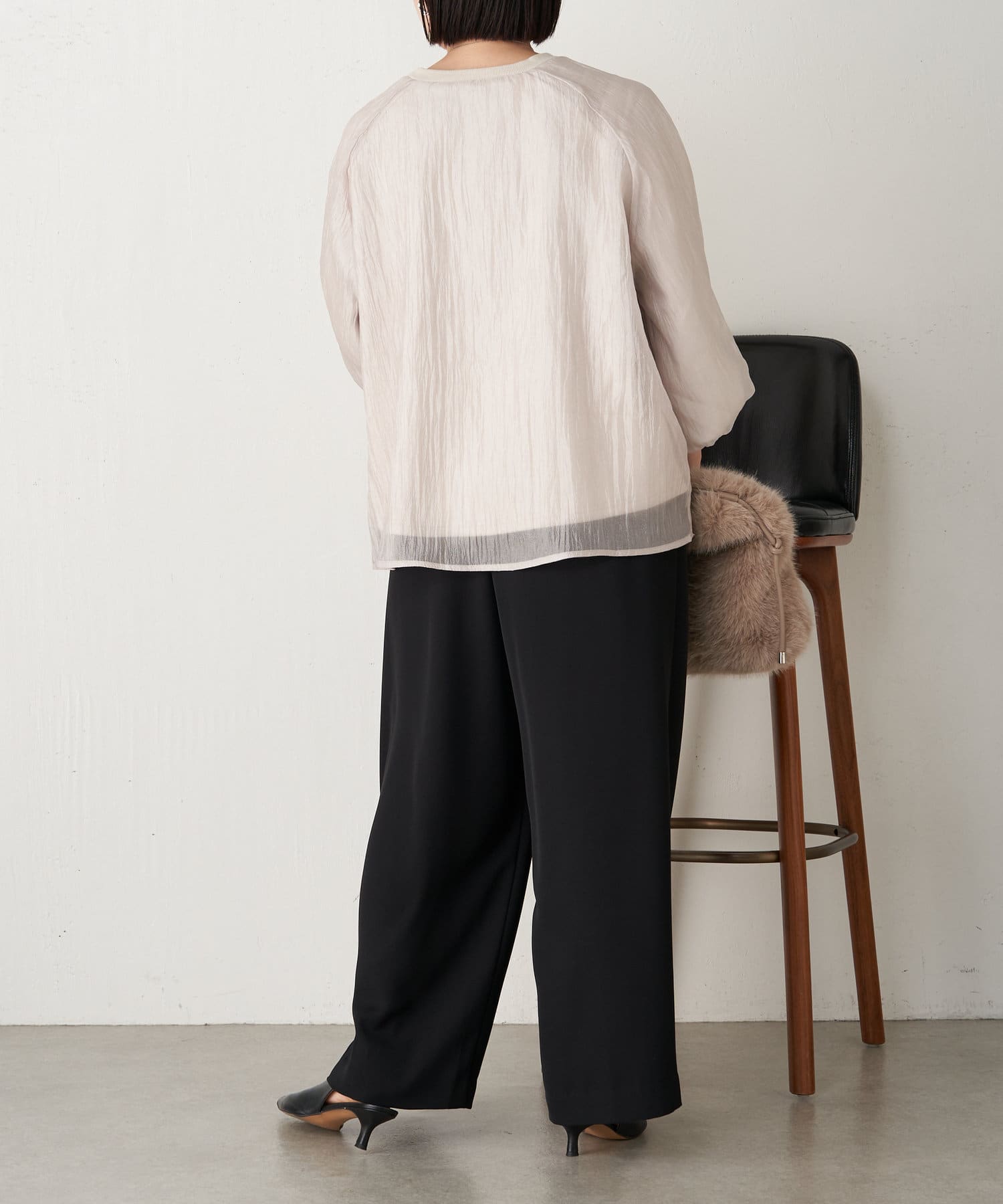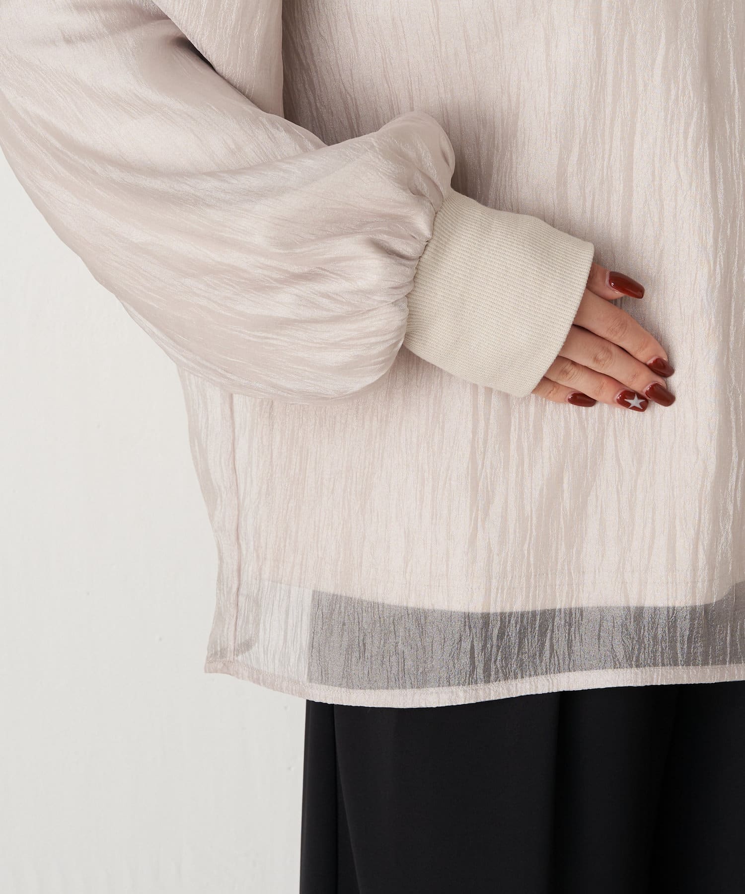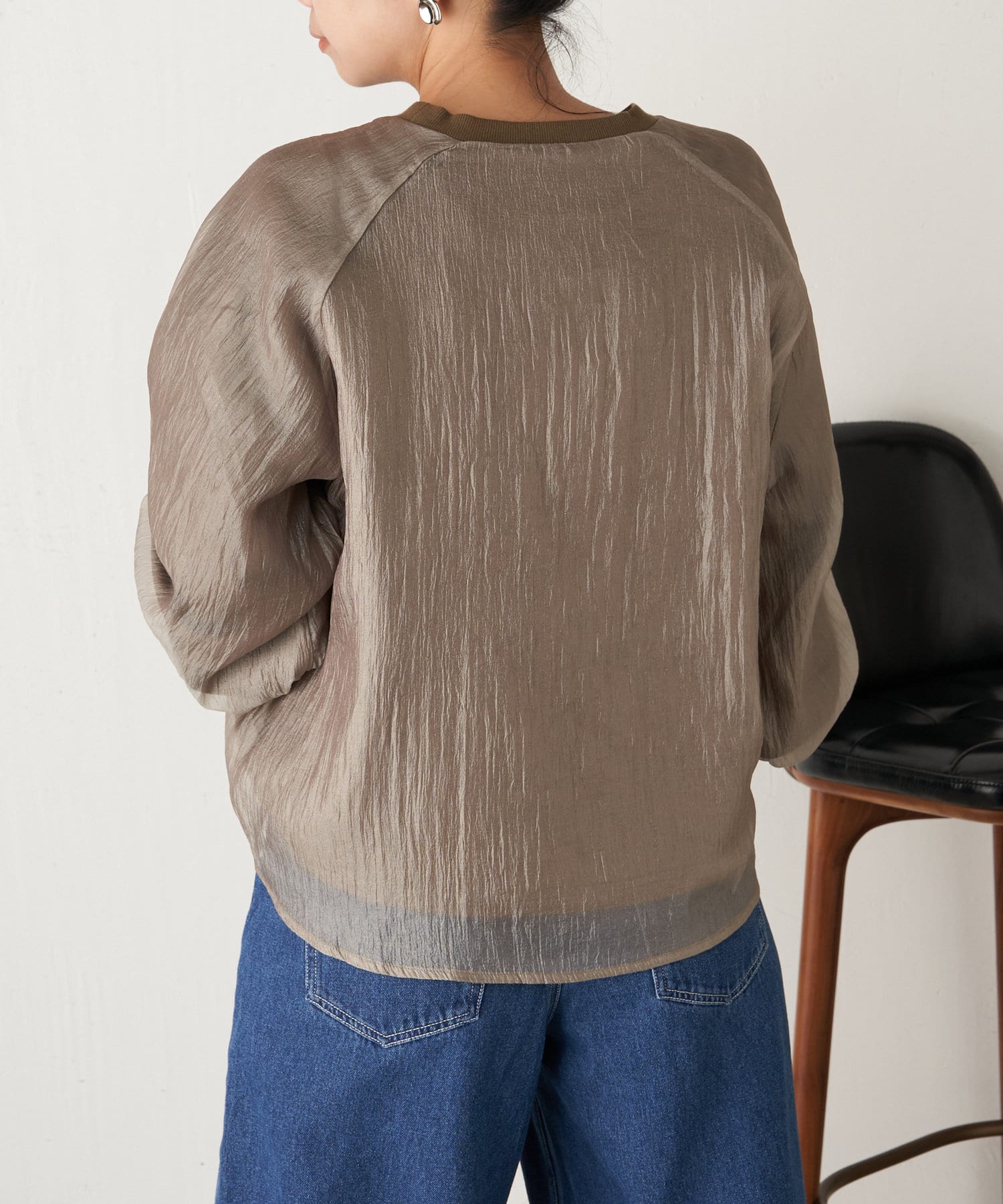 ・シアー素材とプルオーバーがレイヤードされたトレンドデザイン。