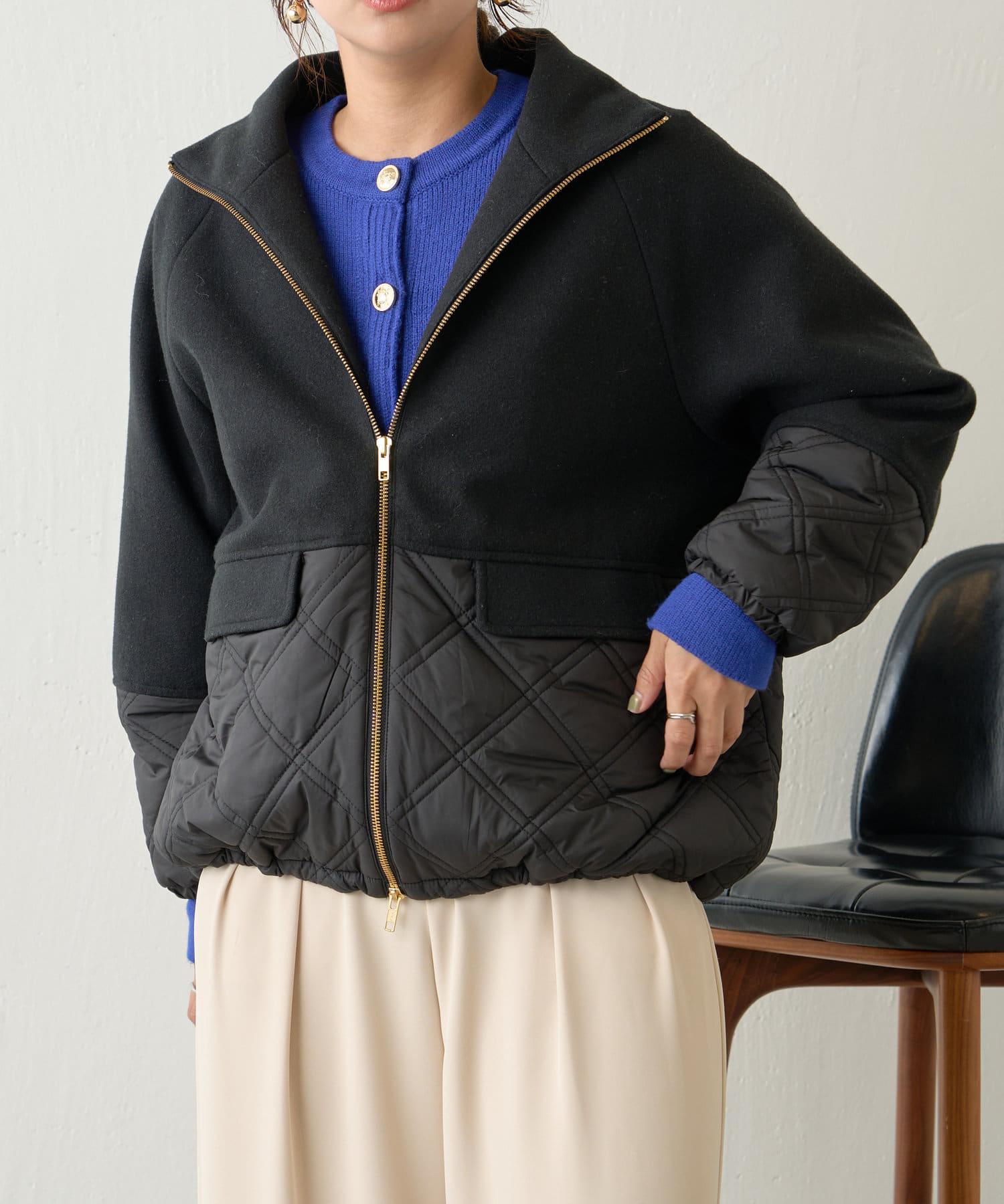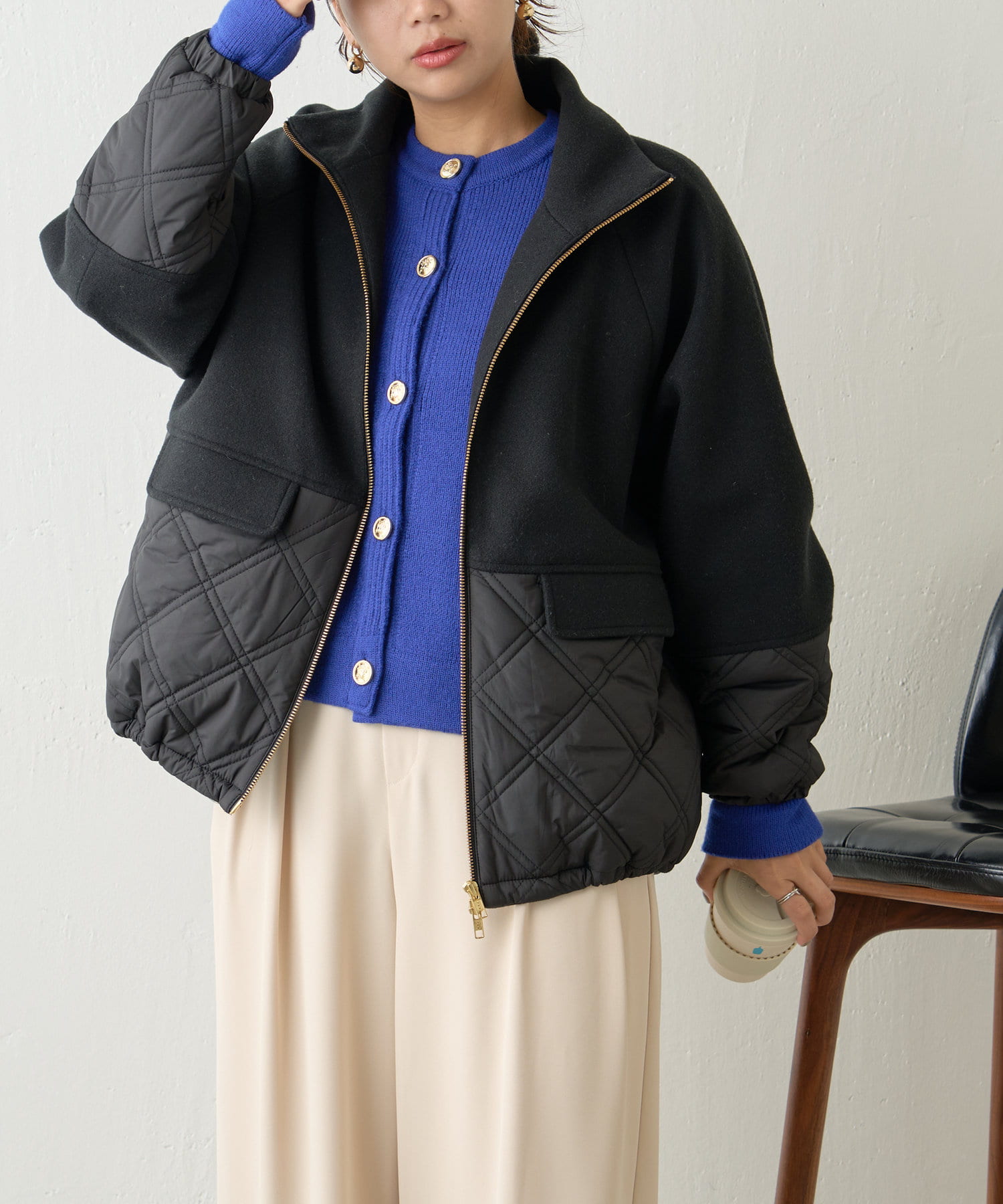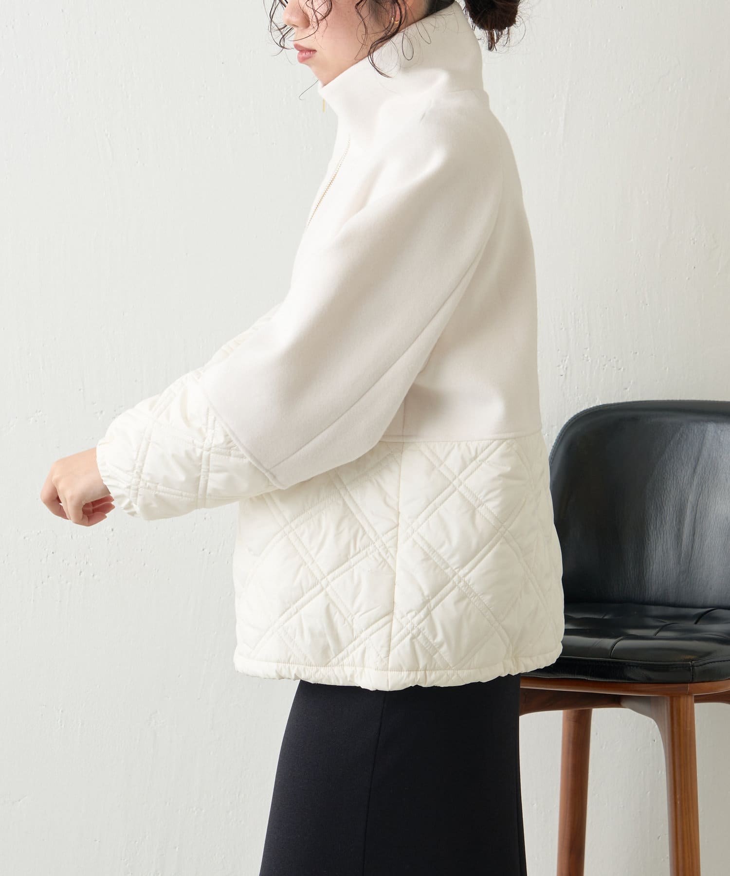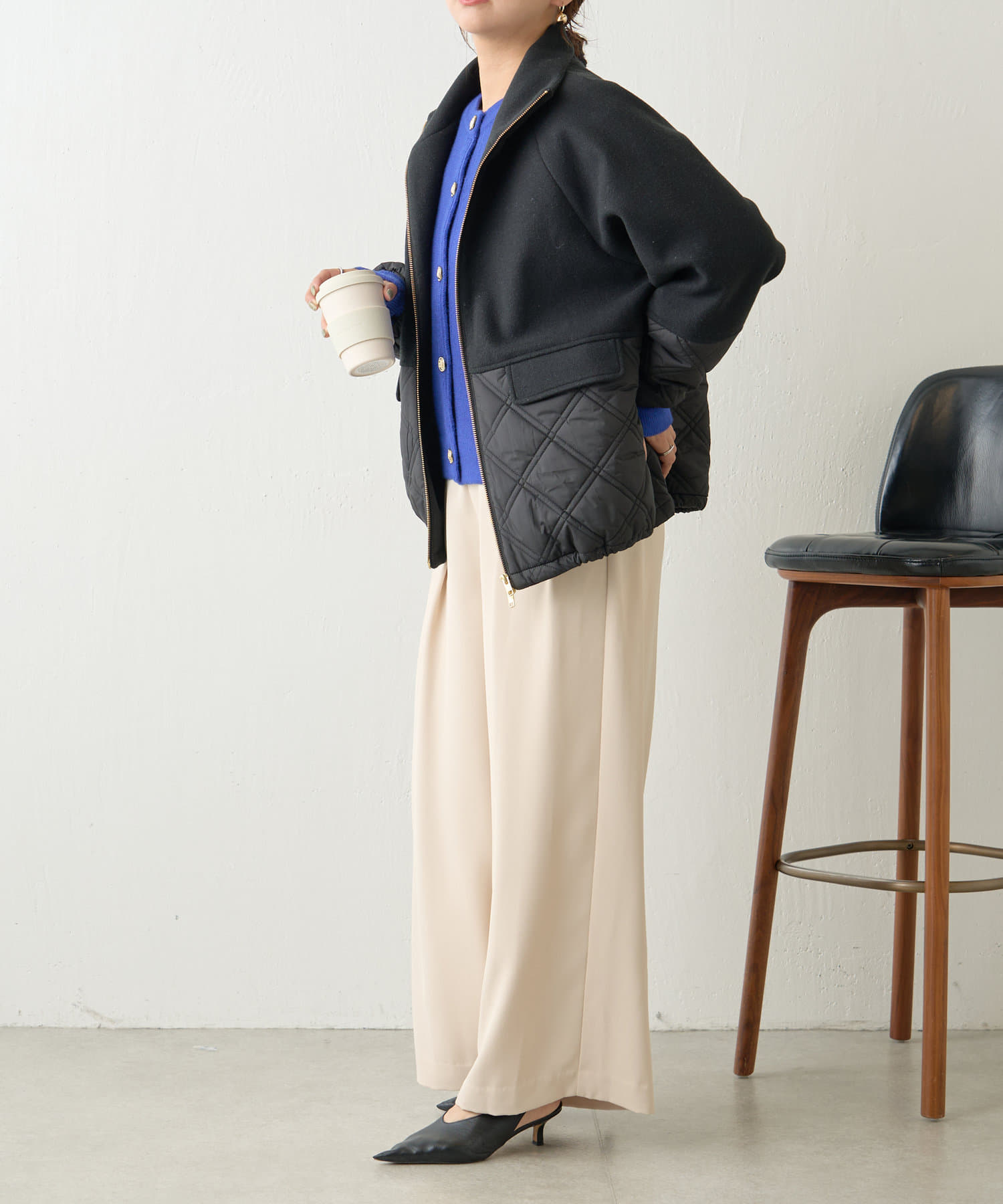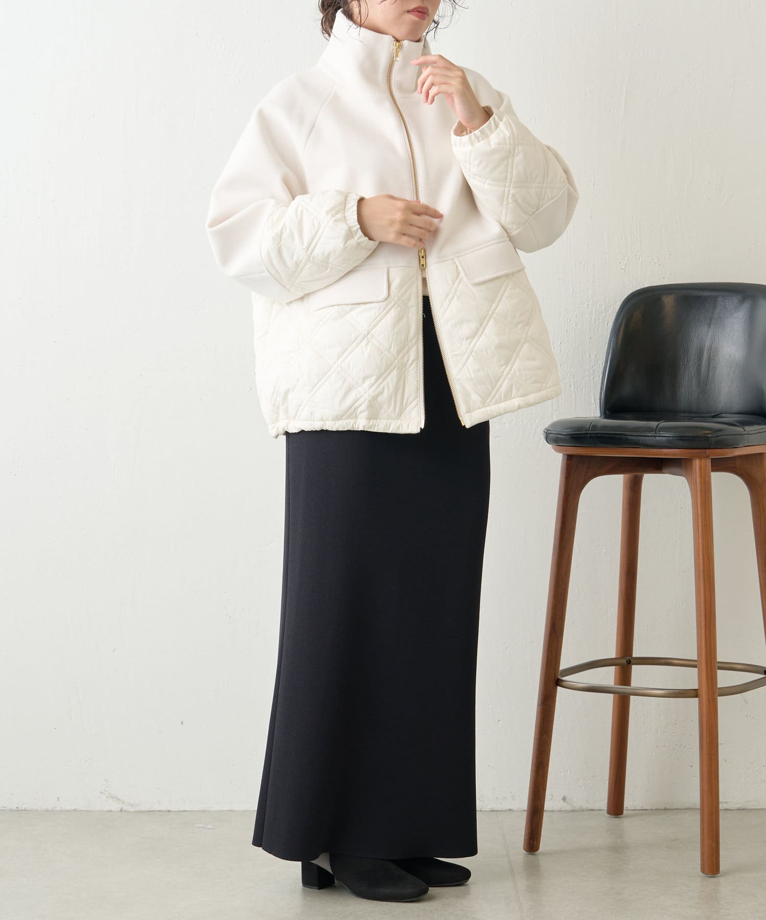 ・スタンドネックデザインでトレンド感もありつつ、首元の保温性もあり機能面も◎