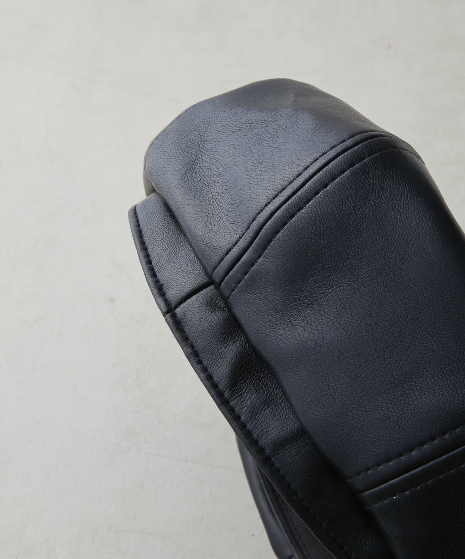 エコレザー素材はゆるっとしたコーデのアクセントにおすすめ。
