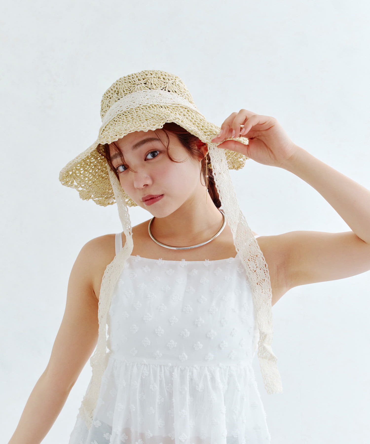 レースが編まれたデザインがポイントの新作ハット。