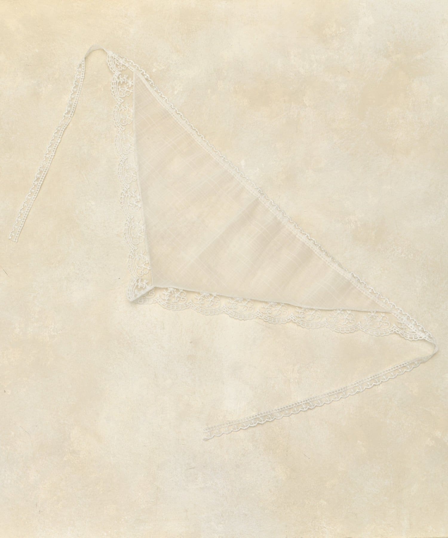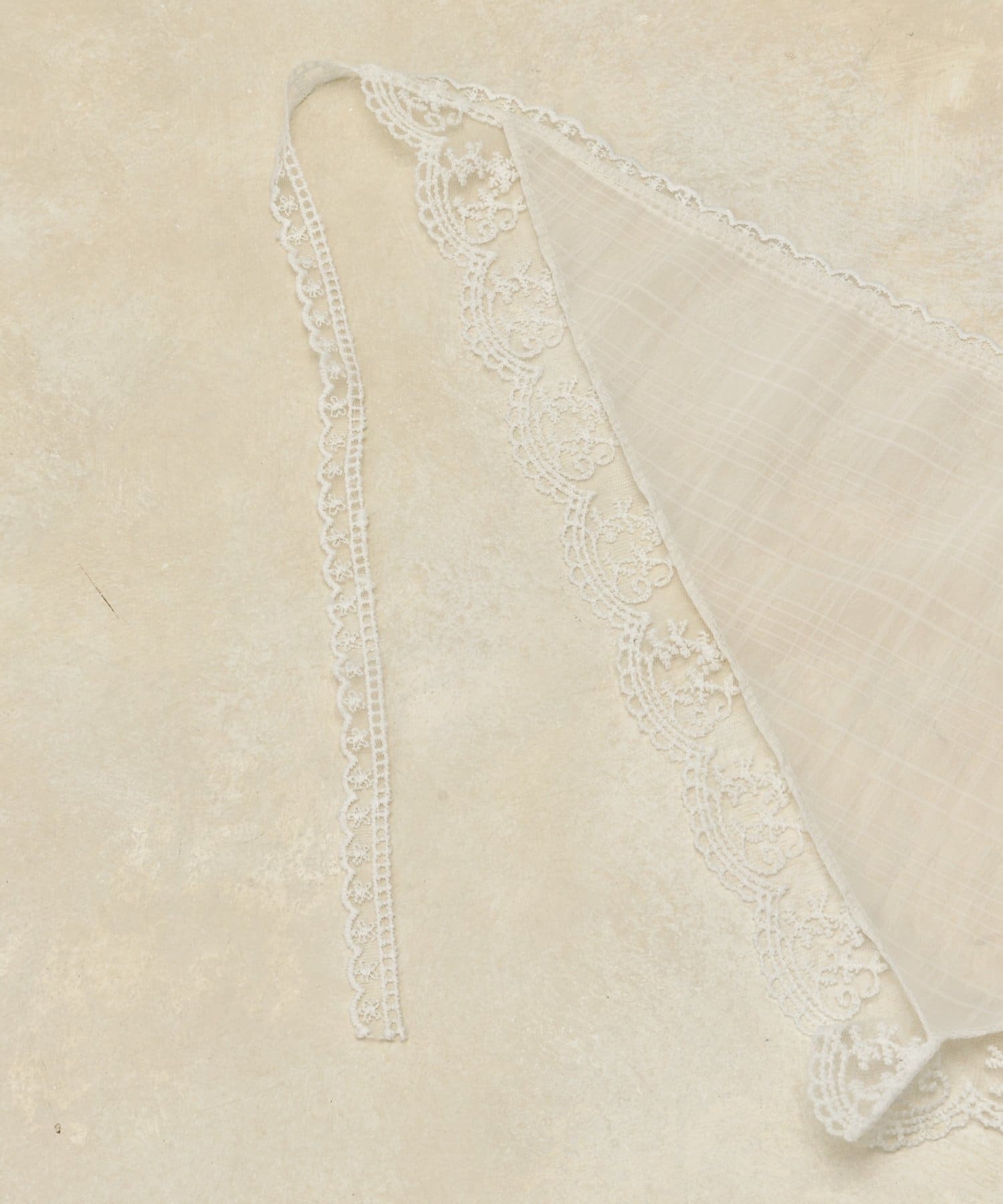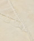縁にあしらわれた繊細なレースが、ヴィンテージライクな雰囲気をプラス。