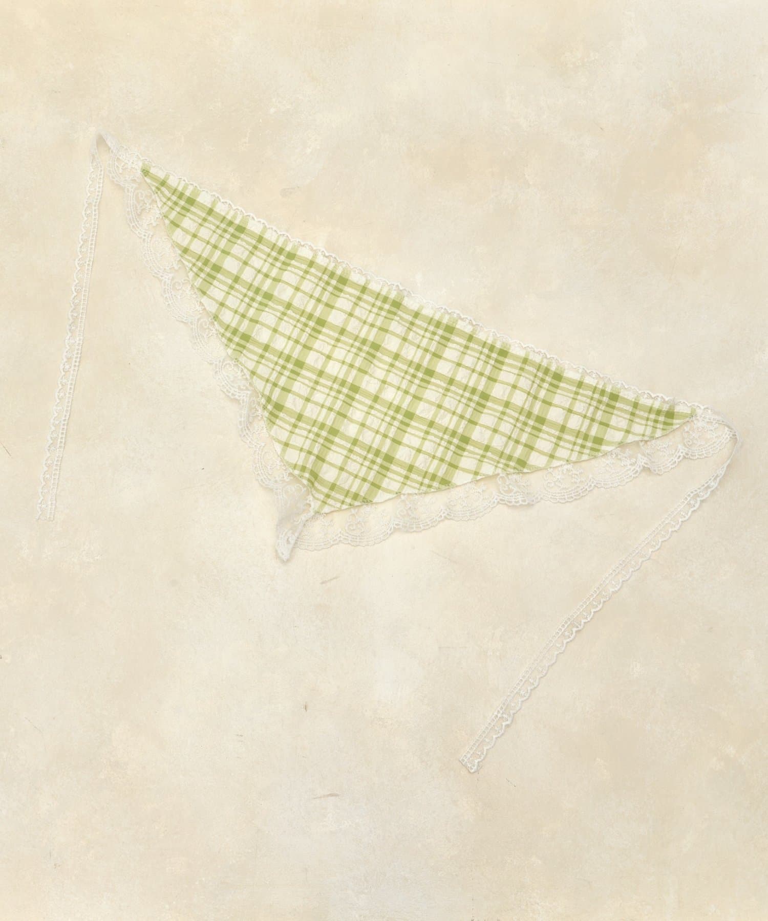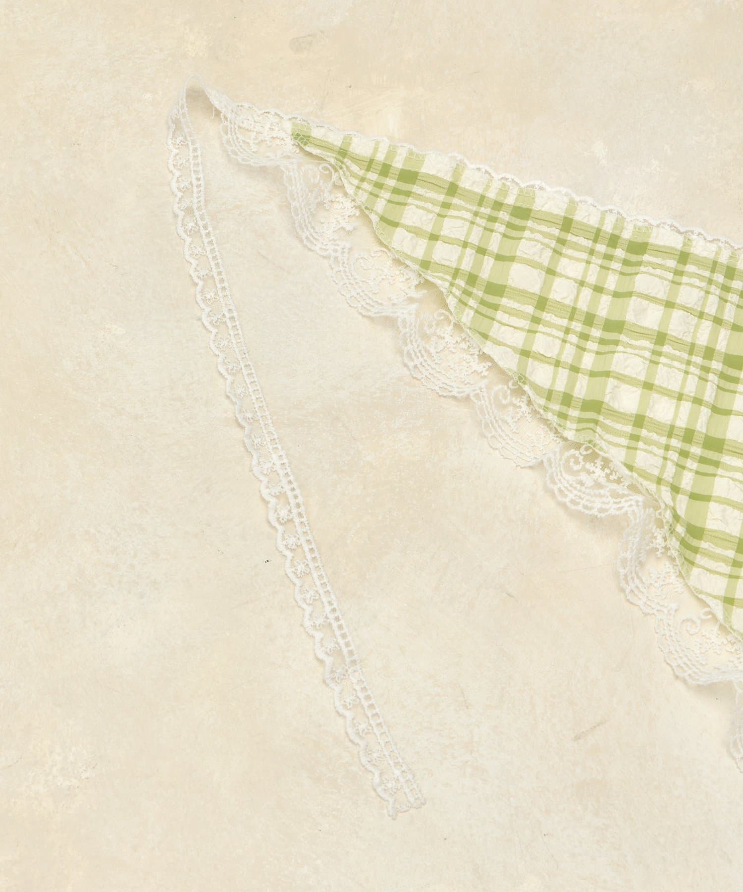 爽やかなグリーンのチェック柄に、繊細なレースをあしらったヴィンテージライクなデザイン。