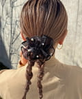 〇ゴムで結んだ髪にフックを引っ掛けるだけで手軽にアレンジが完成