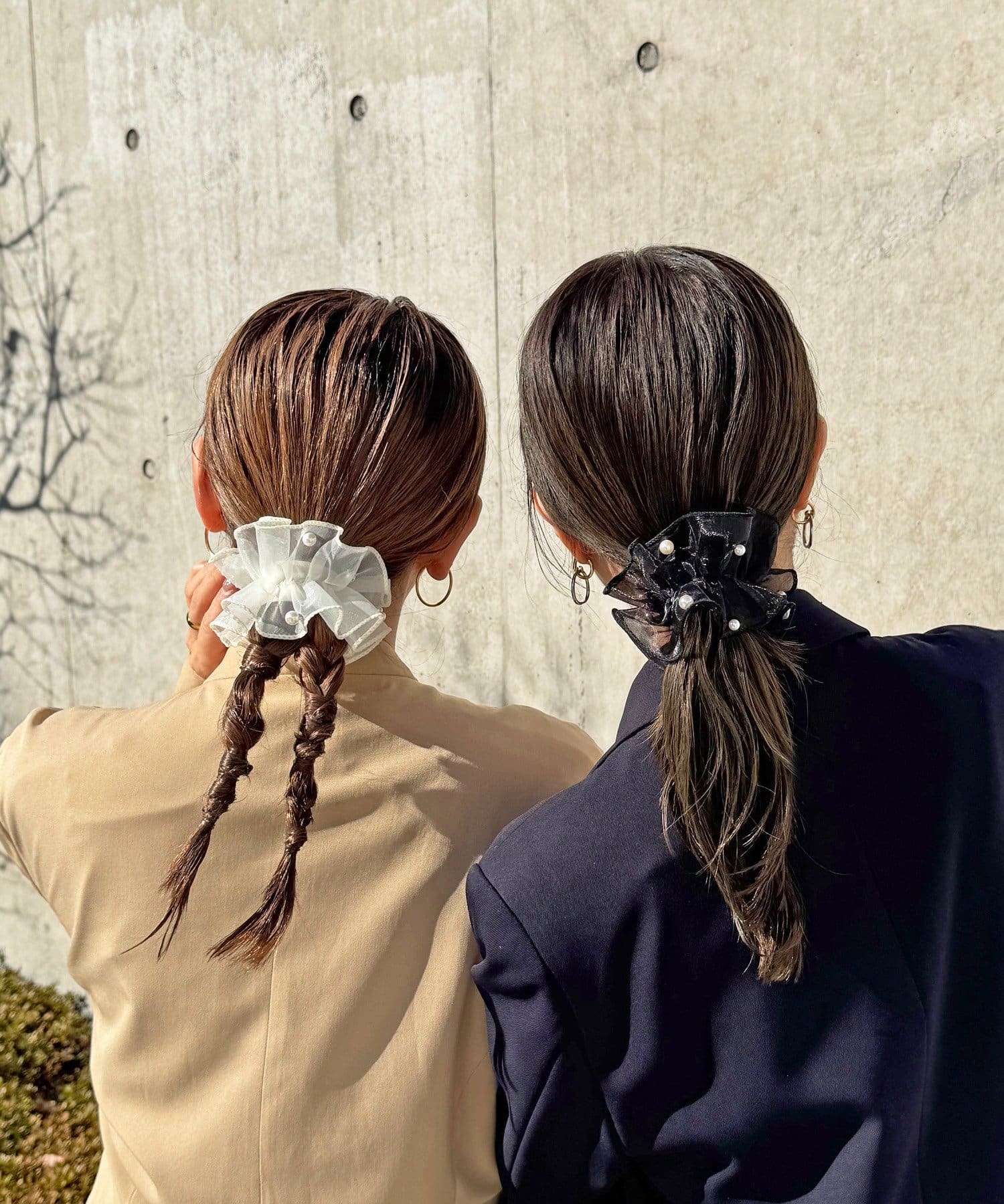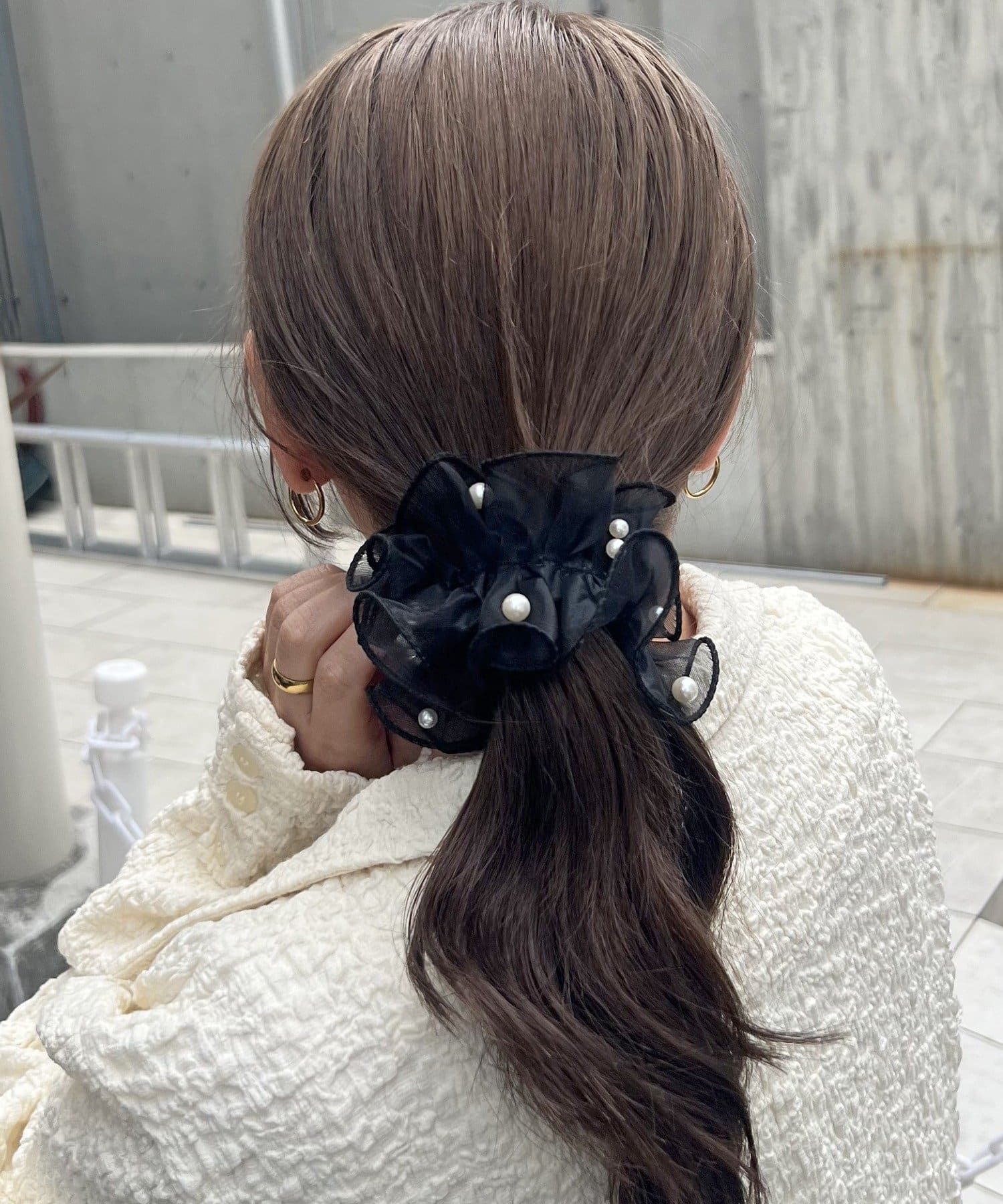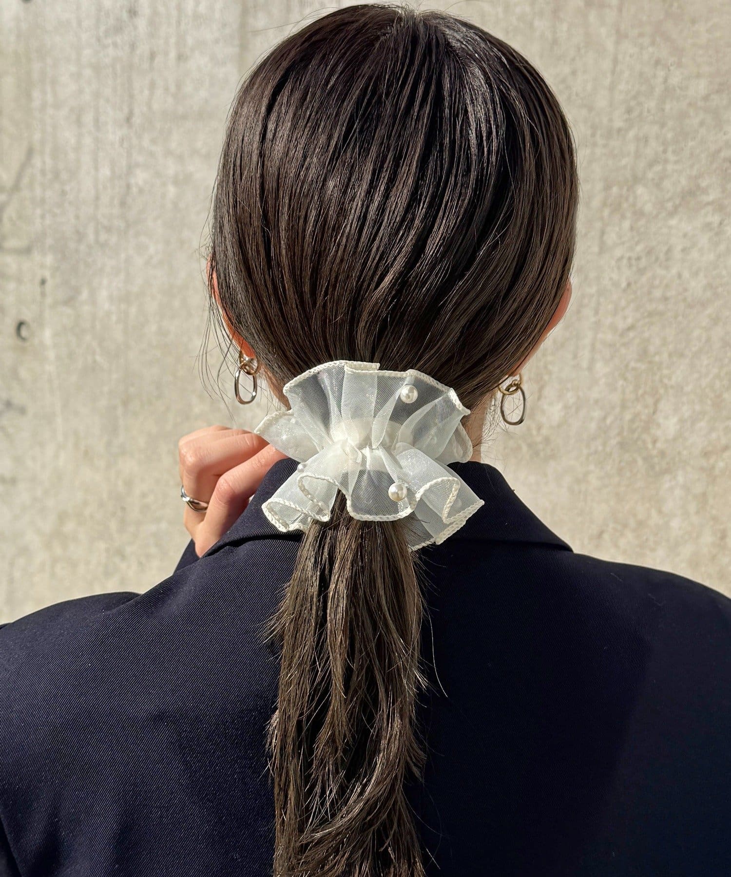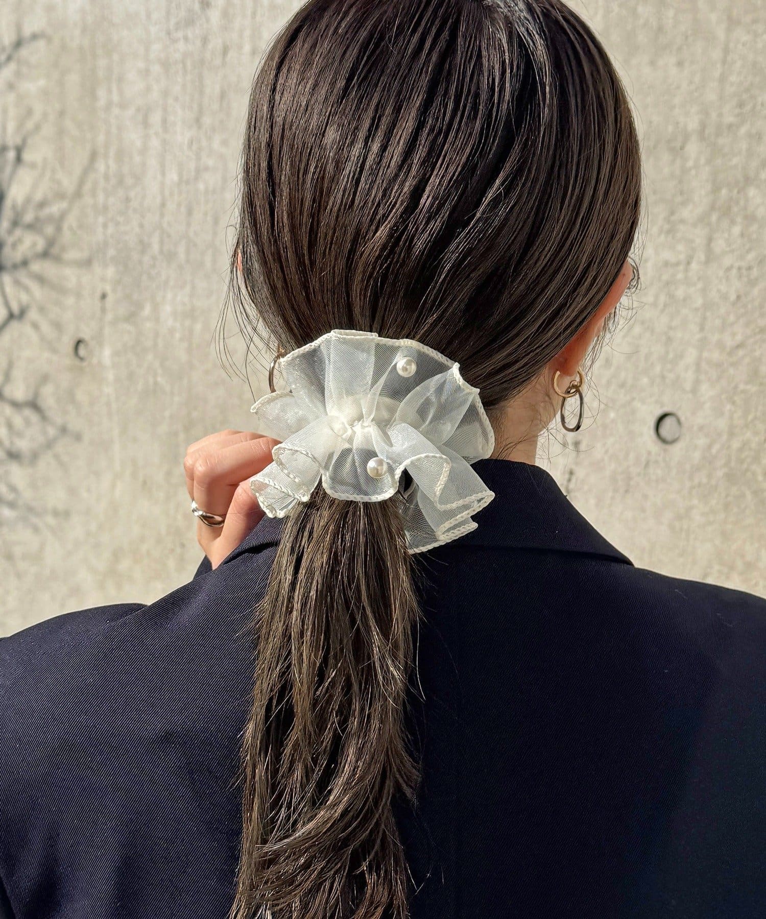 【2/12 12:00~販売】【keeco企画】パール付きシアーロールヘアカフ