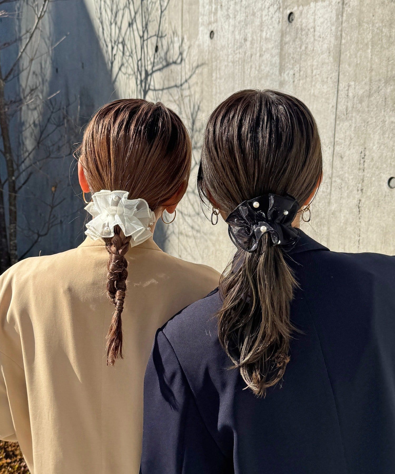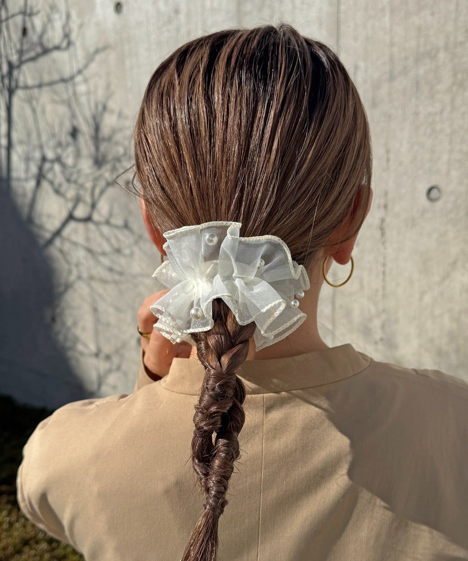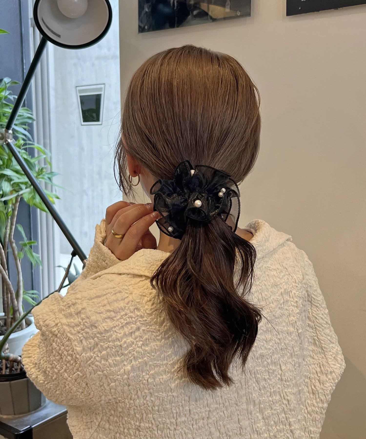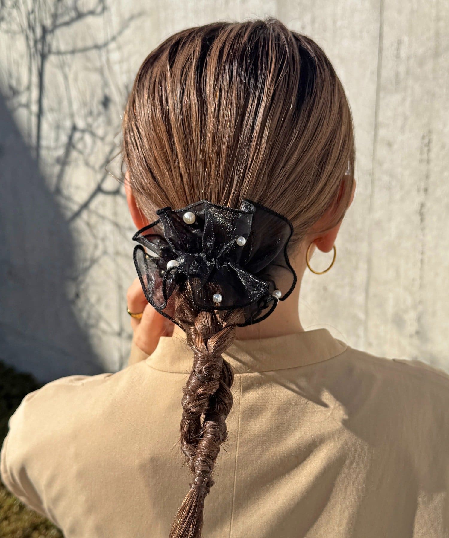 【2/12 12:00~販売】【keeco企画】パール付きシアーロールヘアカフ