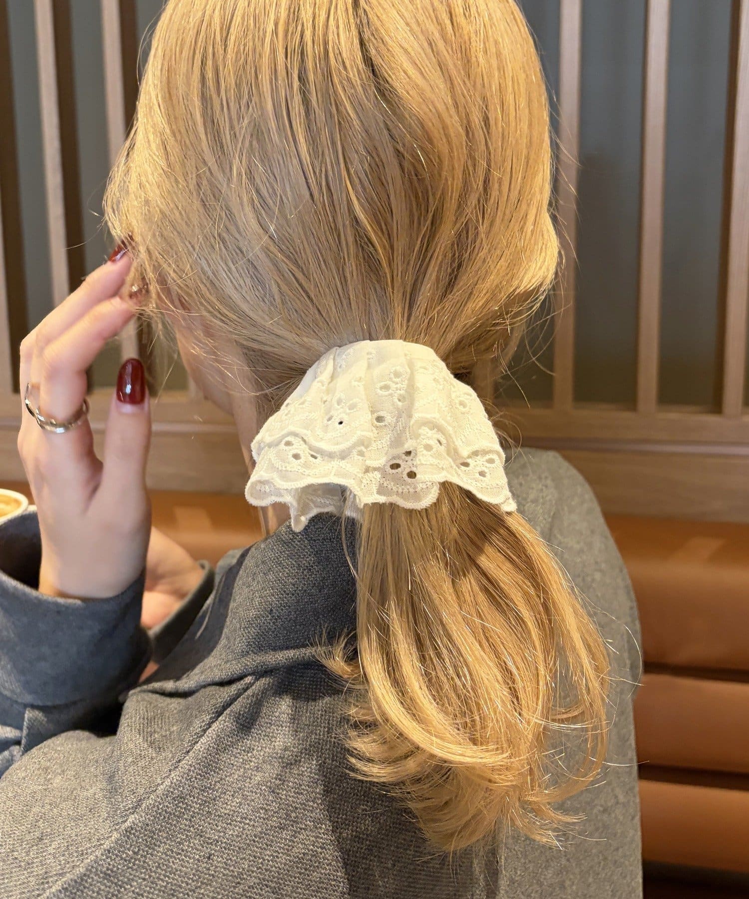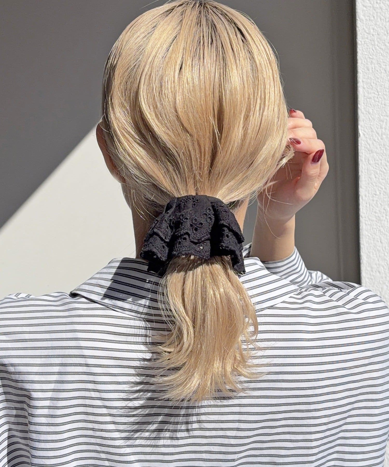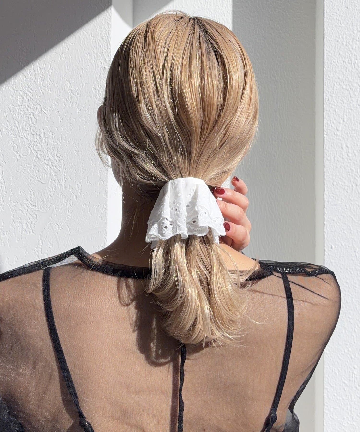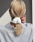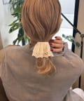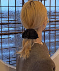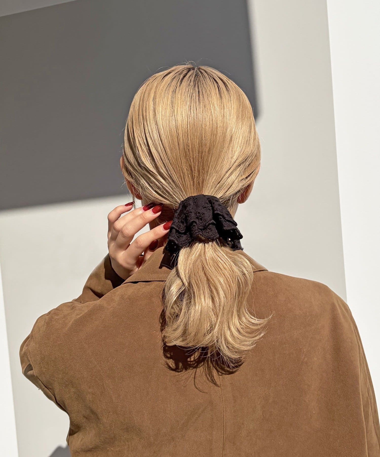 〇ゴムで結んだ髪にフックを引っ掛けるだけで手軽にアレンジが完成