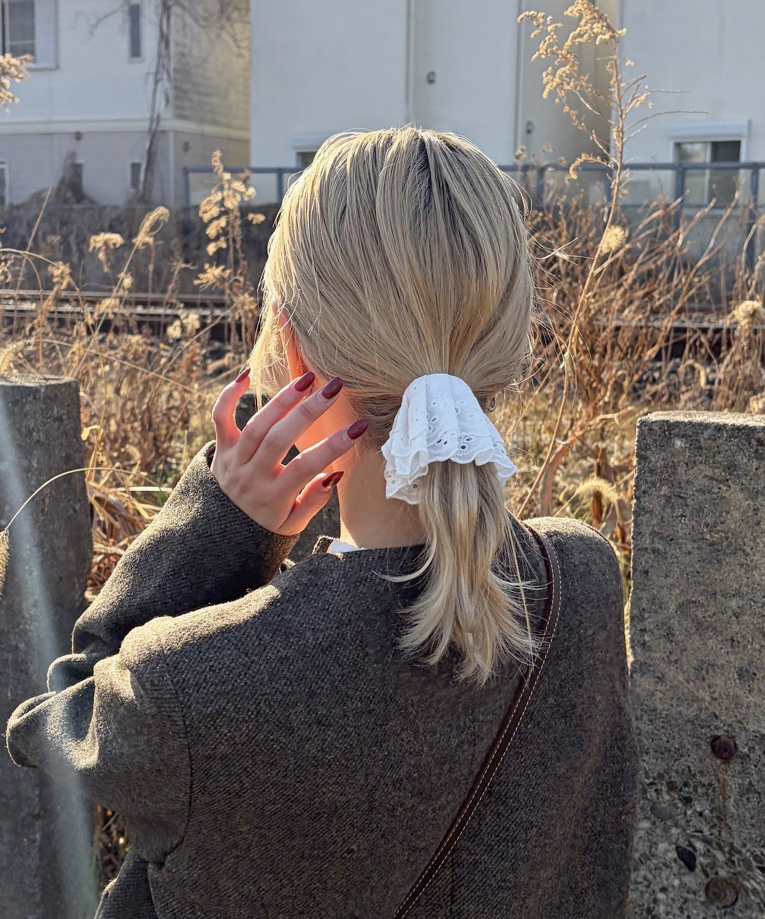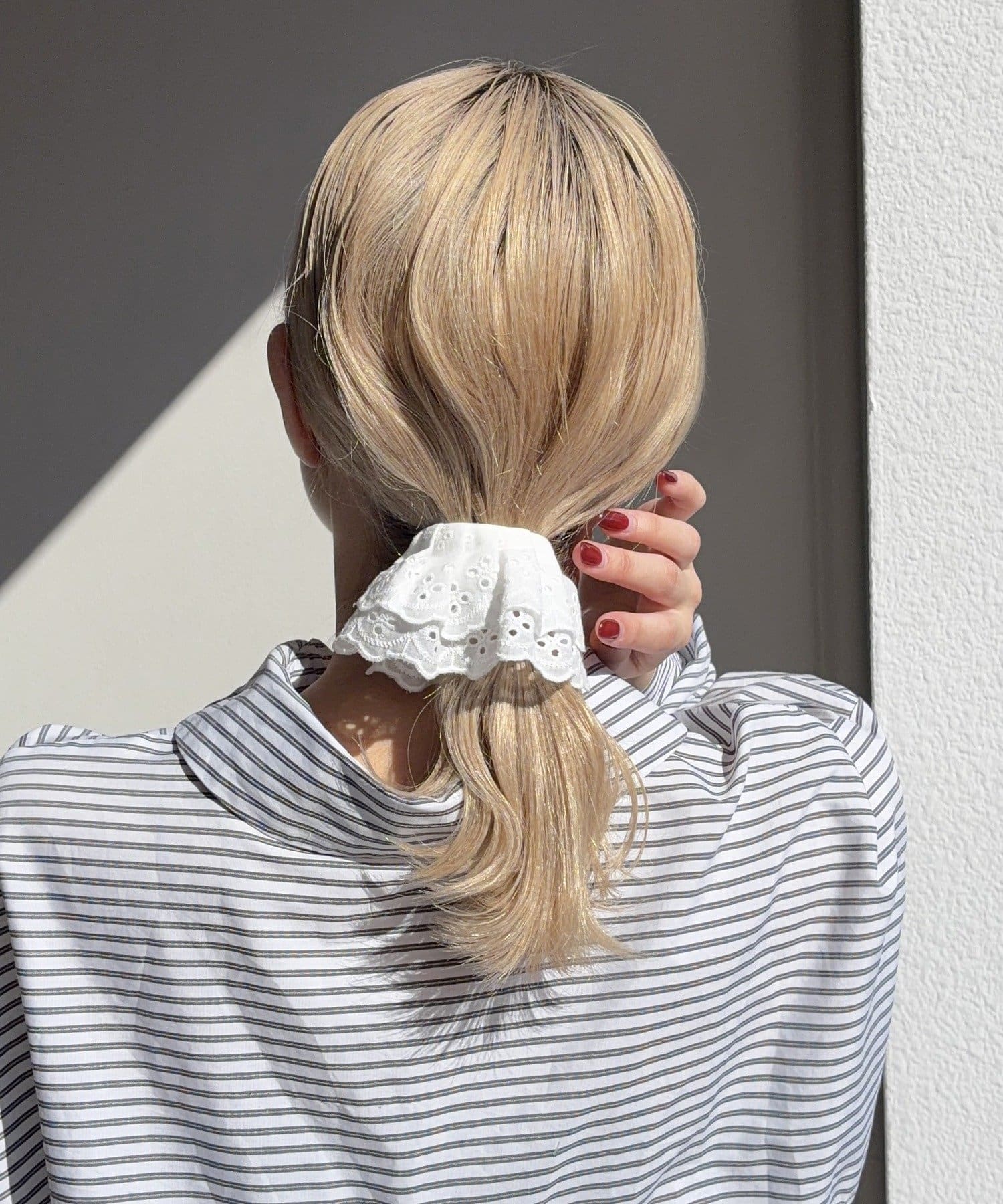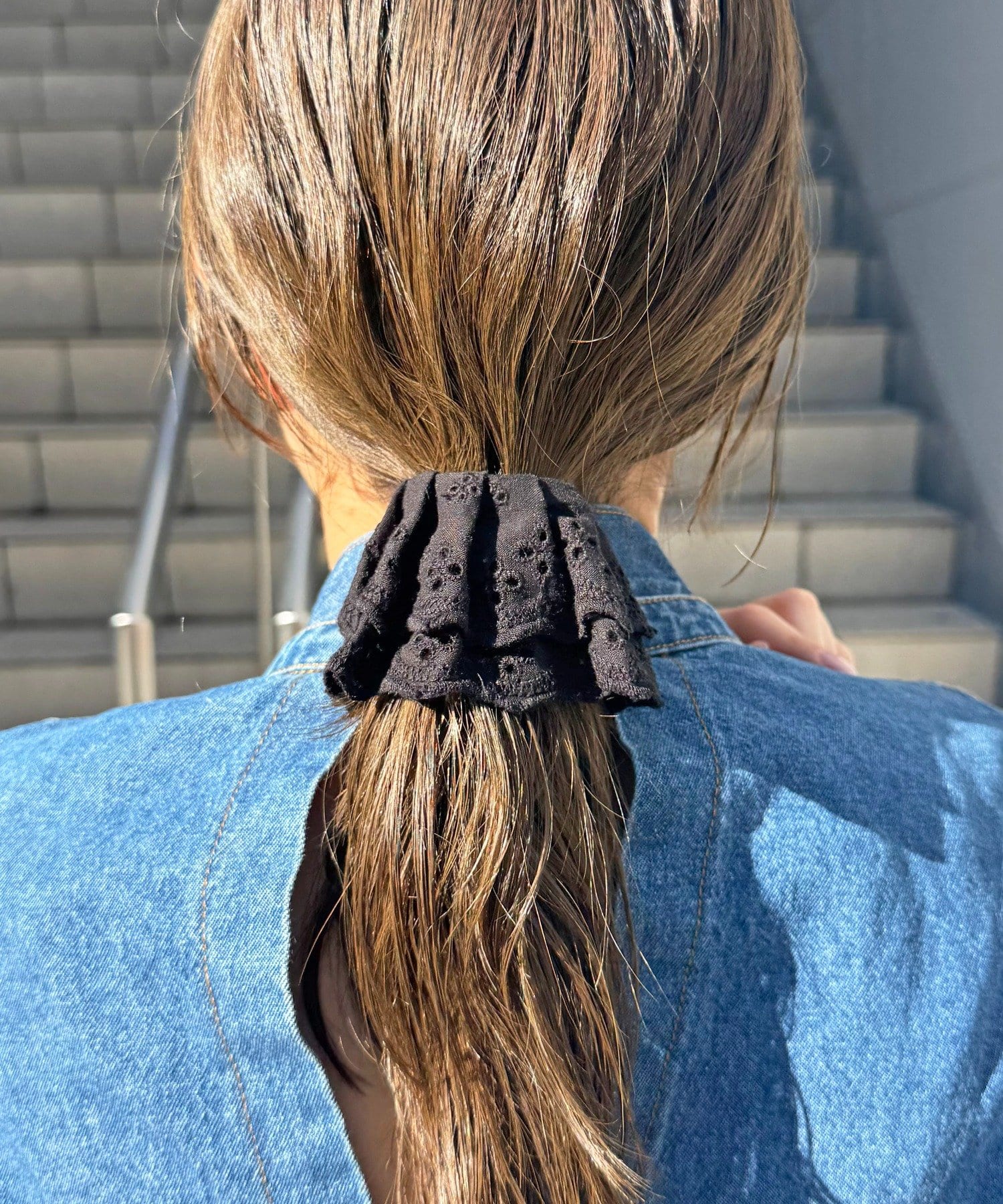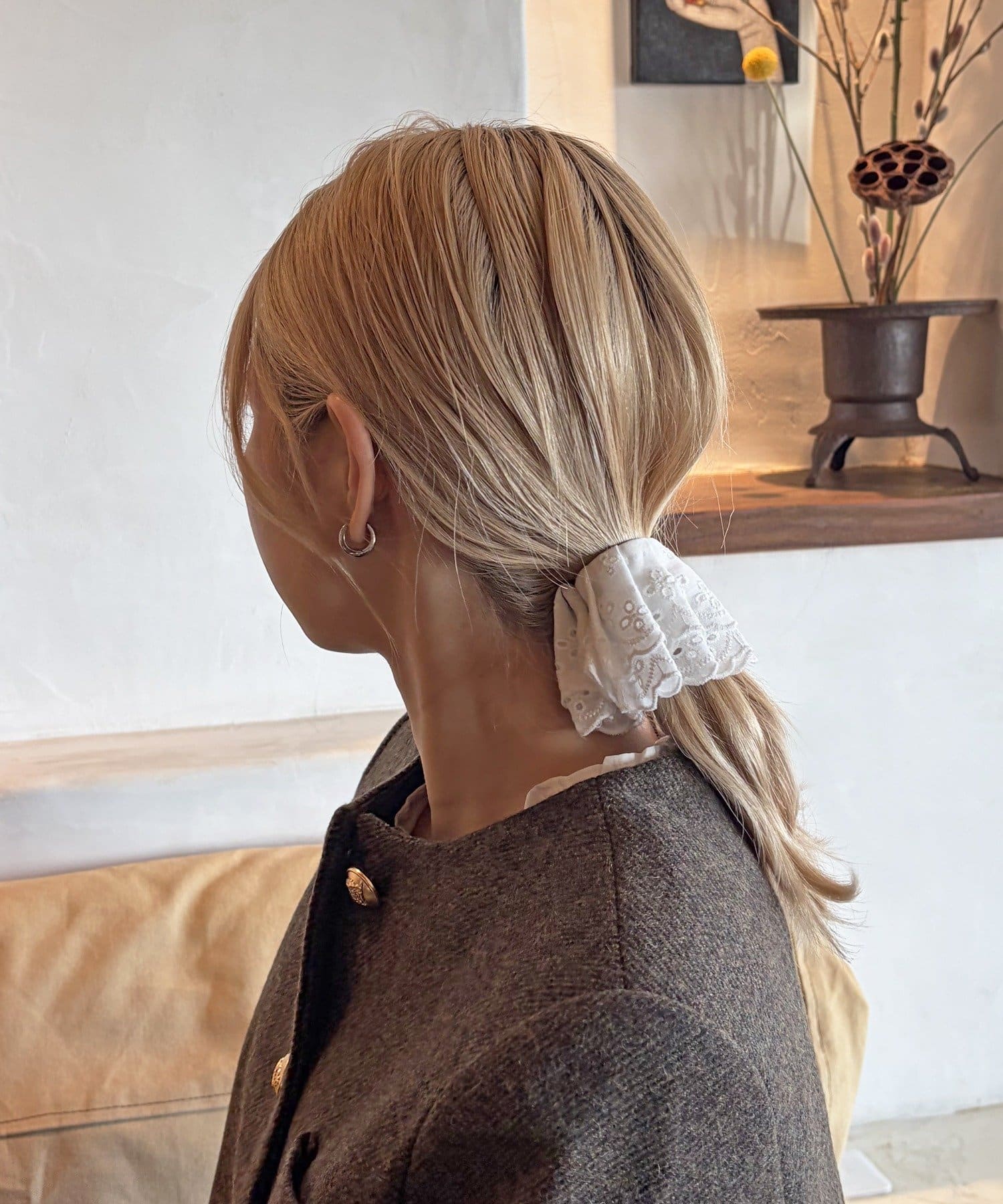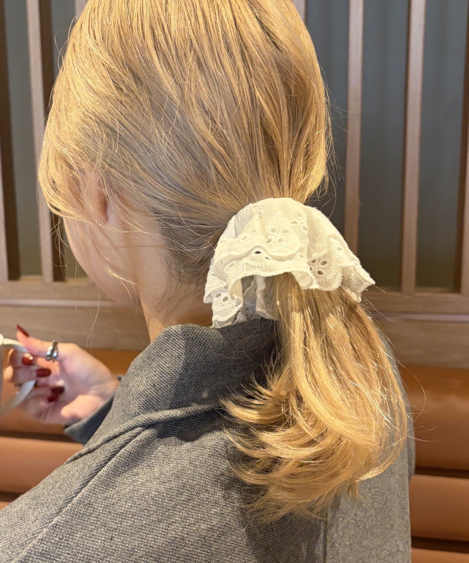 〇ゴムで結んだ髪にフックを引っ掛けるだけで手軽にアレンジが完成