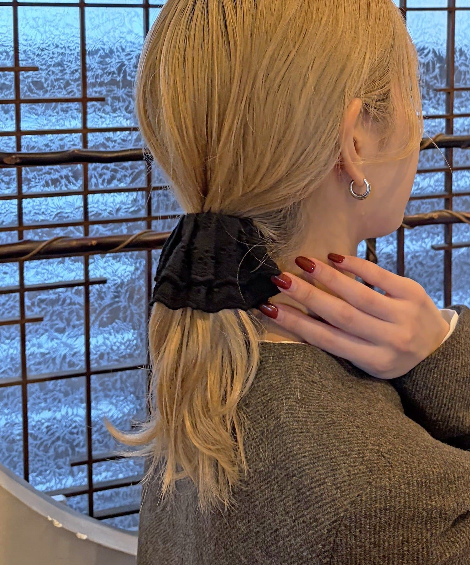 ロール状のデザインがヘアスタイルに程よいボリュームと動きをプラス◎