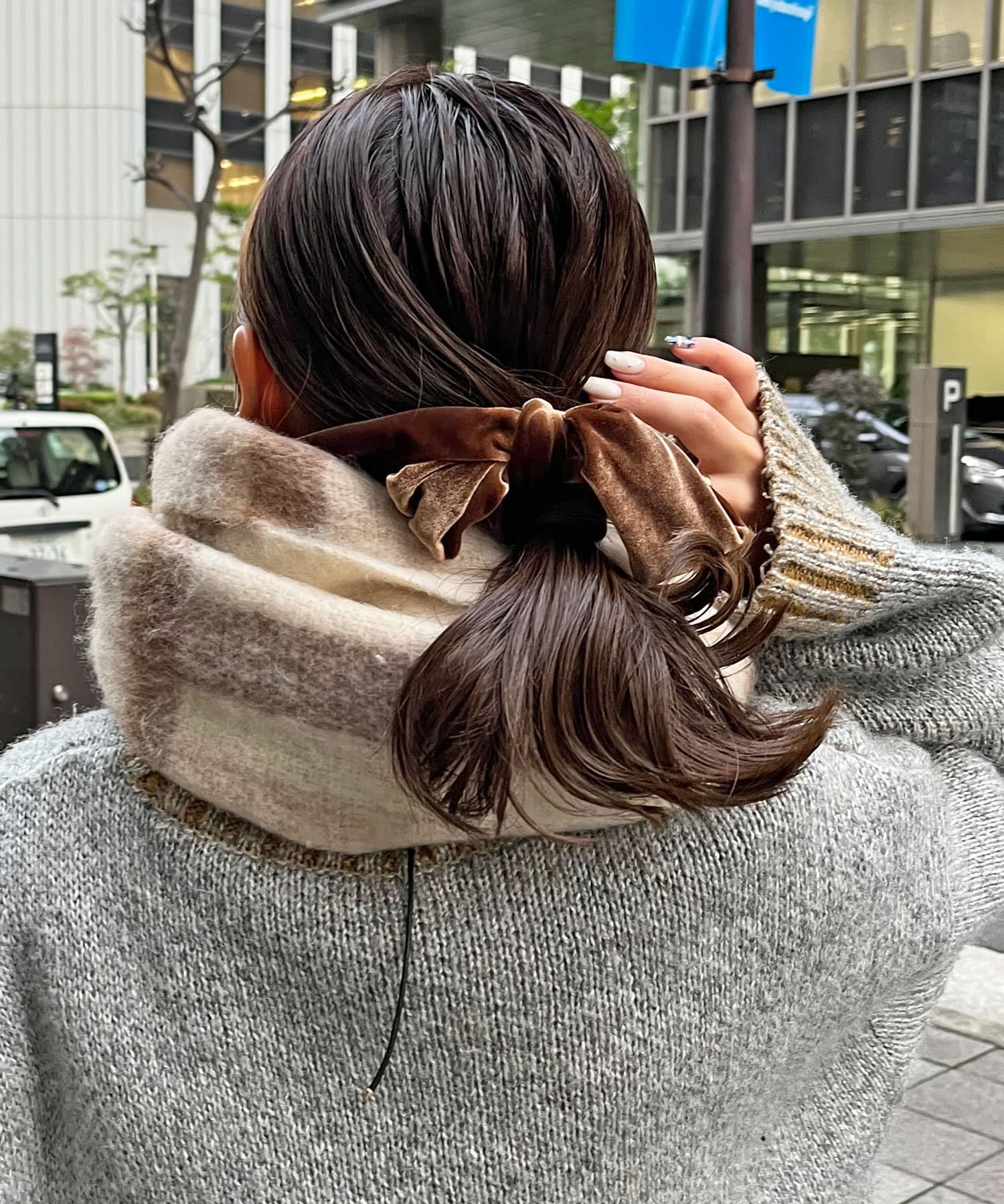 購入場所:店舗結んでリボンにするも良し、巻いて長めに垂らすのも良し。リングを使って首にスカーフみたいに巻くのも良しと使い方が沢山あって自分のその時のしたいイメージにしやすいアイテム‼️
