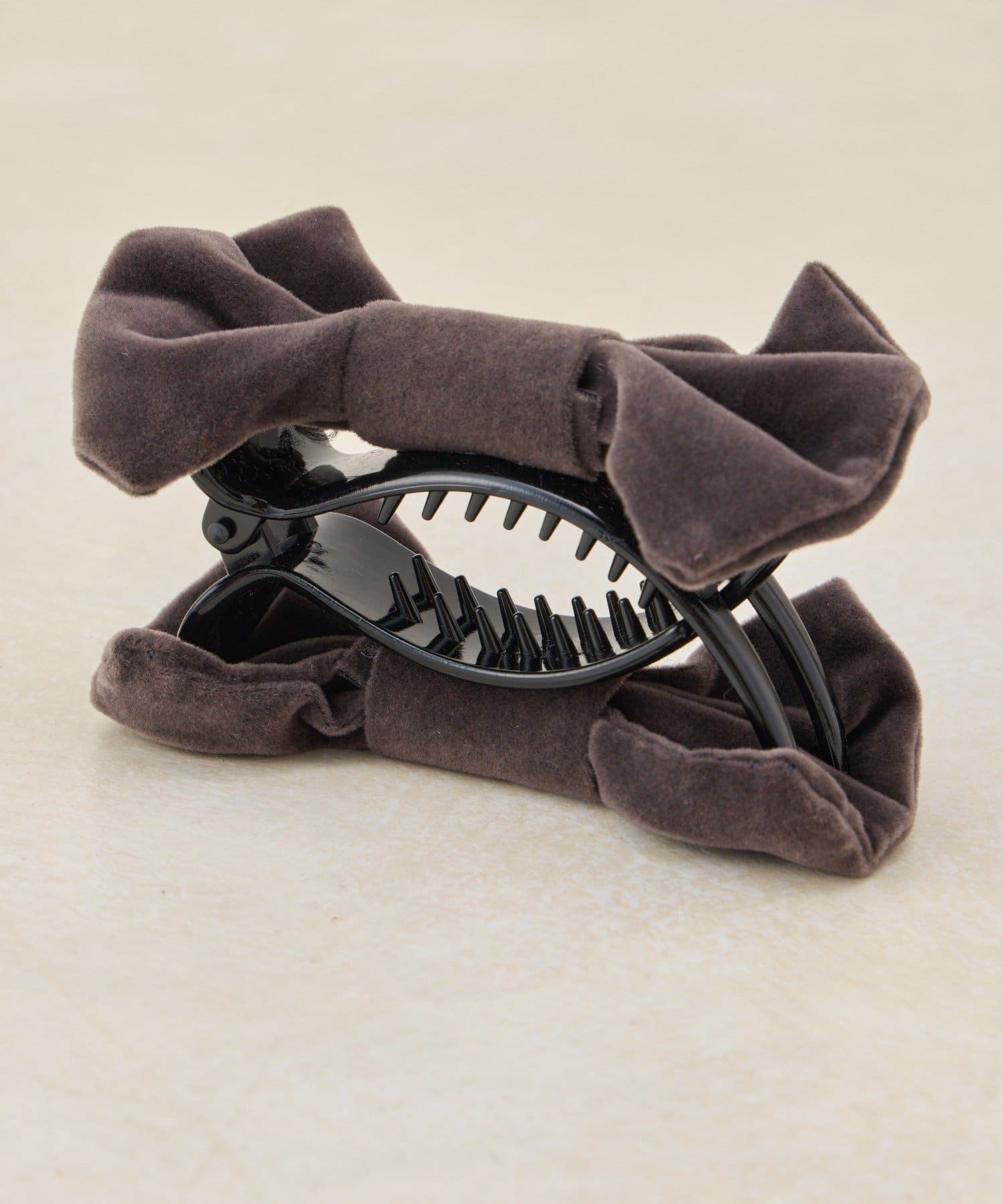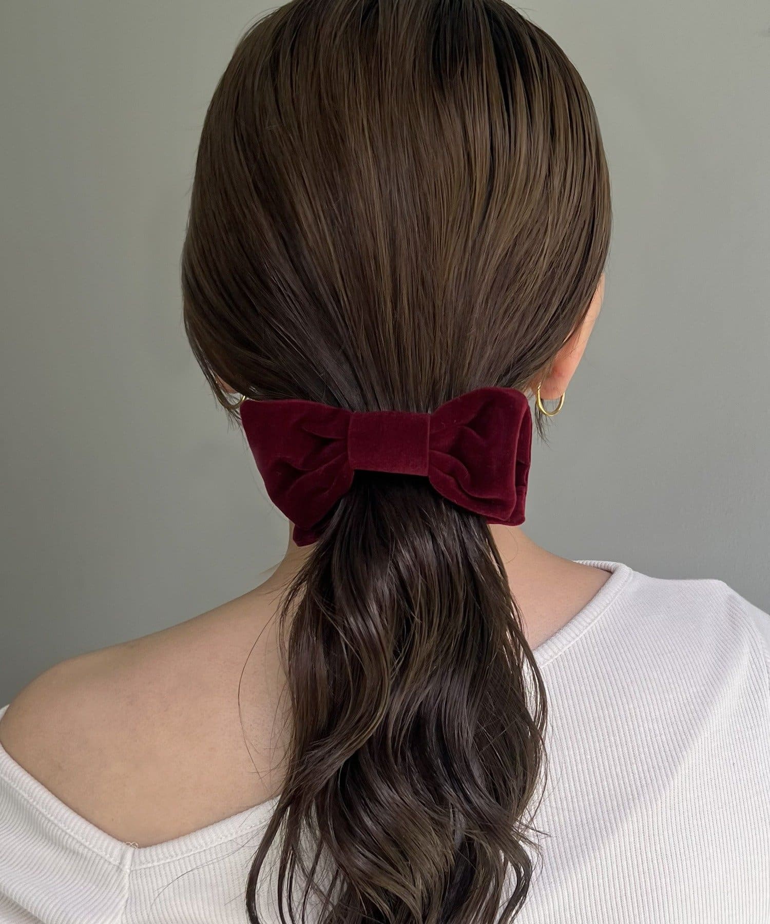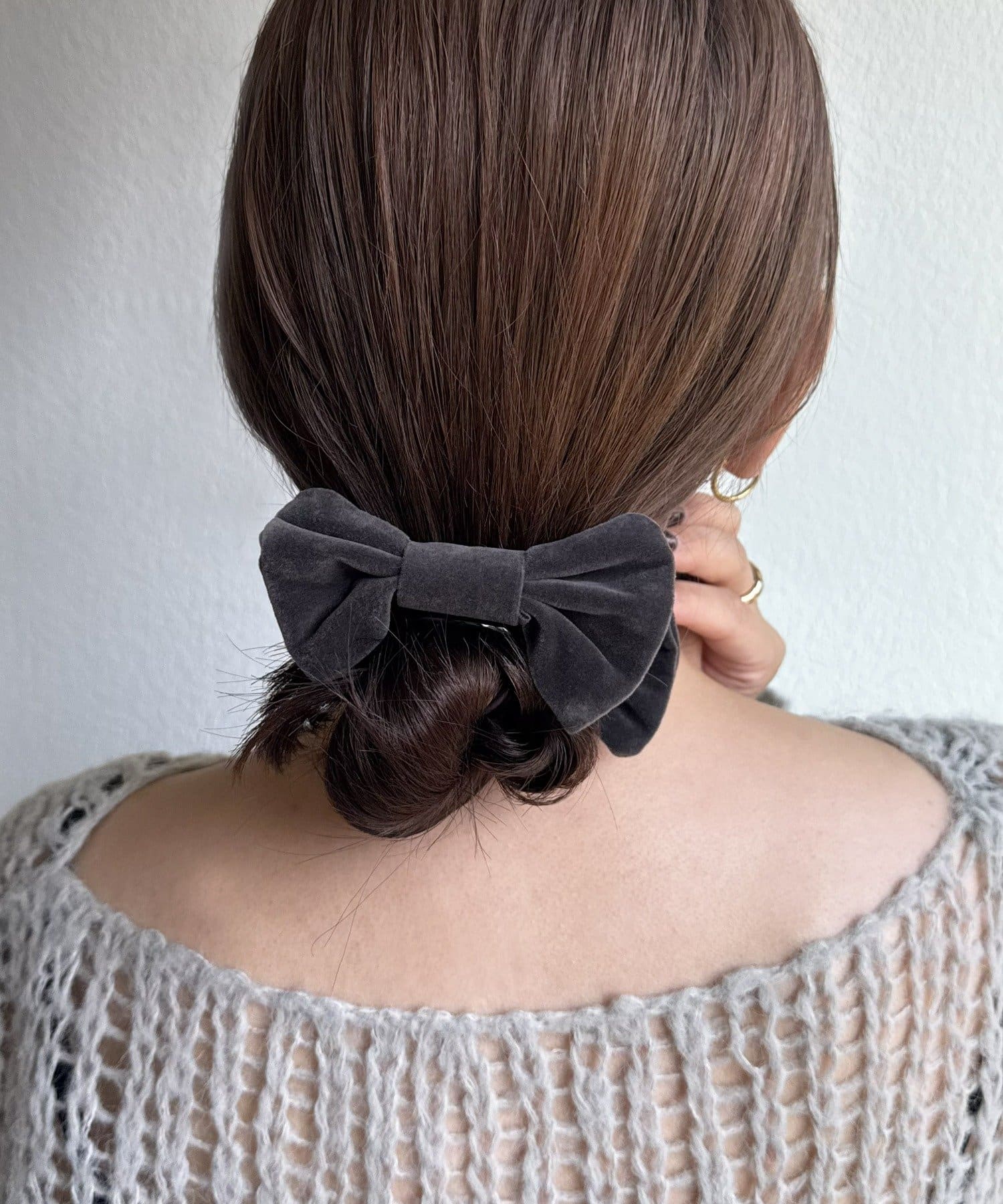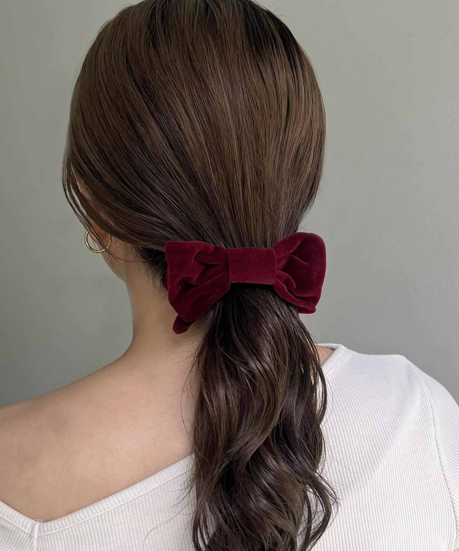 落ち着いた色合いのベロア素材が、高級感と大人可愛い雰囲気を演出するテールクリップ